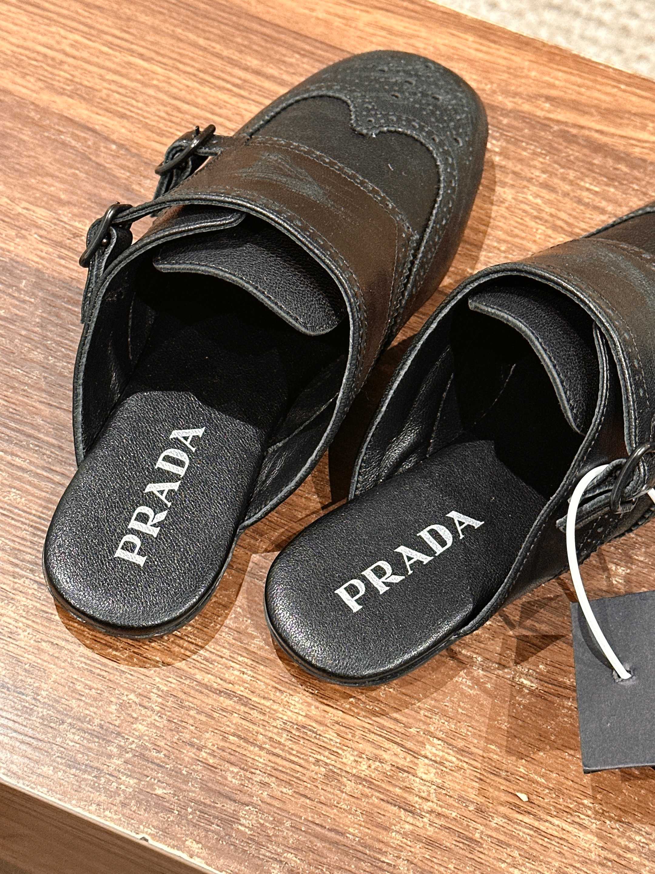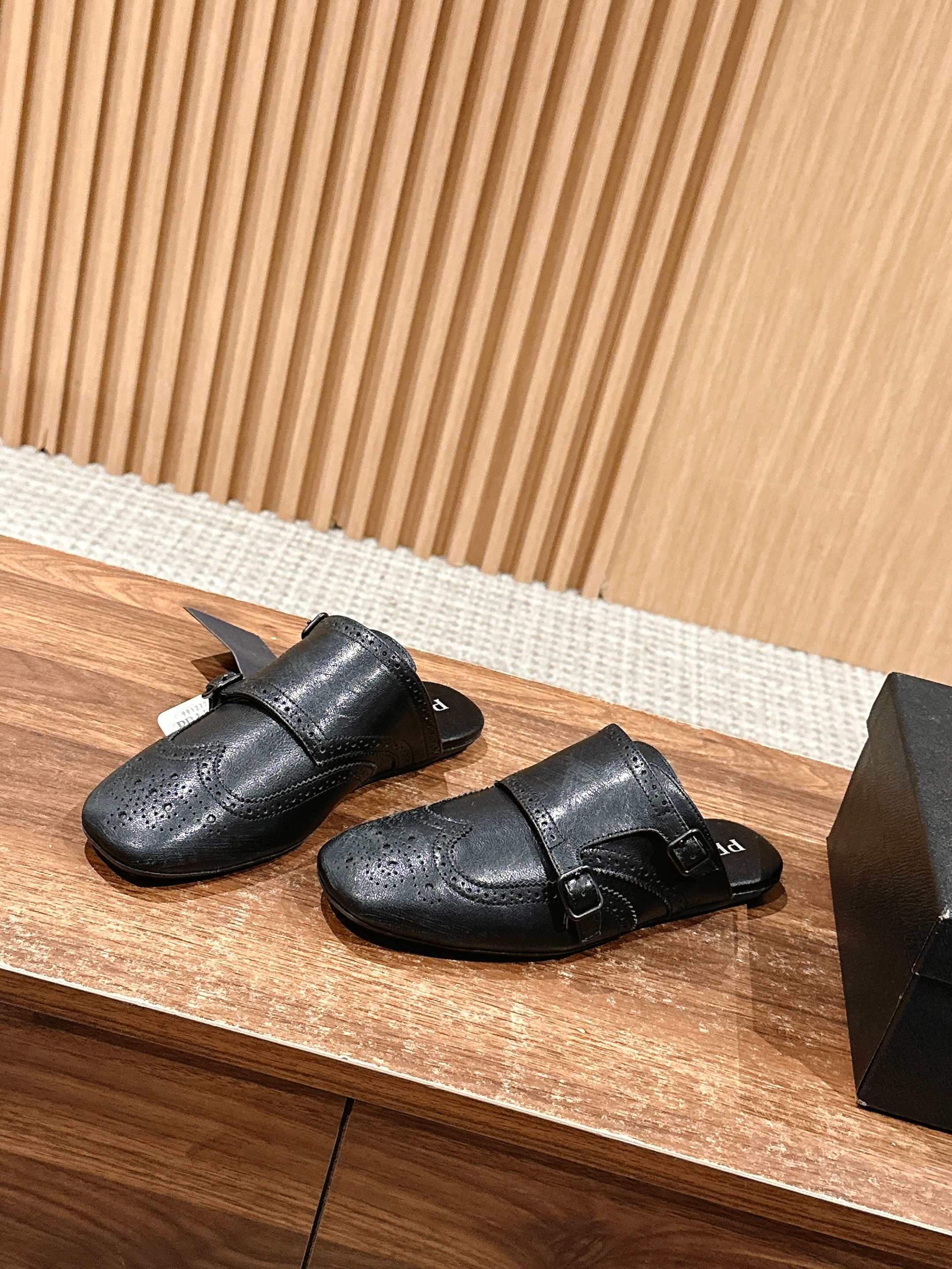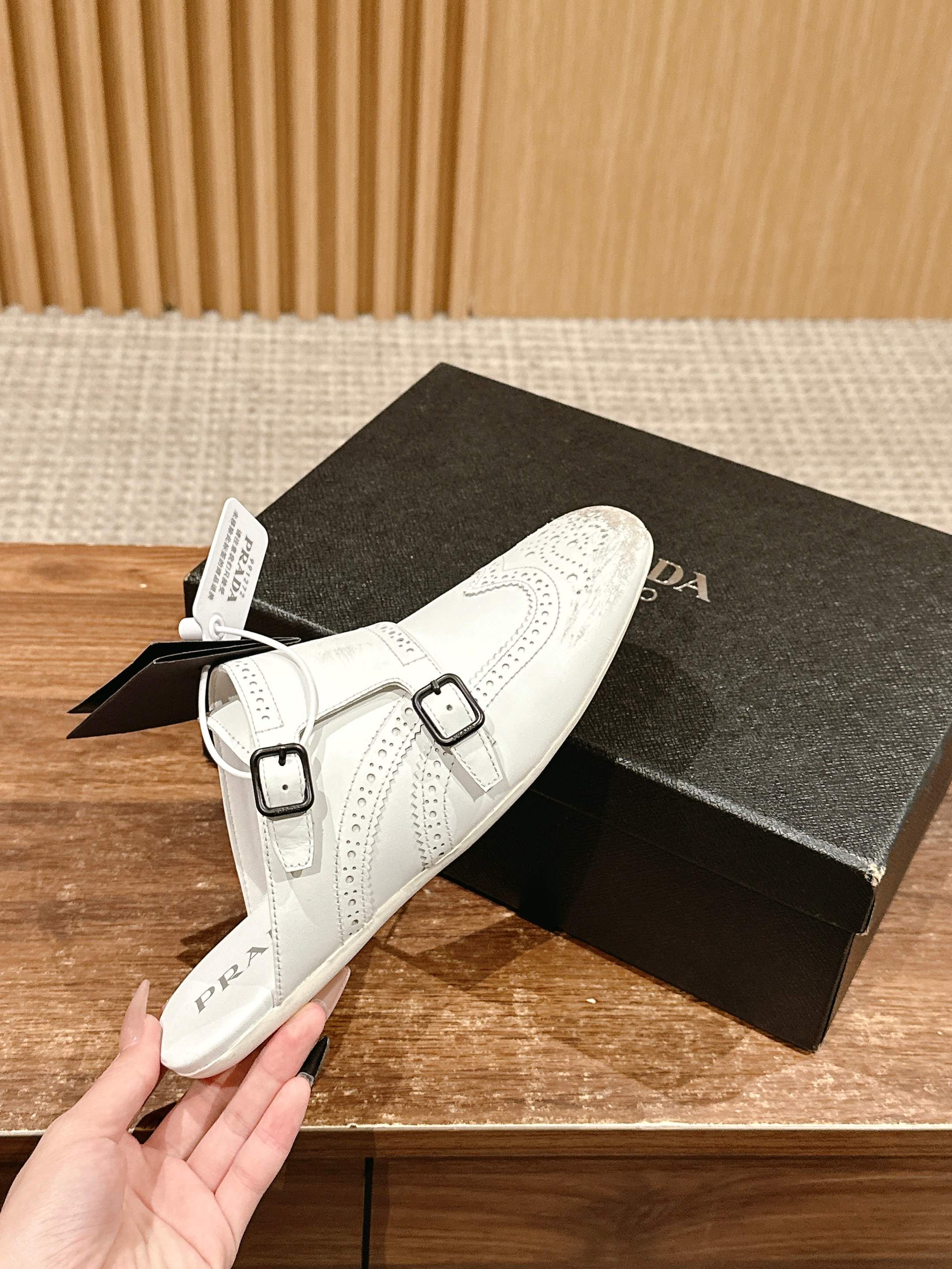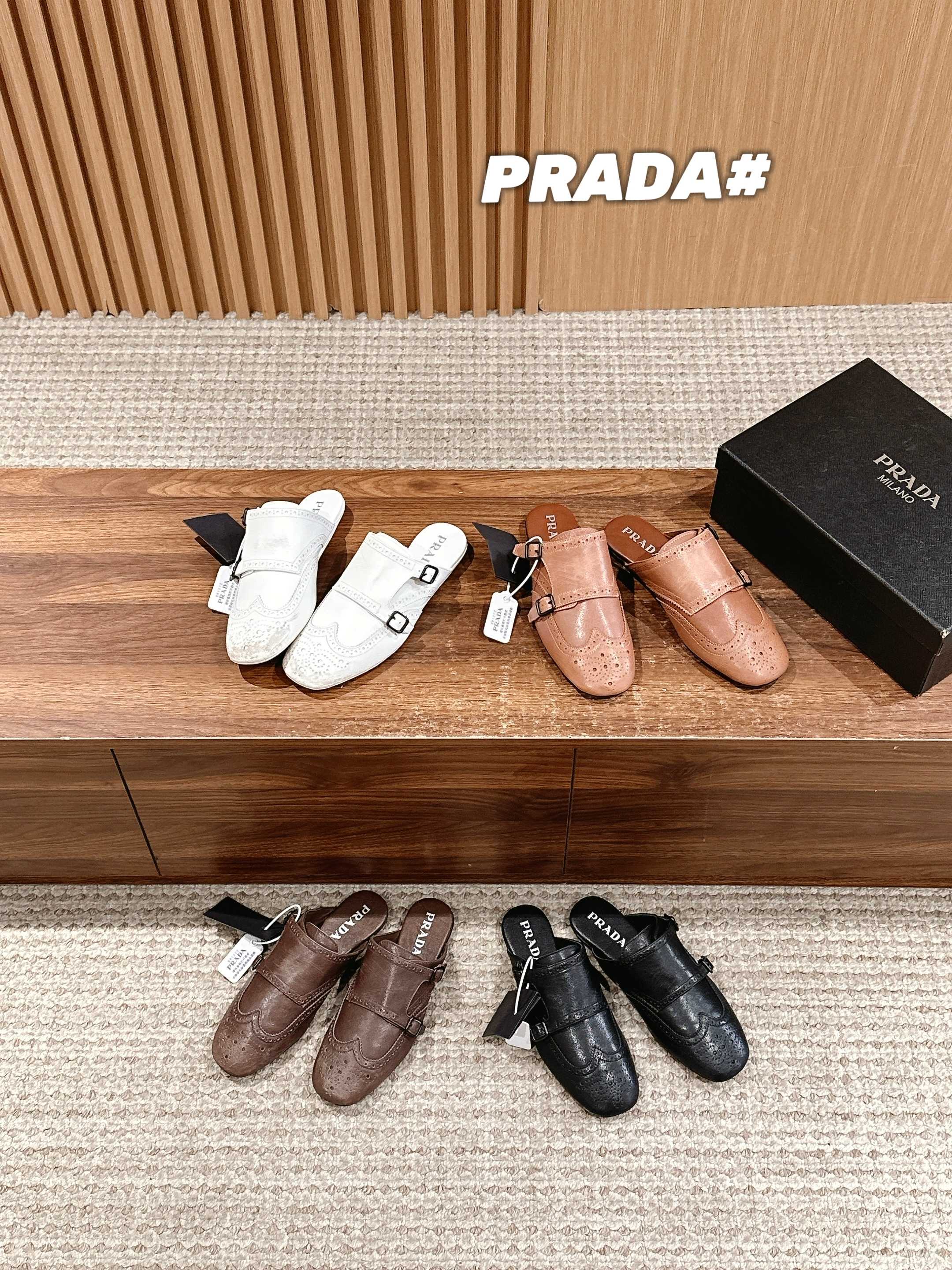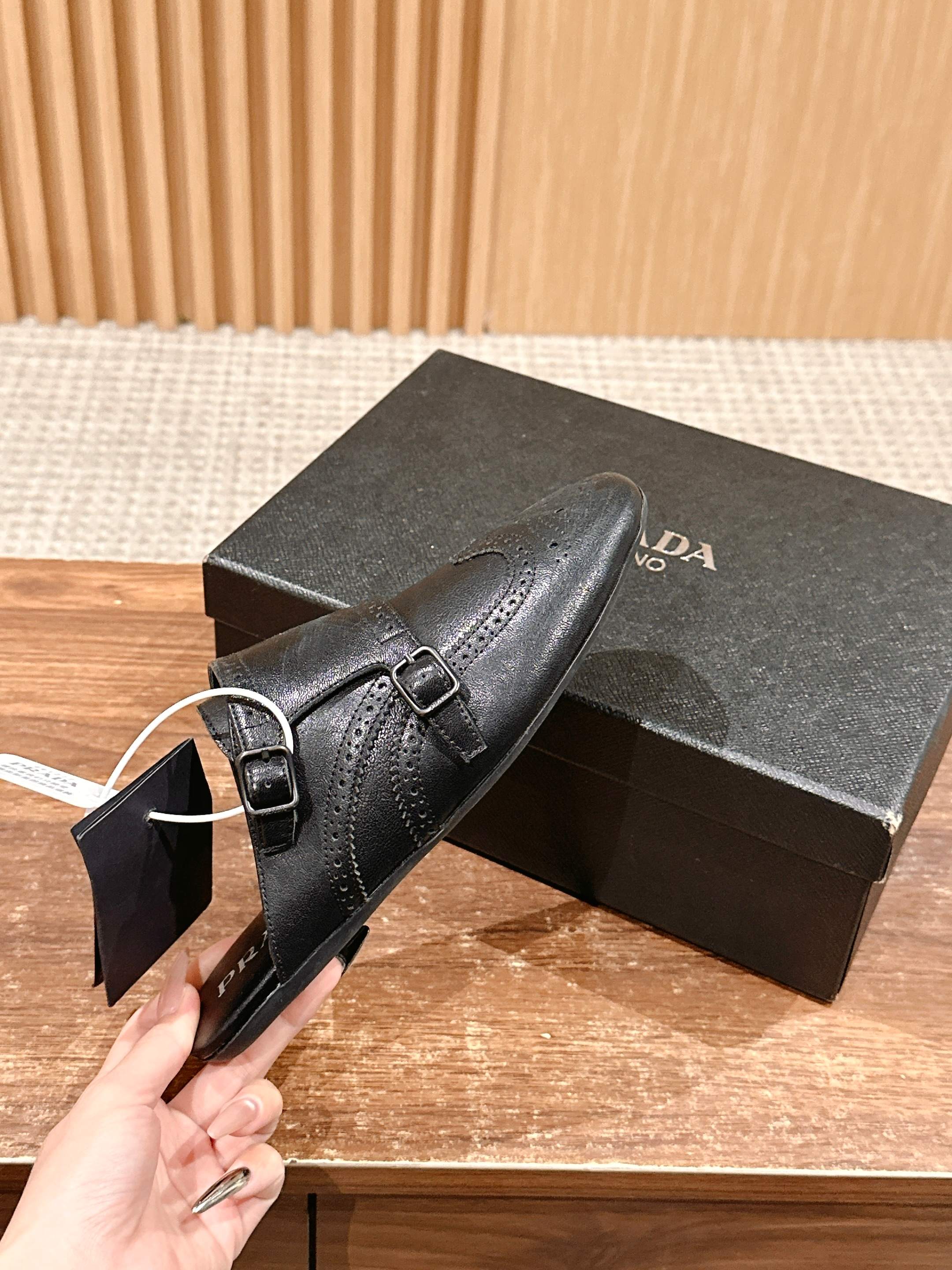 𝐏𝐑𝐀𝐃𝐀 𝟮𝟬𝟮𝟱/𝐬𝐬普拉达走秀款复古流苏鞋布洛克雕花一脚蹬半拖