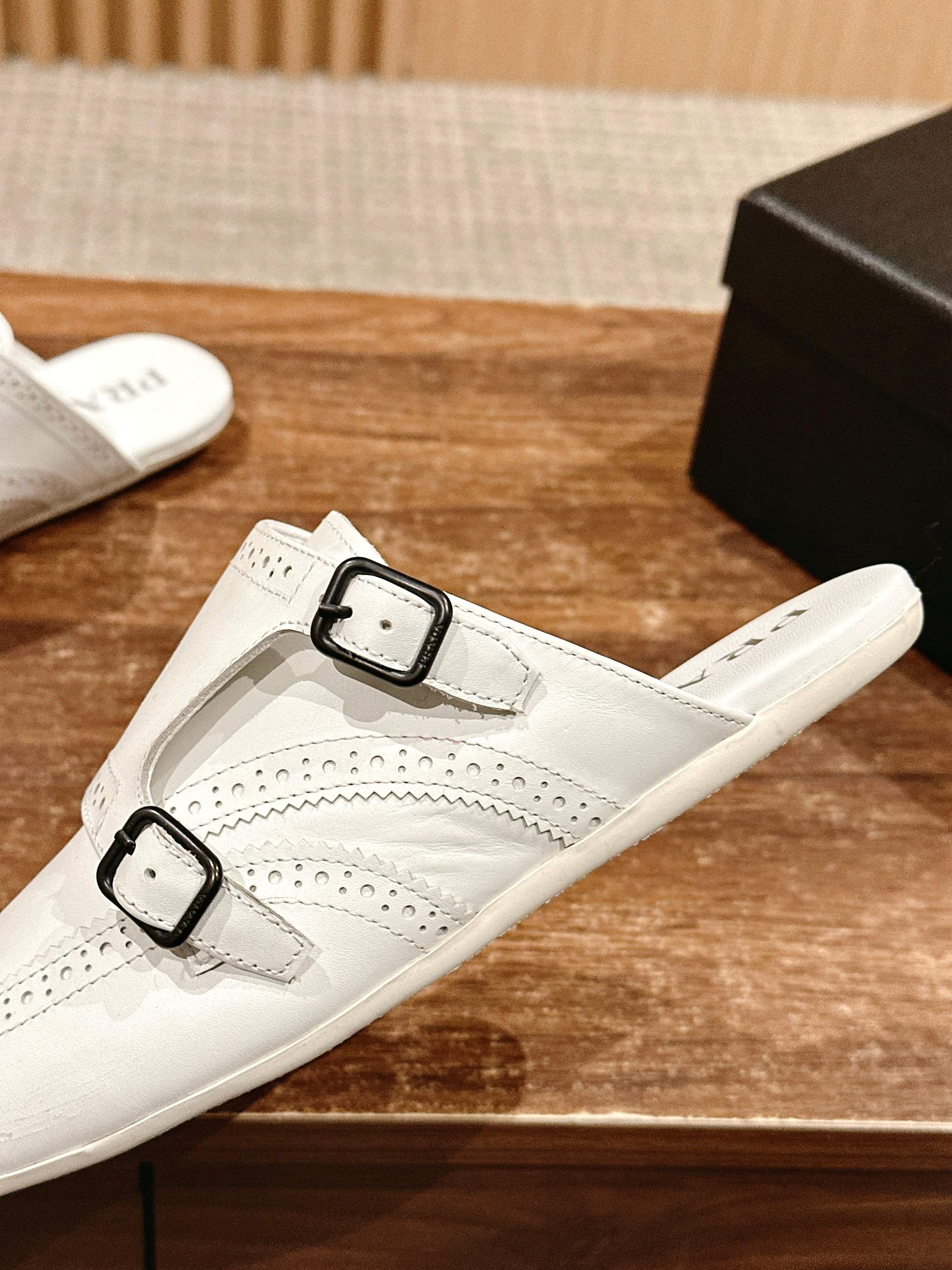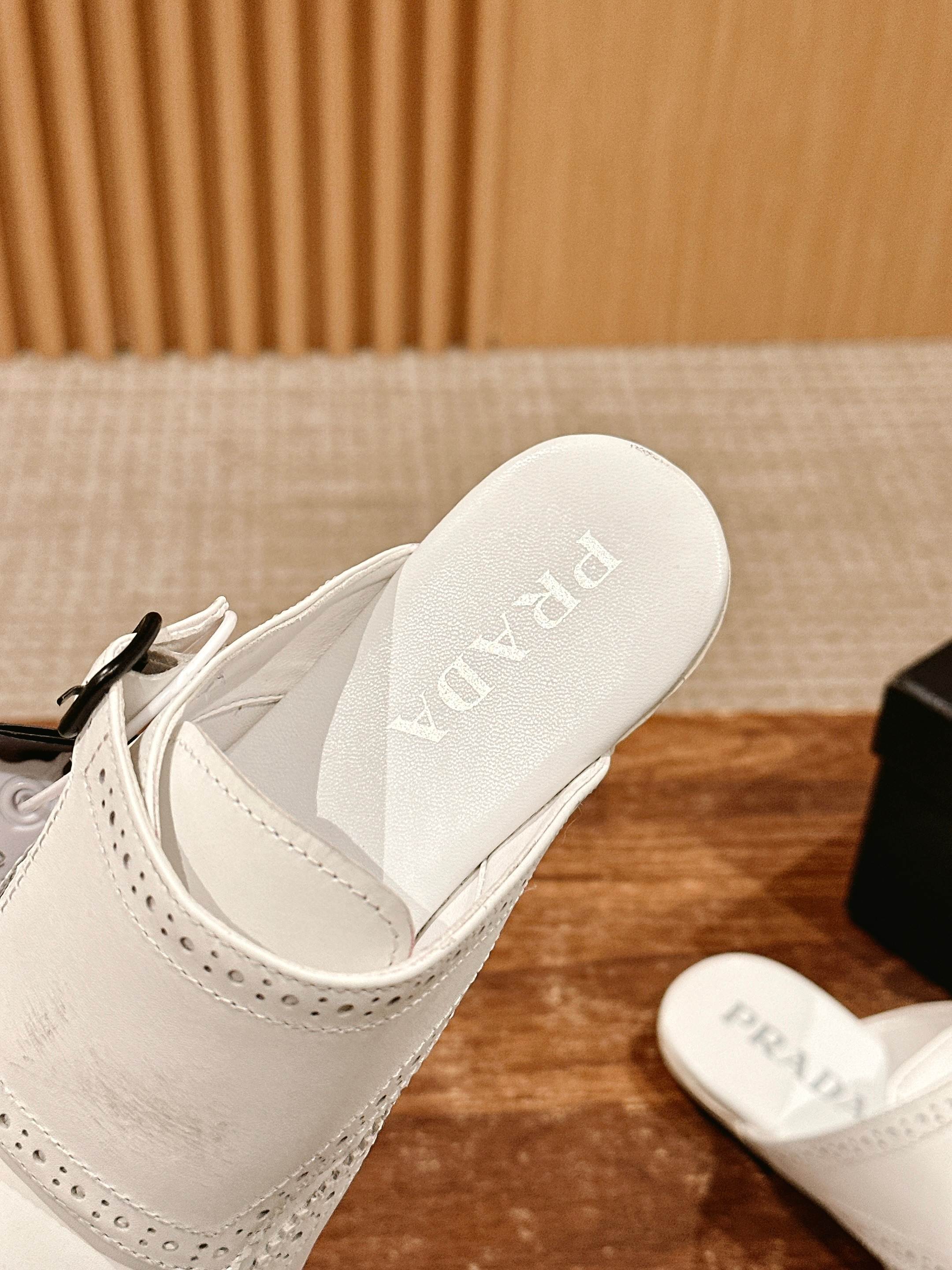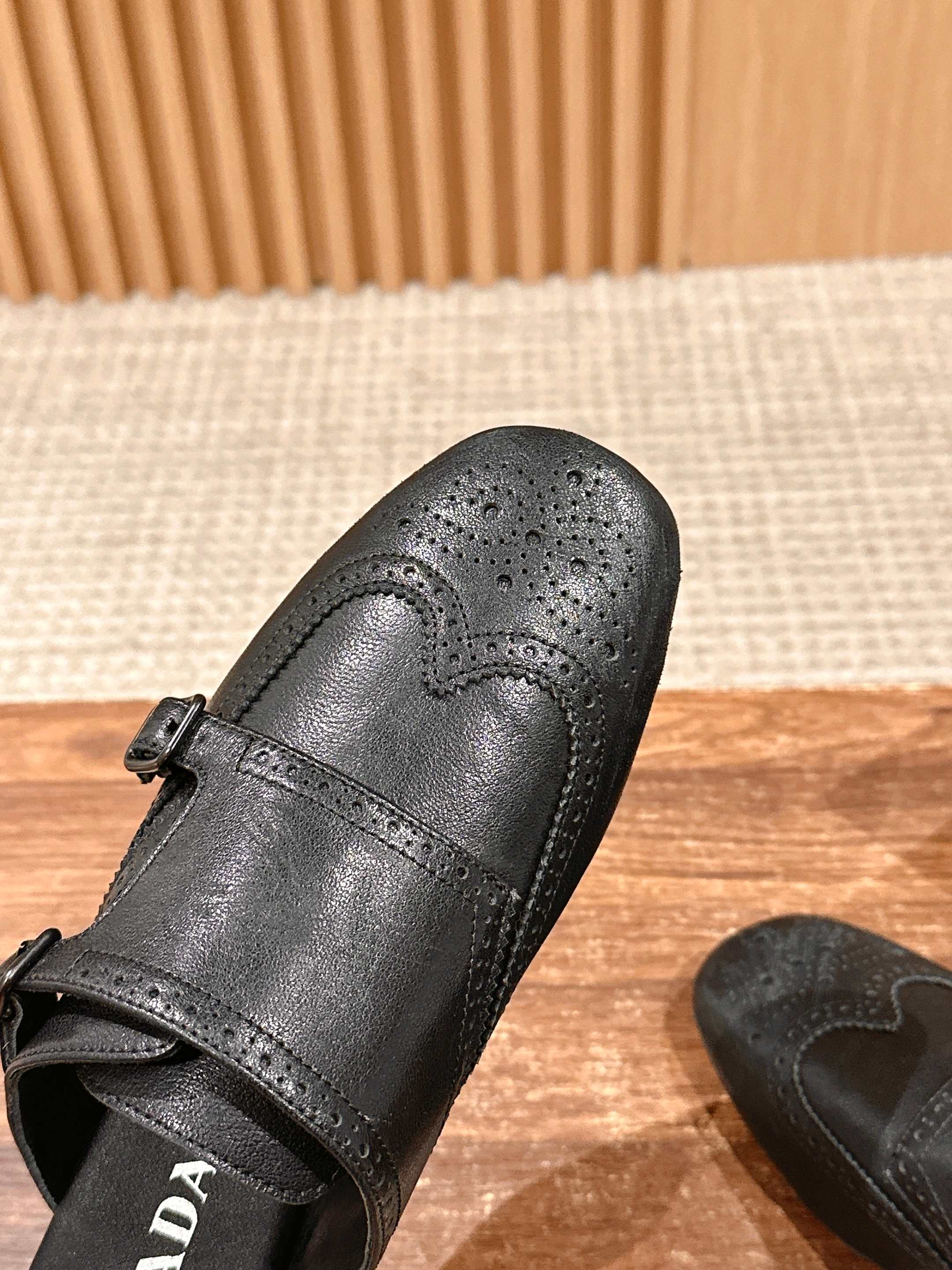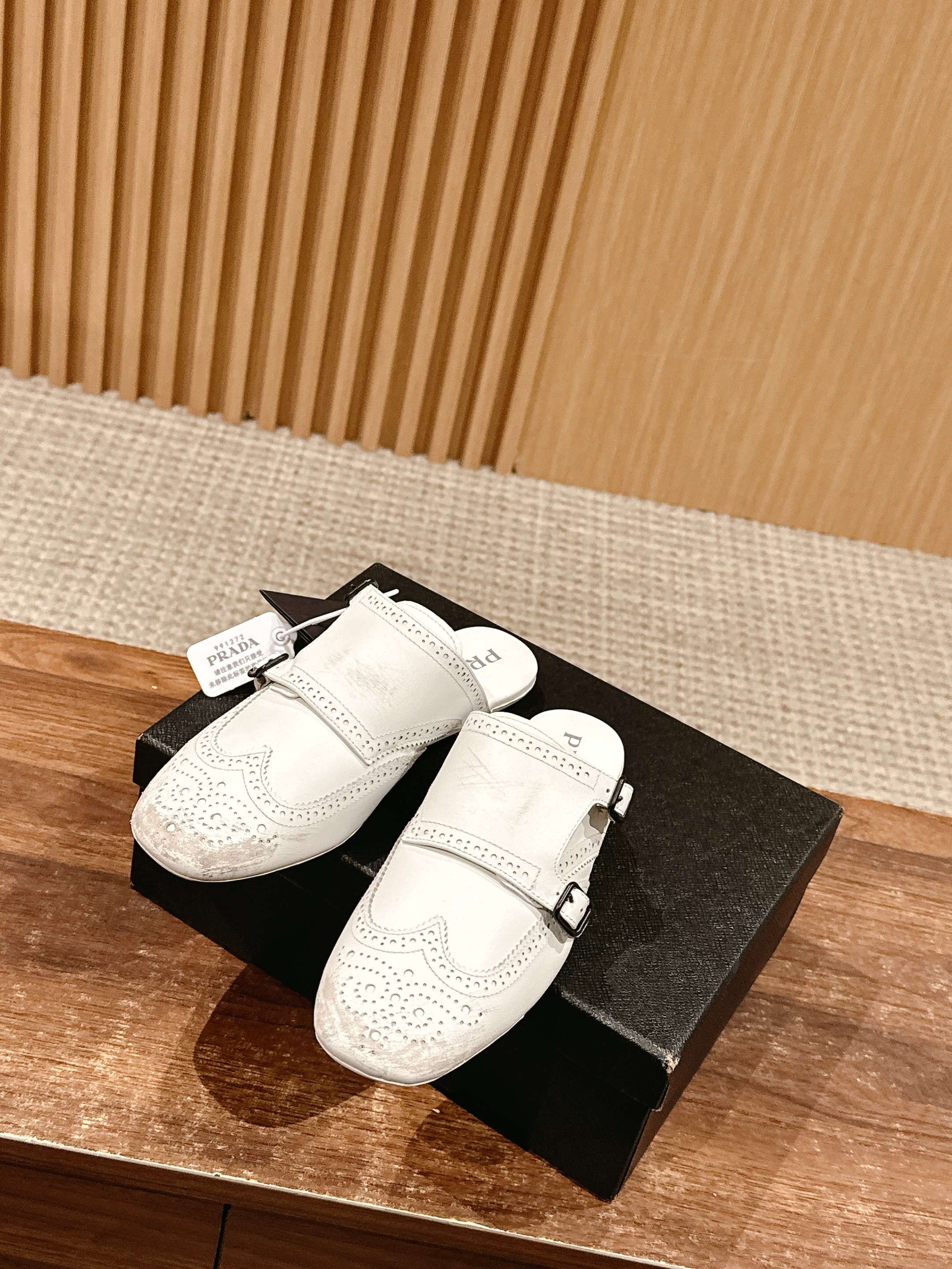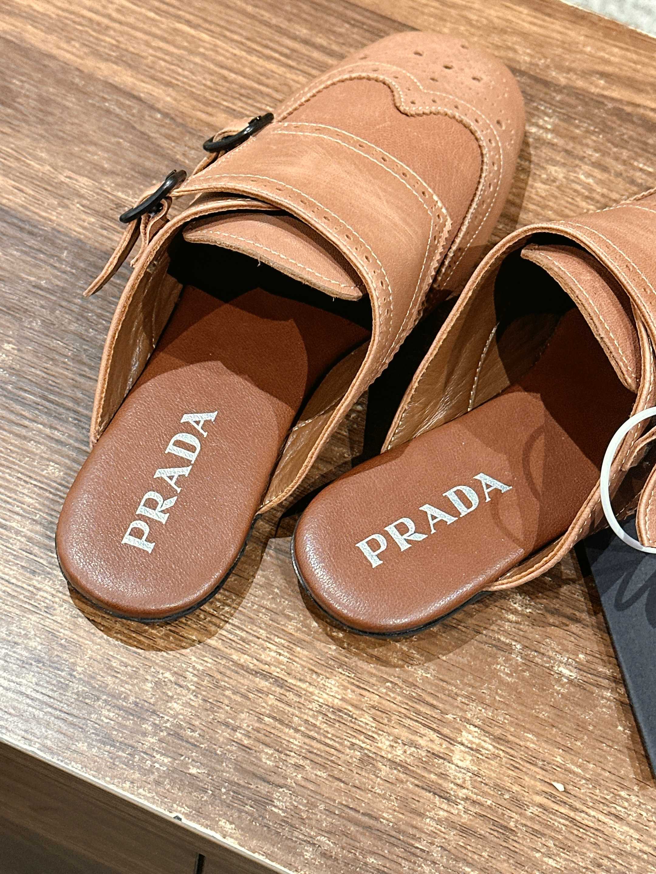 𝐏𝐑𝐀𝐃𝐀 𝟮𝟬𝟮𝟱/𝐬𝐬普拉达走秀款复古流苏鞋布洛克雕花一脚蹬半拖