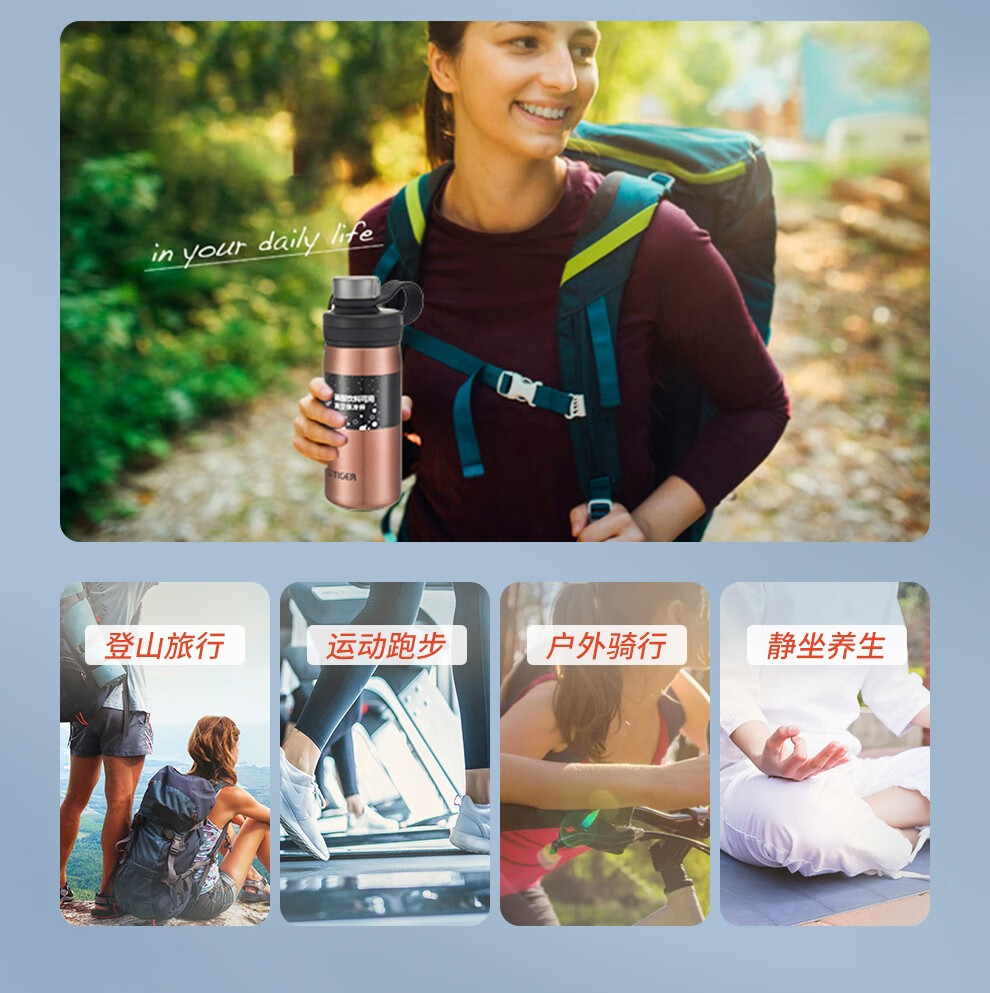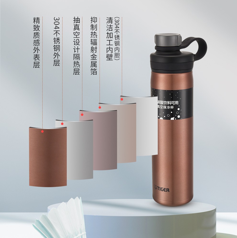 虎牌(TIGER) 小钢炮 不锈钢真空保冷杯MTA-T080大容量运动便携水杯800ml 钢铁灰