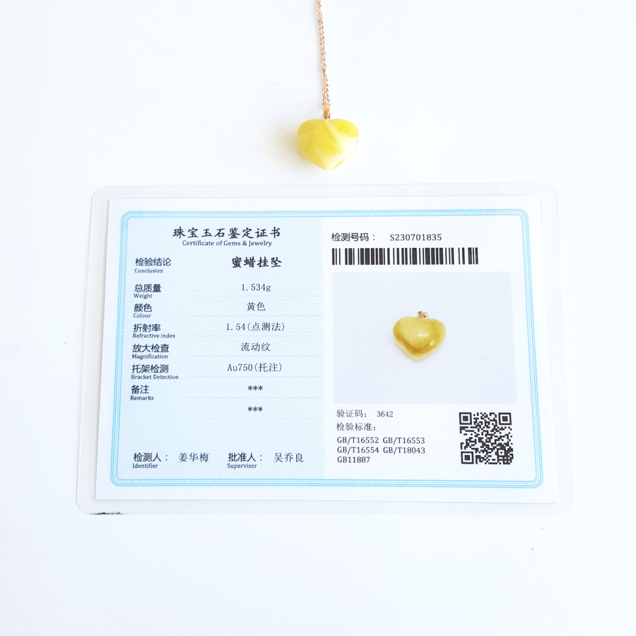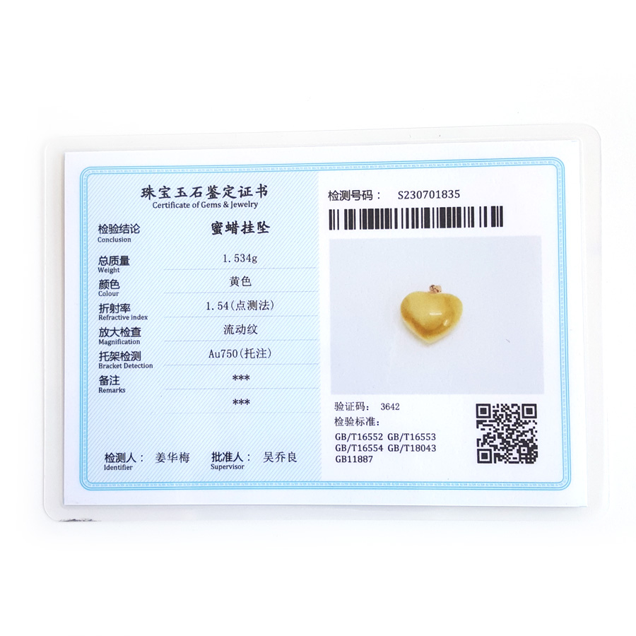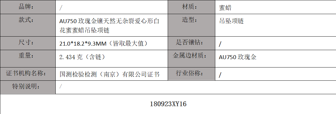 【天然正品】天然无杂裂爱心形白花蜜蜜蜡AU750玫瑰金吊坠项链21.0*18.2*9.3MM(皆取最大值)180923XY16 特价!