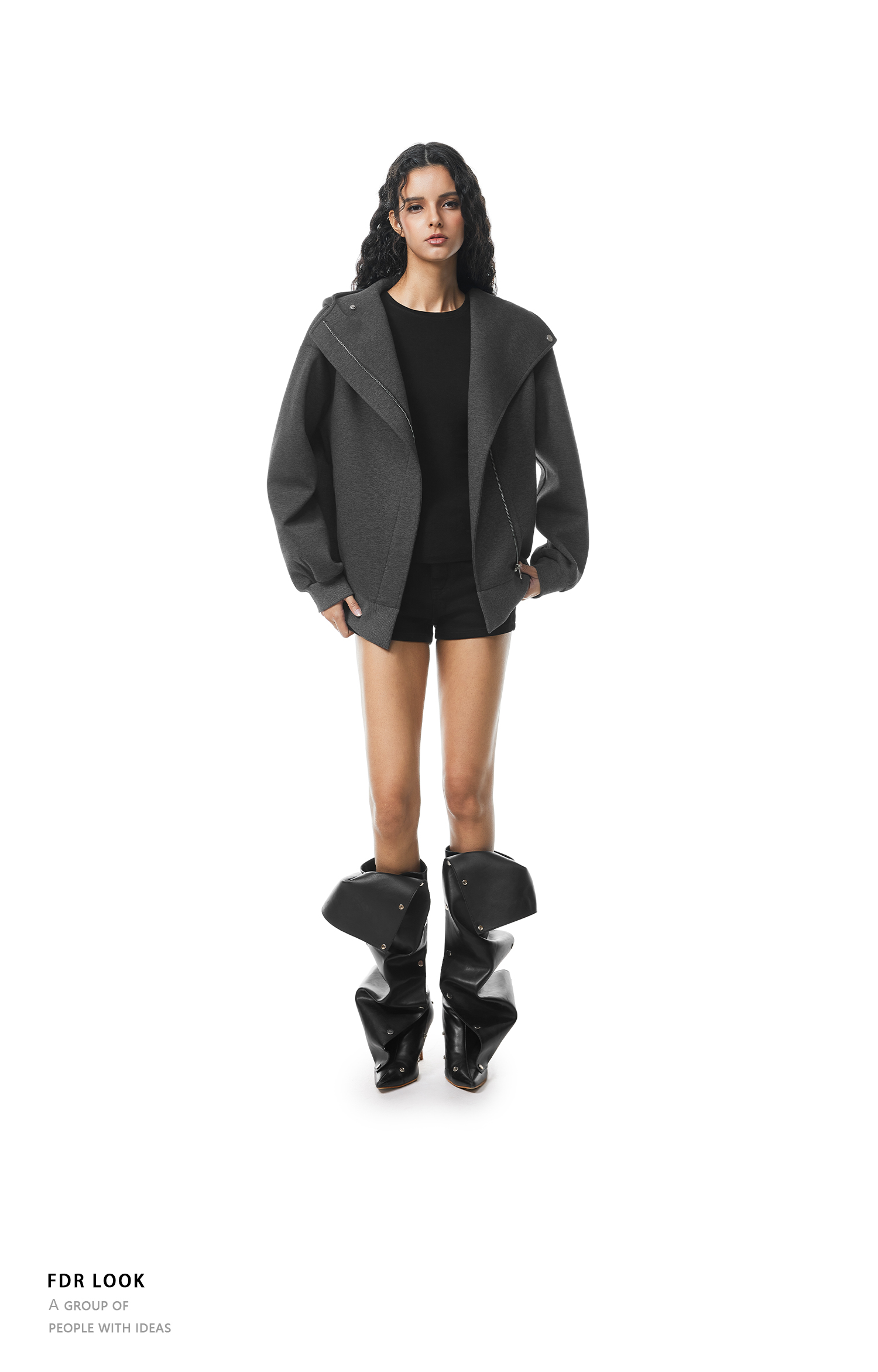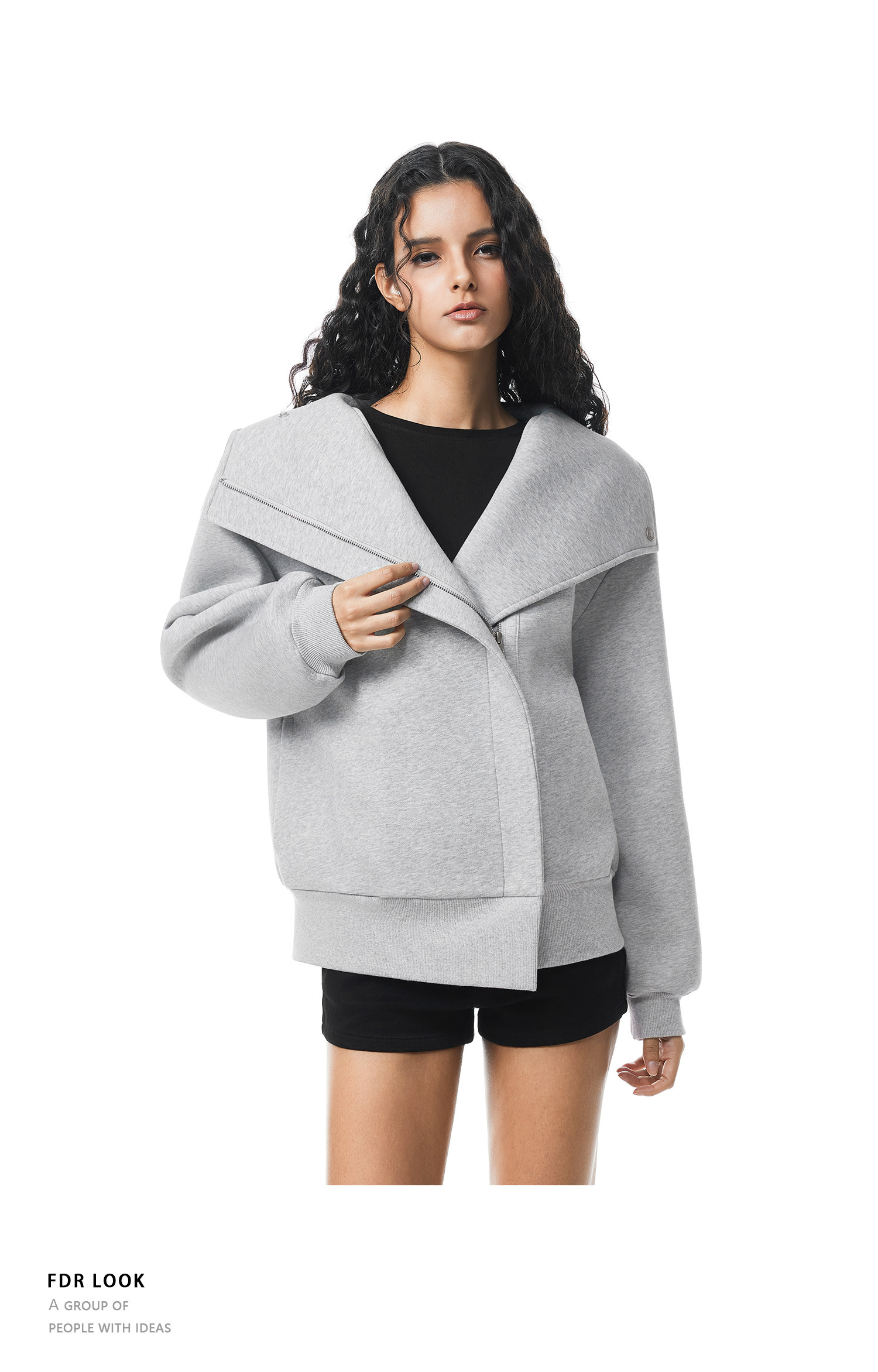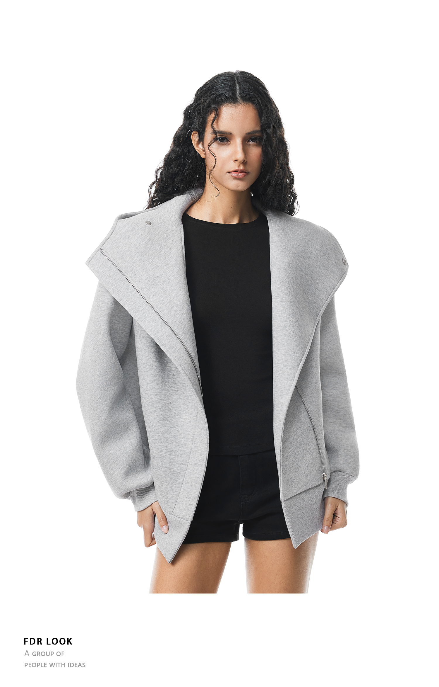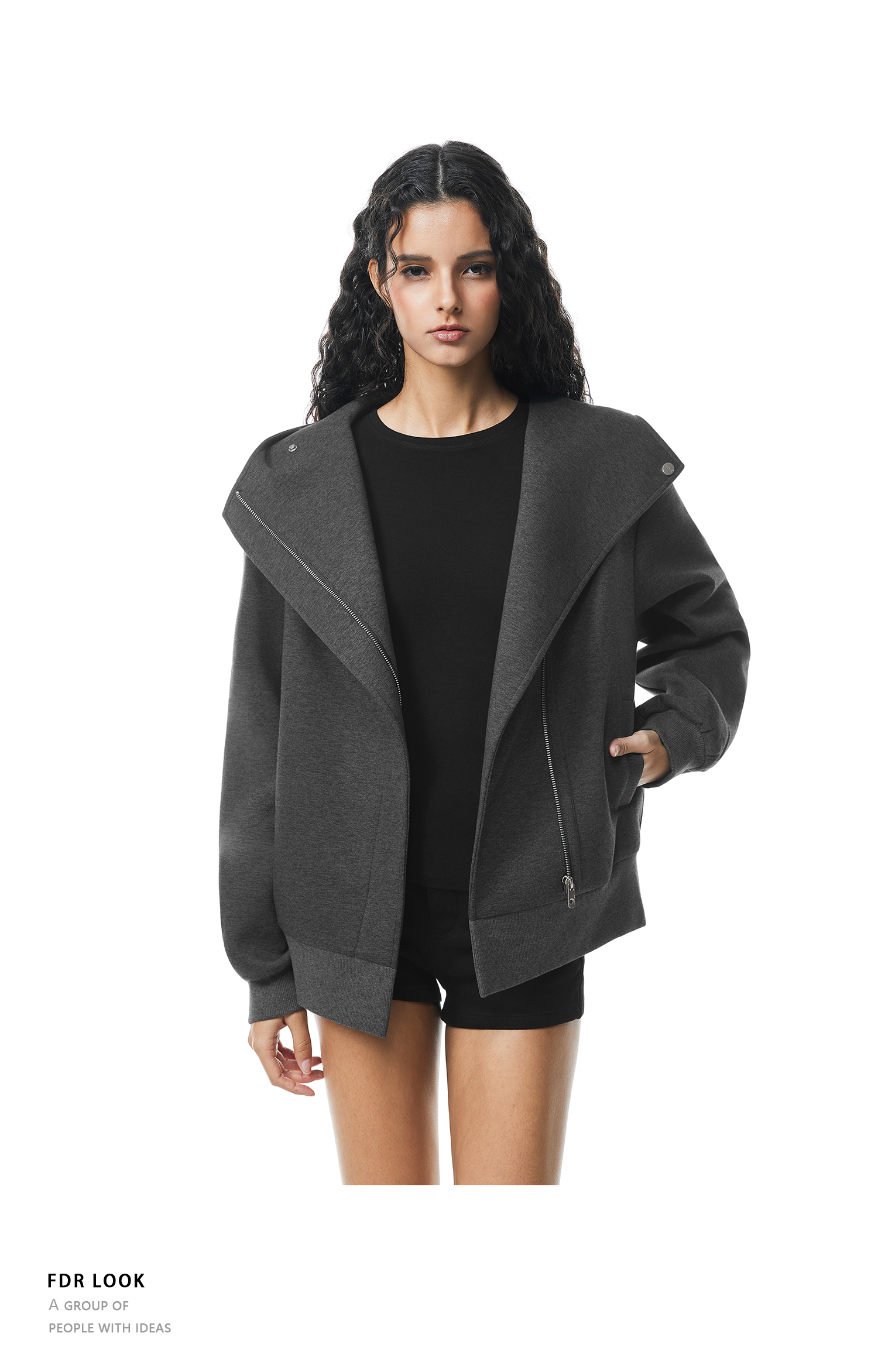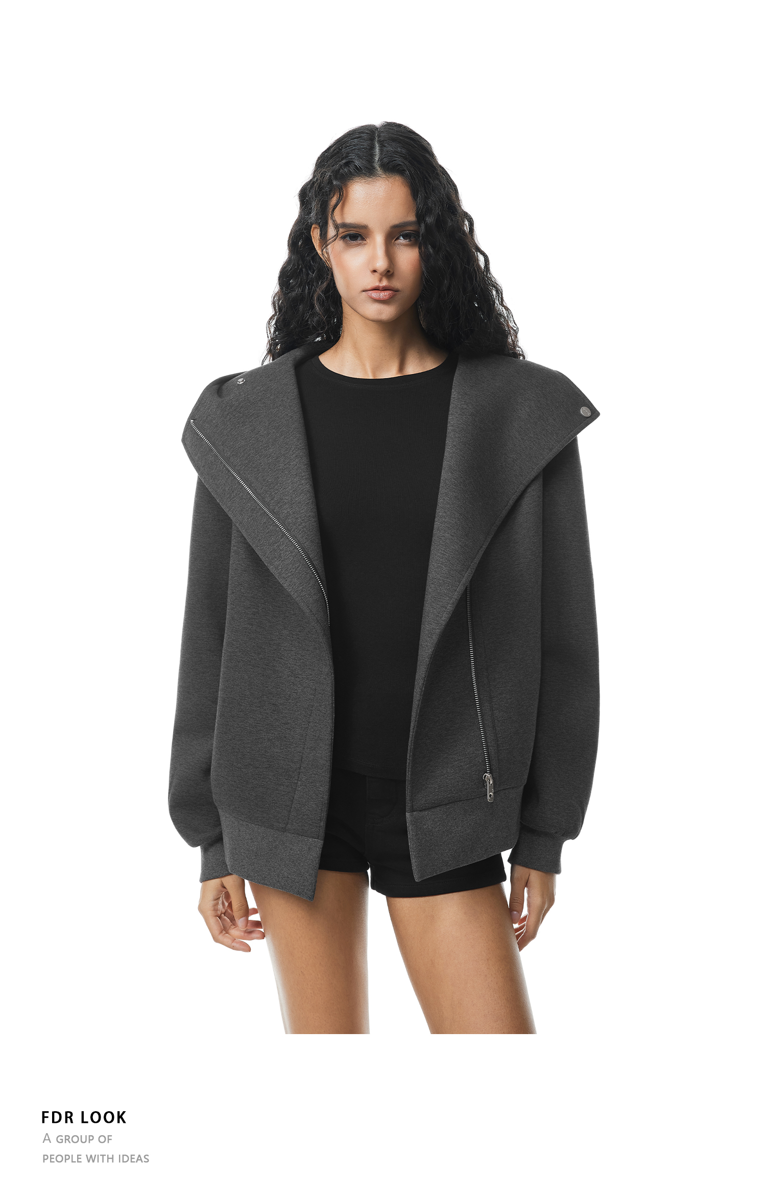 FDR官方店 不对称门襟空气层连帽卫衣外套男女秋季情侣装宽松上衣