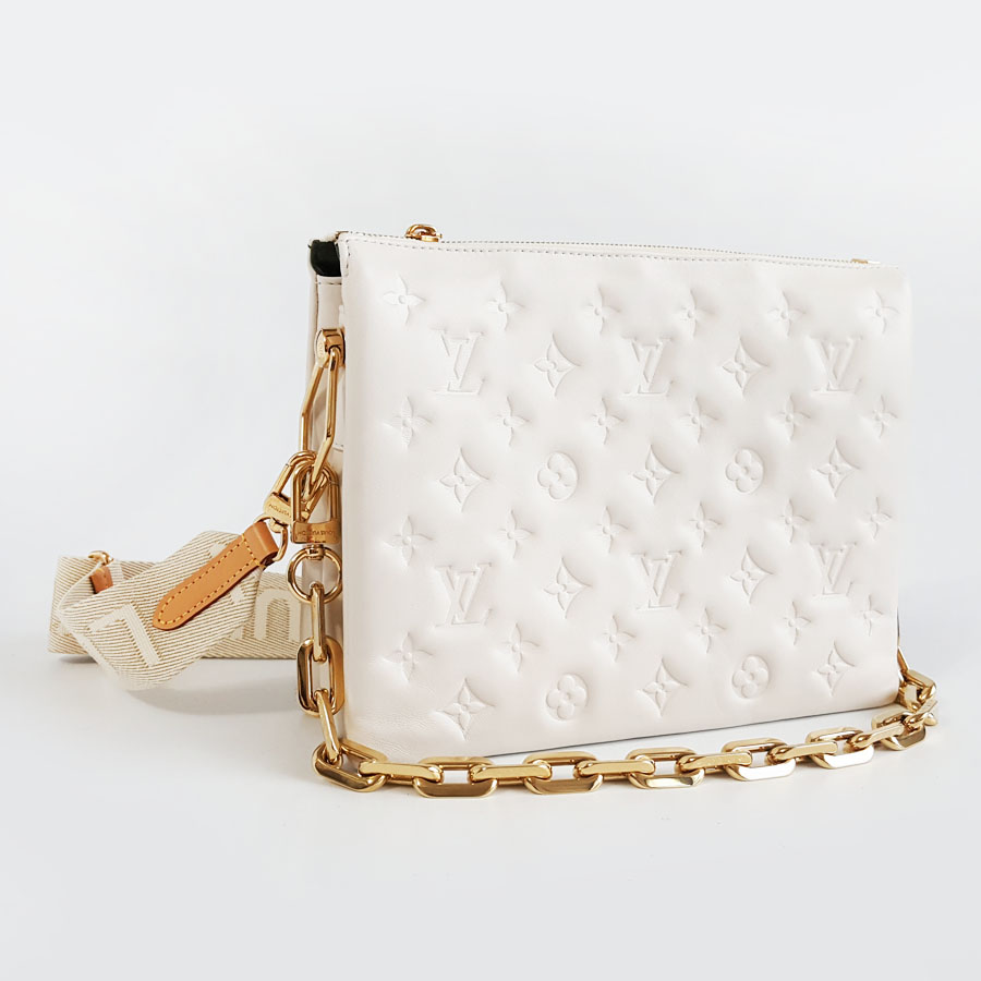 【95新】LV路易威登COUSSIN手袋M21262小号白色压纹COUSSIN单肩斜挎包女士300326AK05