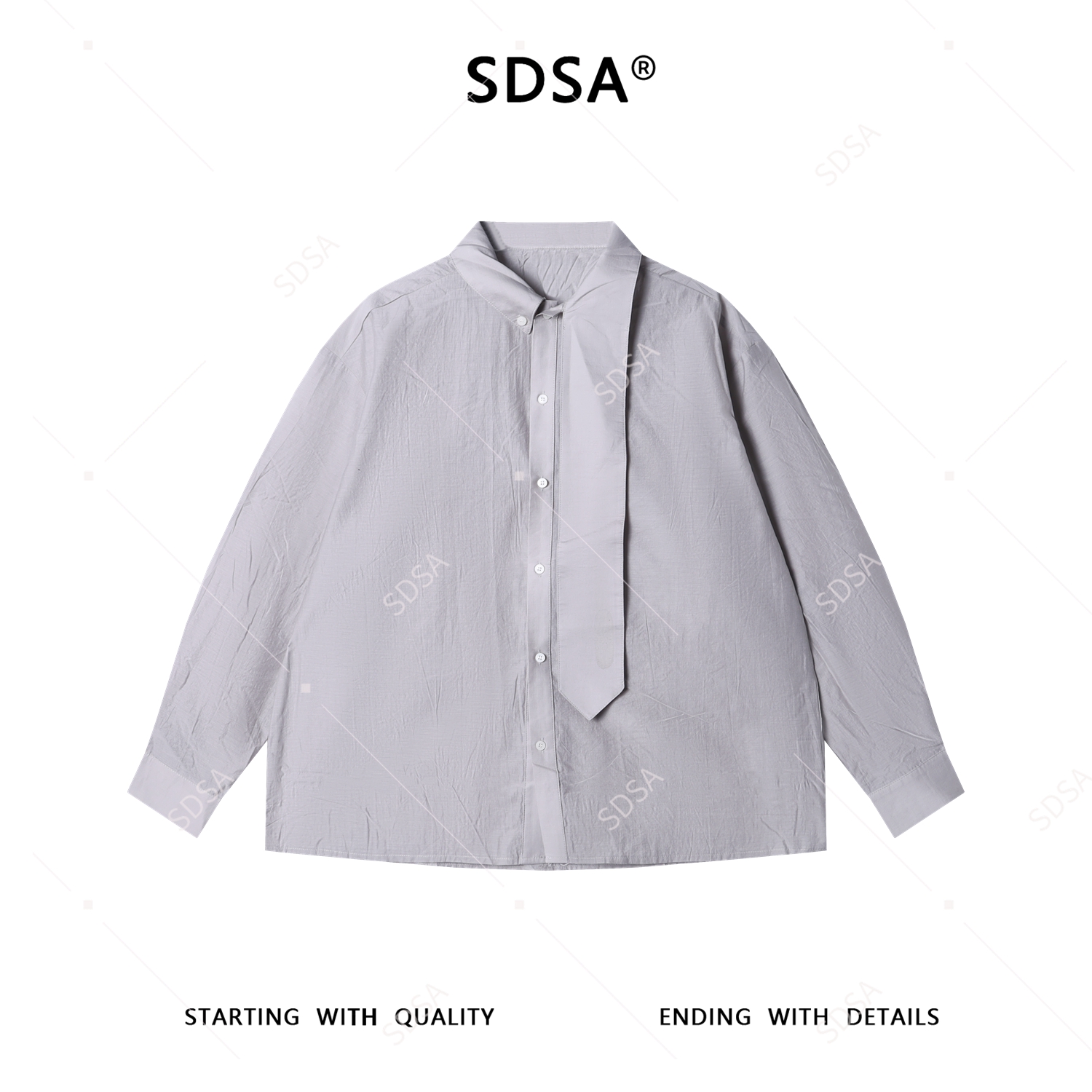 SDSA男士秋冬新款痞帅男装韩版纯色领带衬衫百搭宽松简约休闲衬衣