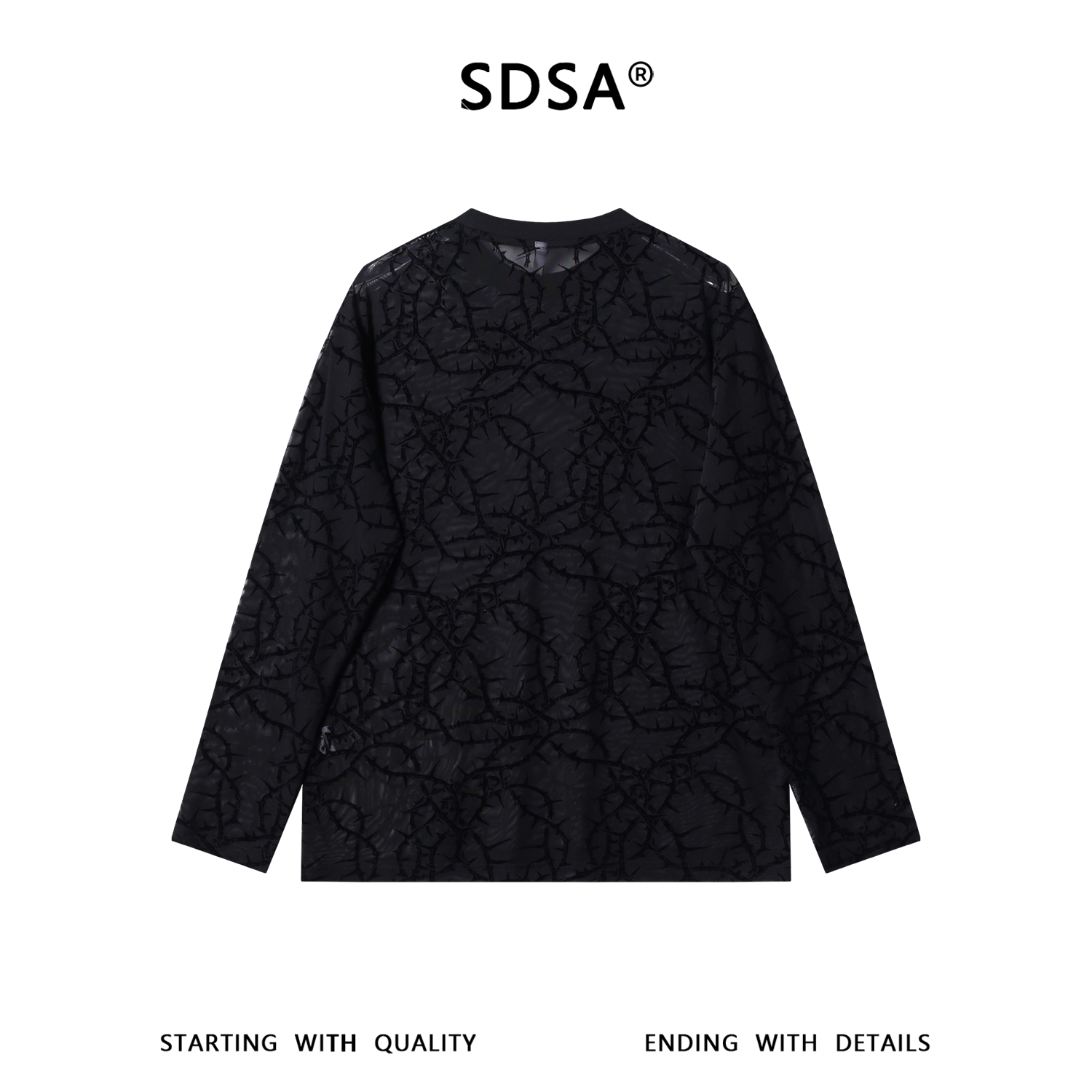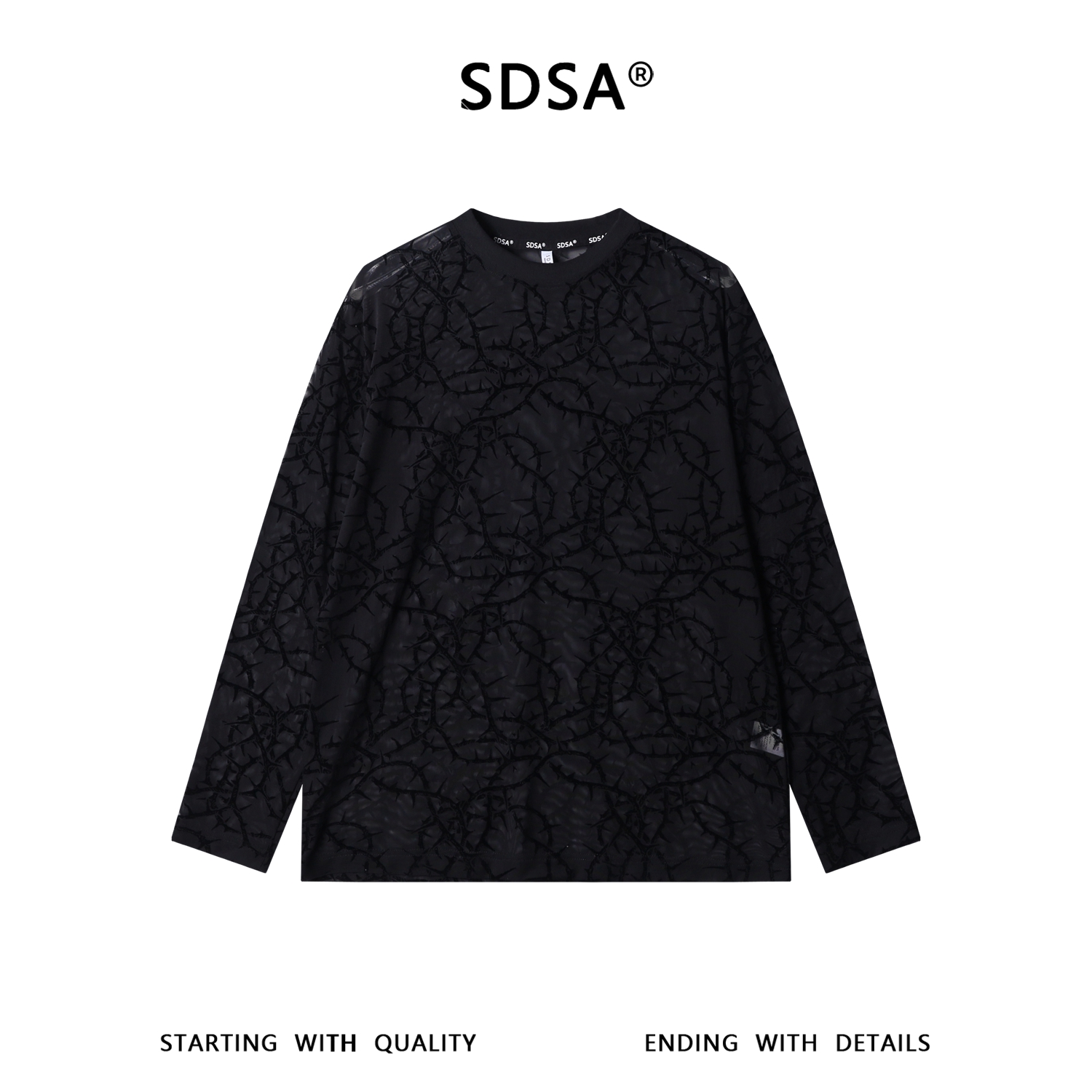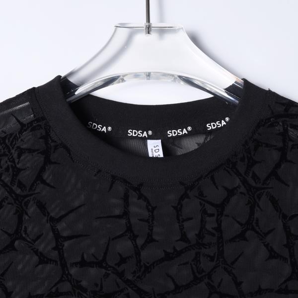 SDSA男装2026新款高贵轻奢时尚植绒荆棘植绒网纱圆领长袖T恤百搭