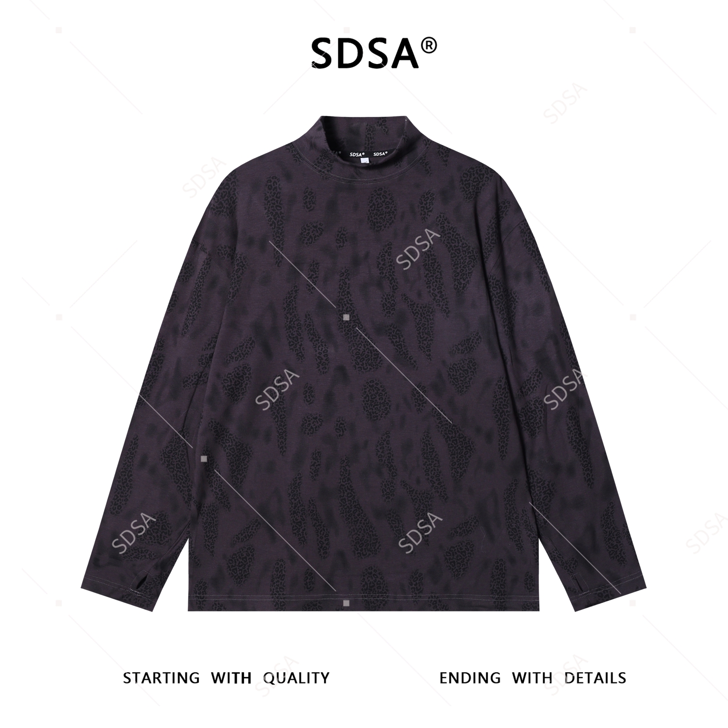 T4835SDSA男士秋冬新款痞帅男装美式扎染豹纹印花半高领长袖T恤时尚潮