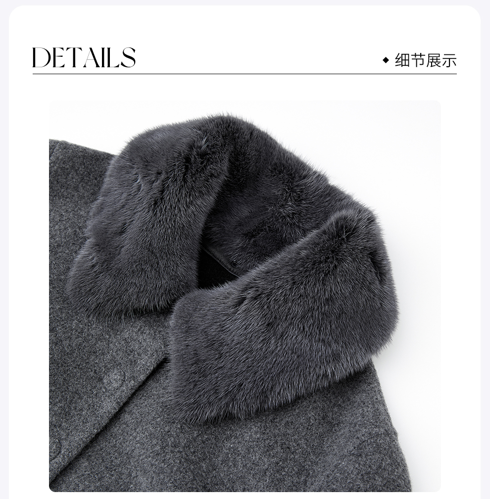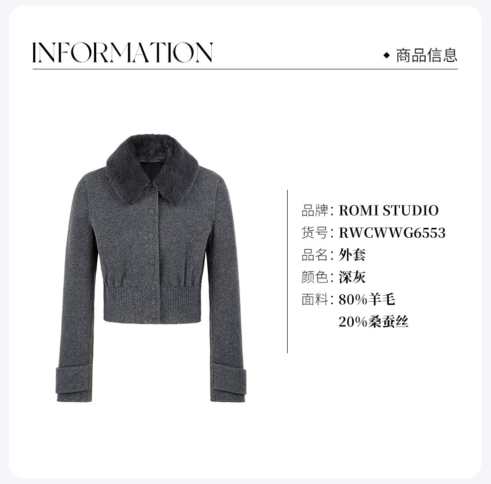 ROMI STUDIO水貂皮草毛领澳洲羊毛短款夹克毛呢外套RWCWWG6553【可拆卸水貂毛领】