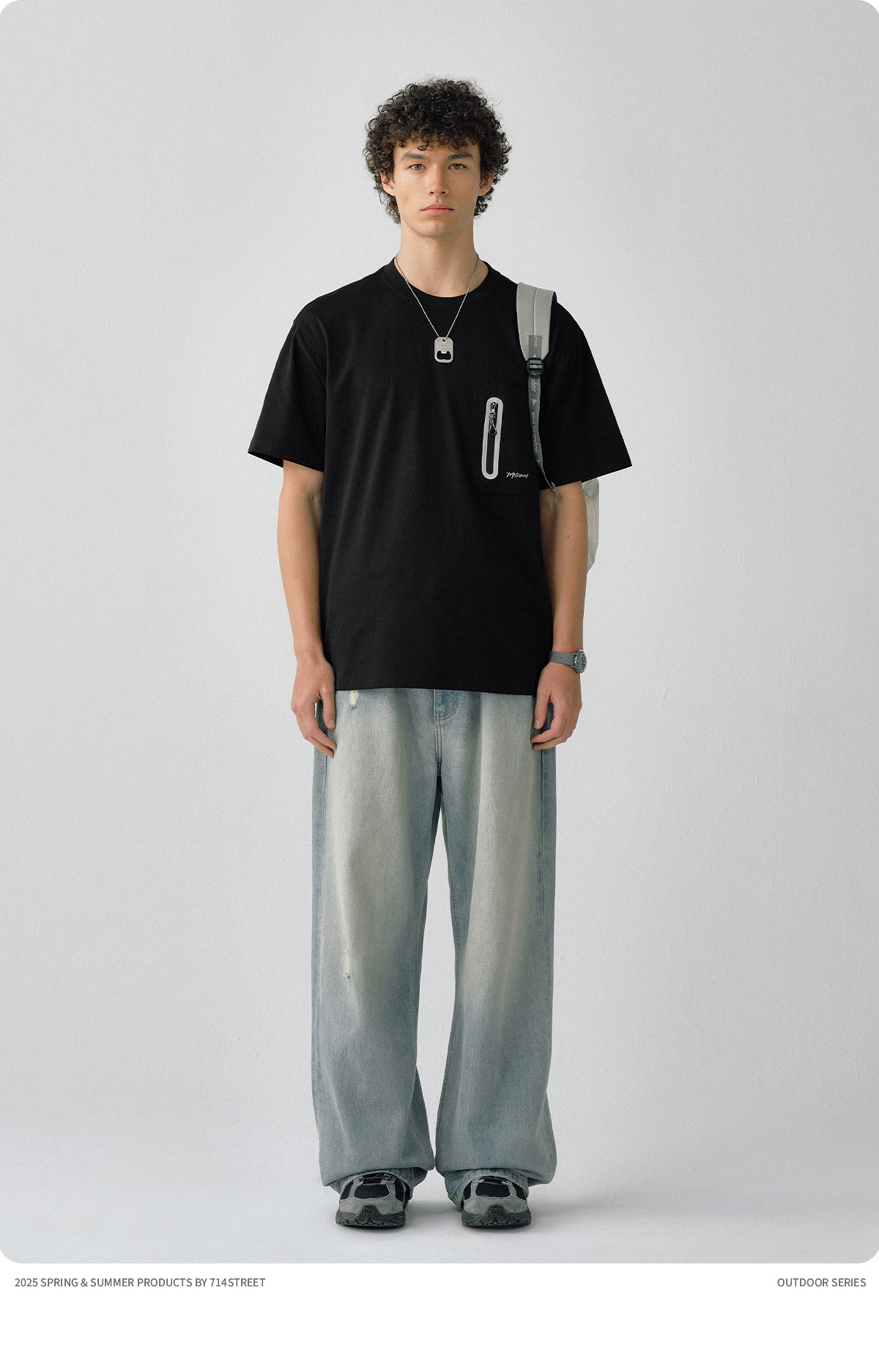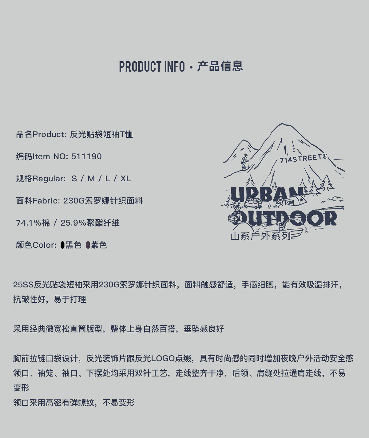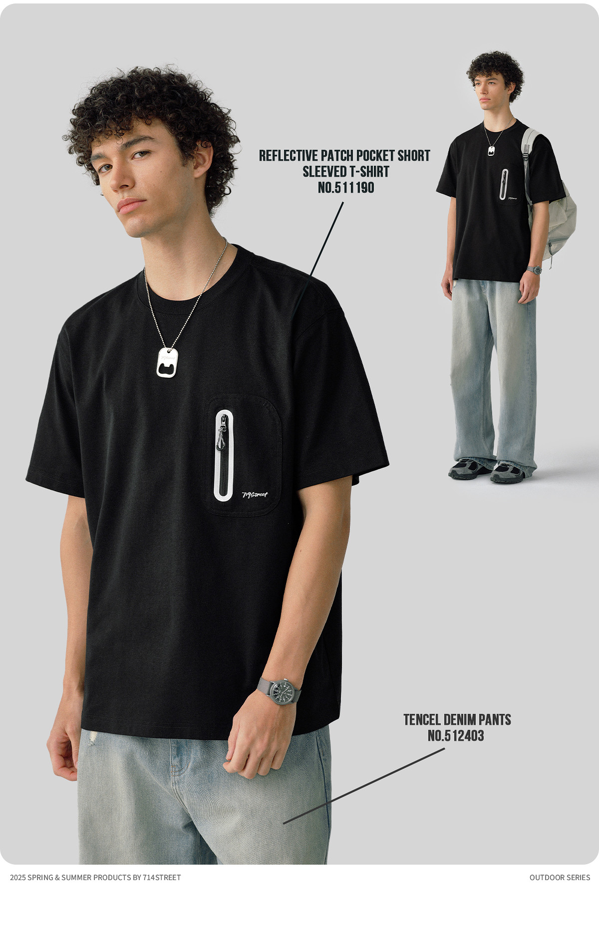 714street户外机能反光贴袋抗皱短袖T恤男25夏季新款凉感防晒上衣