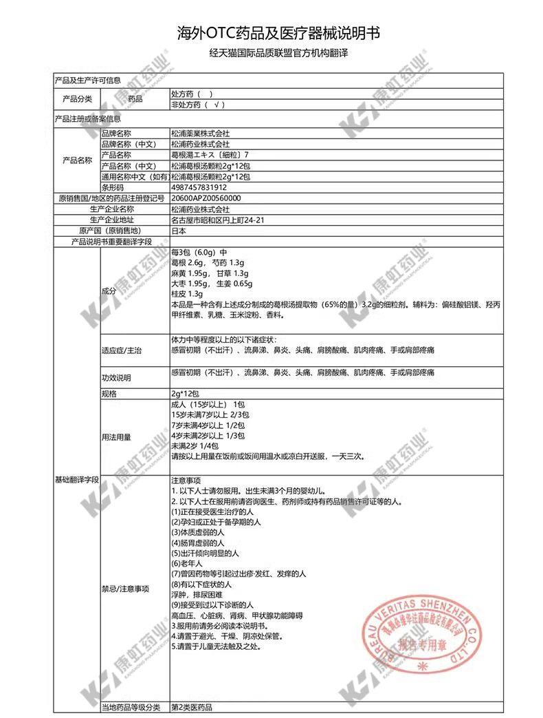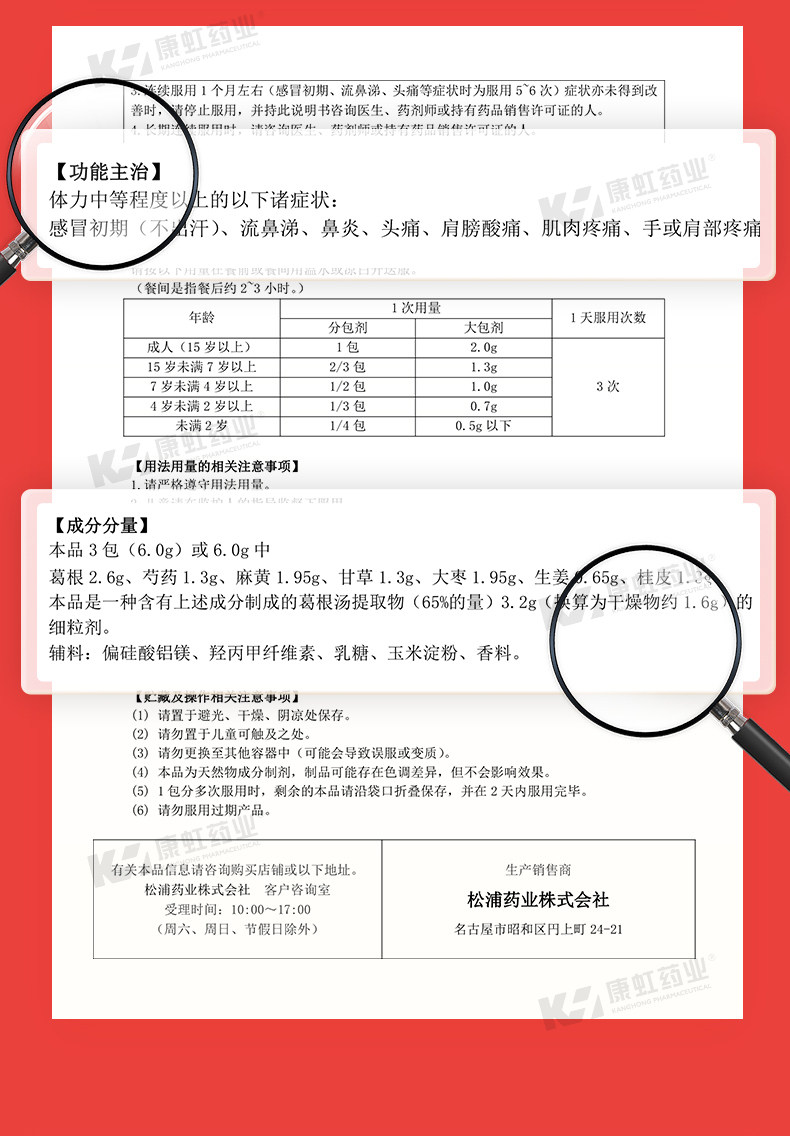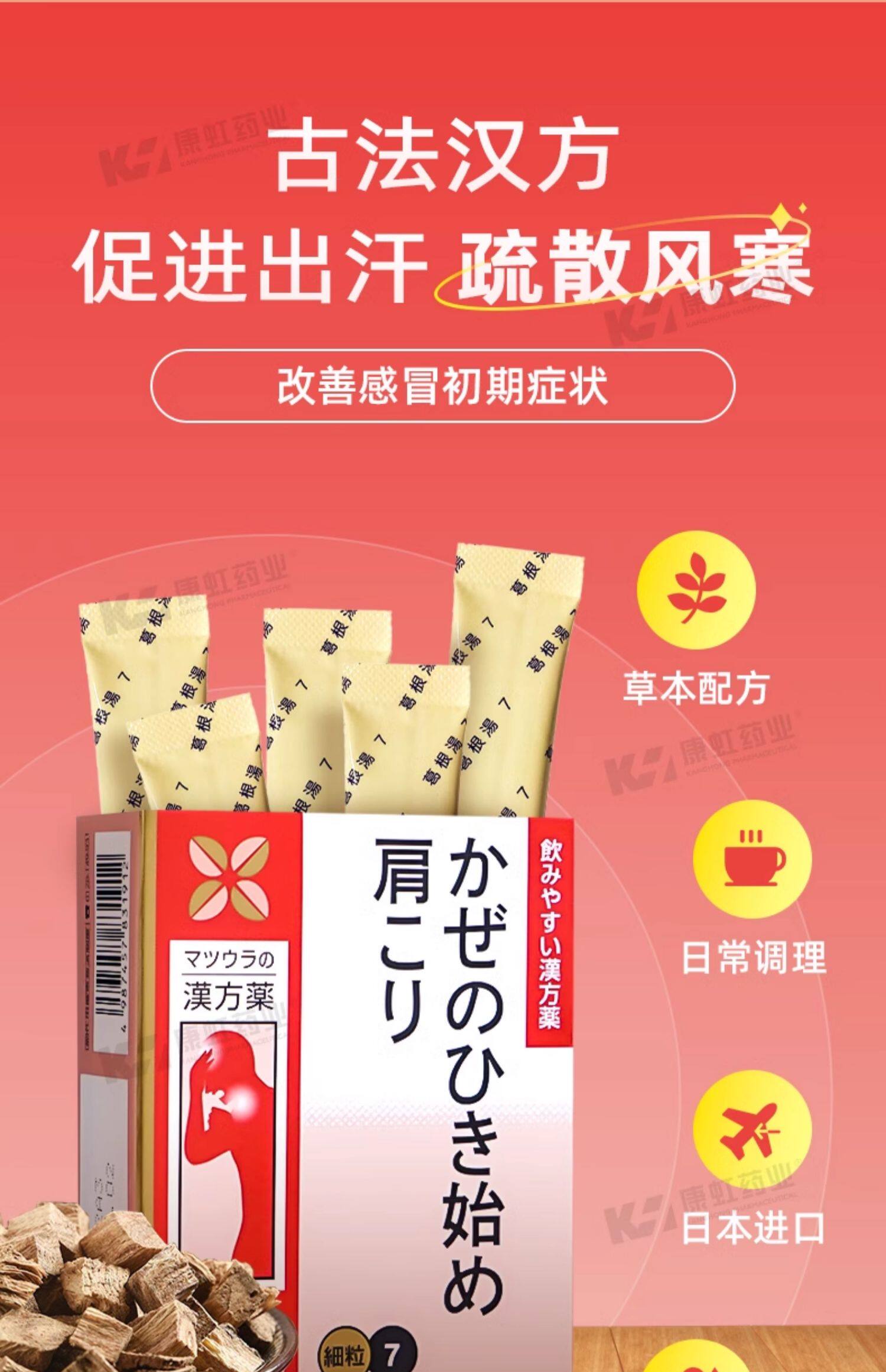 日本葛根汤 颗粒风寒感冒咳嗽咽干咽痒鼻炎鼻塞流鼻涕冲剂中药