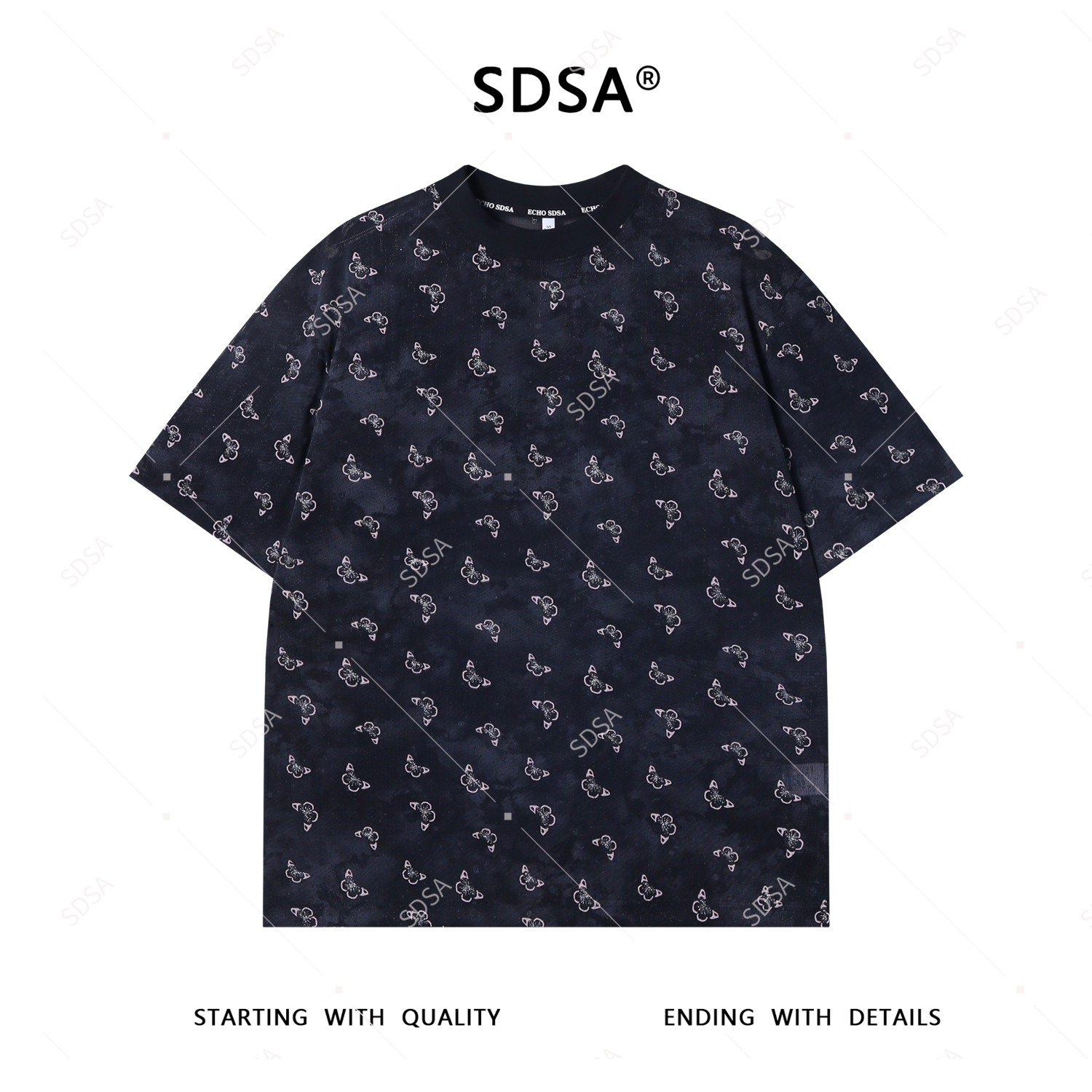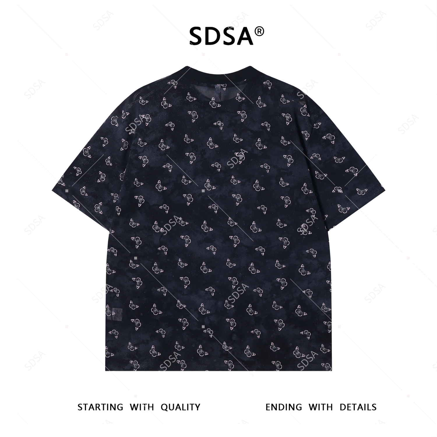 T637夏季新款迷彩印花T恤时尚扎染男士短袖满印潮流上衣