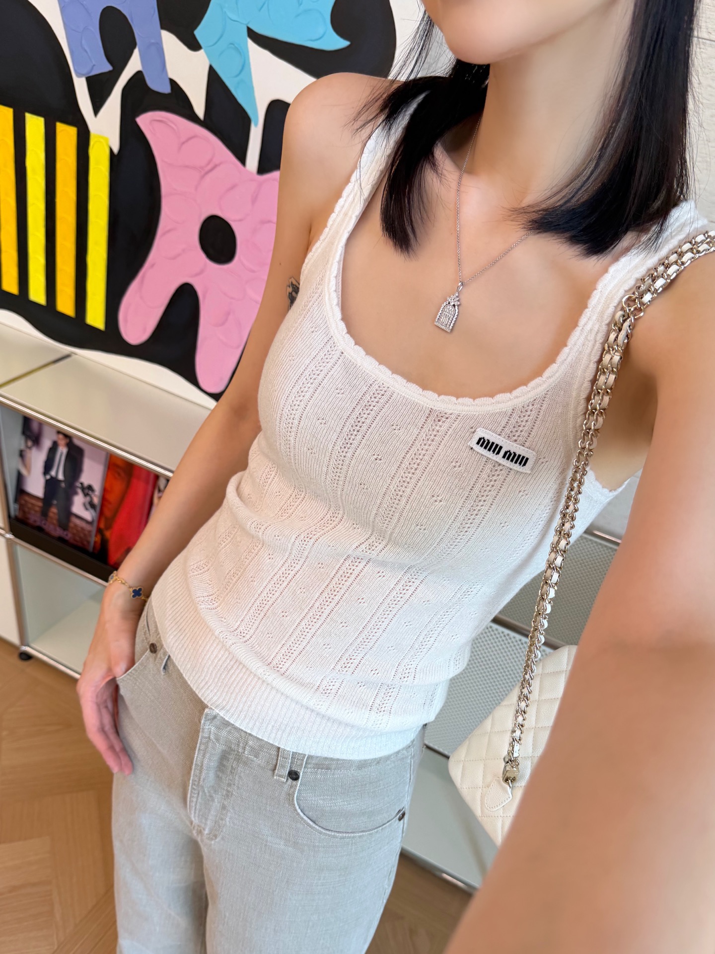真的很难不让人爱上😜 羊绒纱线亲肤超软糯😉🔜 正面徽标细节打造率性时尚感✨ 剪裁垂顺流畅,细肩带设计简约大气且流露女人味🫶🏻 轻松拉长颈部线条🤩 四季皆可穿✔️ 单穿时诠释性感与温柔💖 叠穿其他内搭则氛围感十足💯 绝对是衣橱必备🈵️ 时髦又显高级💫 尺码SML