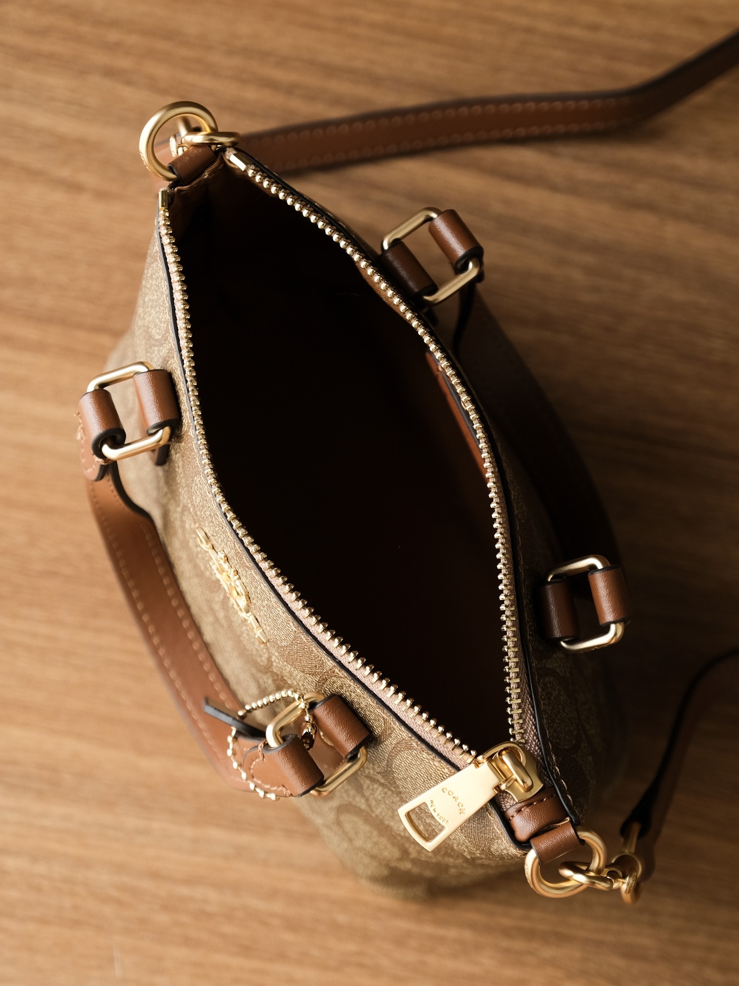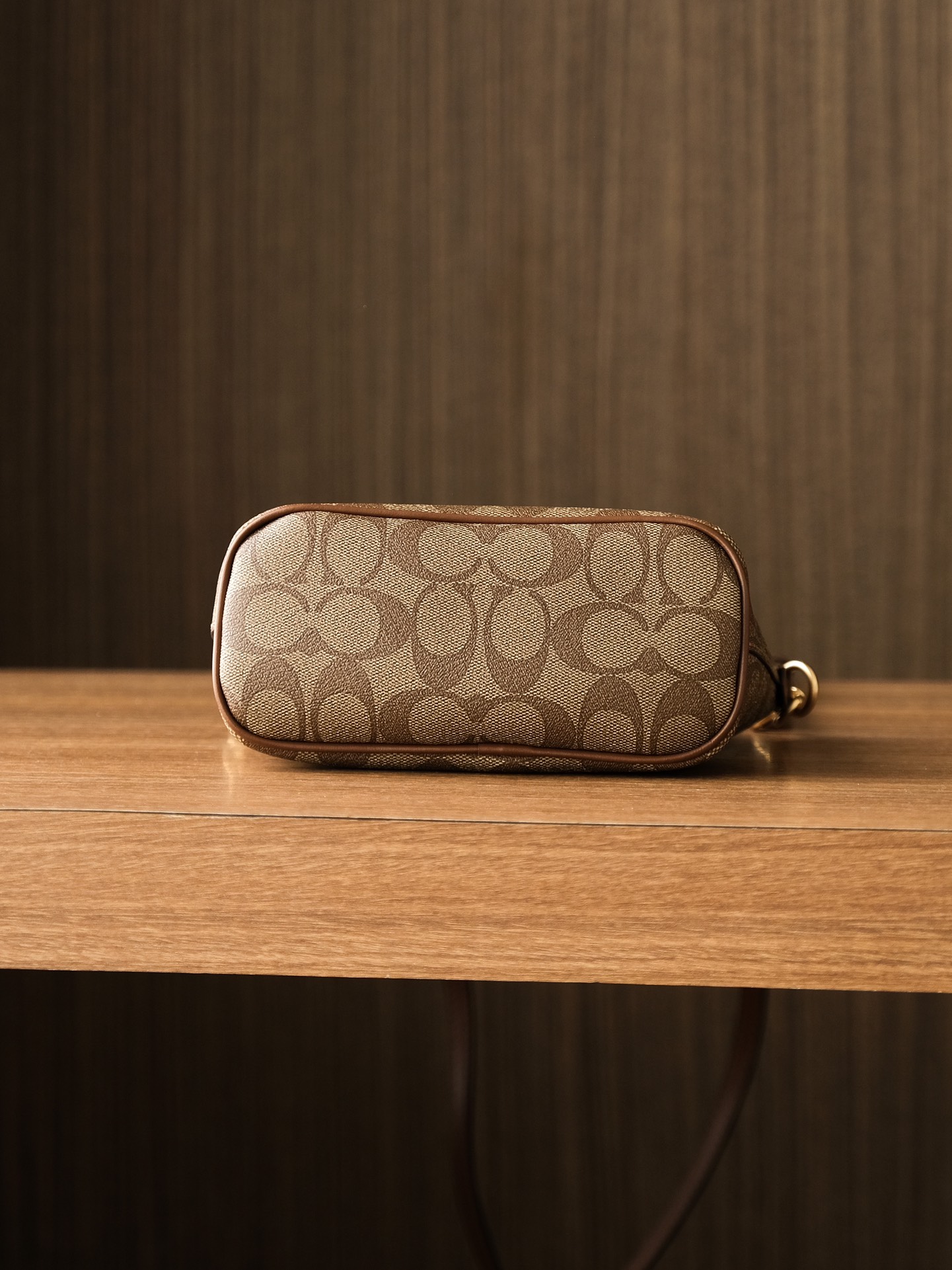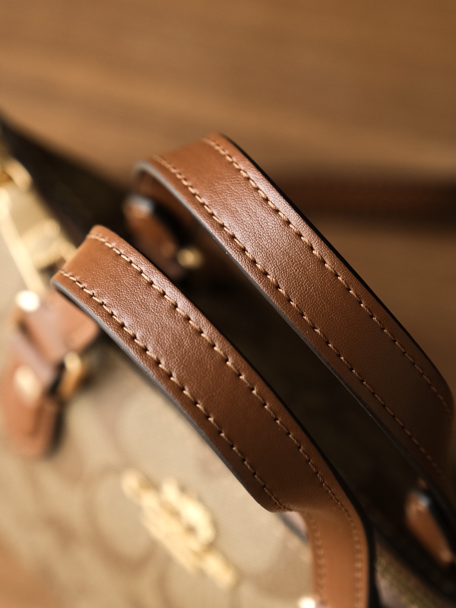 新款饺子包改良了 麻雀虽小五脏俱全 可以放下大手机 或者钱包等日常用品 越看越可爱 容量完全足够日常出门背 搭配神器日常通勤时尚经典 内部还设有两个卡槽 实用性100分 面料是经典的Logo 老花设计 包包配有的长肩带可拆卸 可手提可斜 一条可调节长短的皮质肩带 这个尺寸上身也太好看了 不大不小刚刚好。尺寸 20x14x8