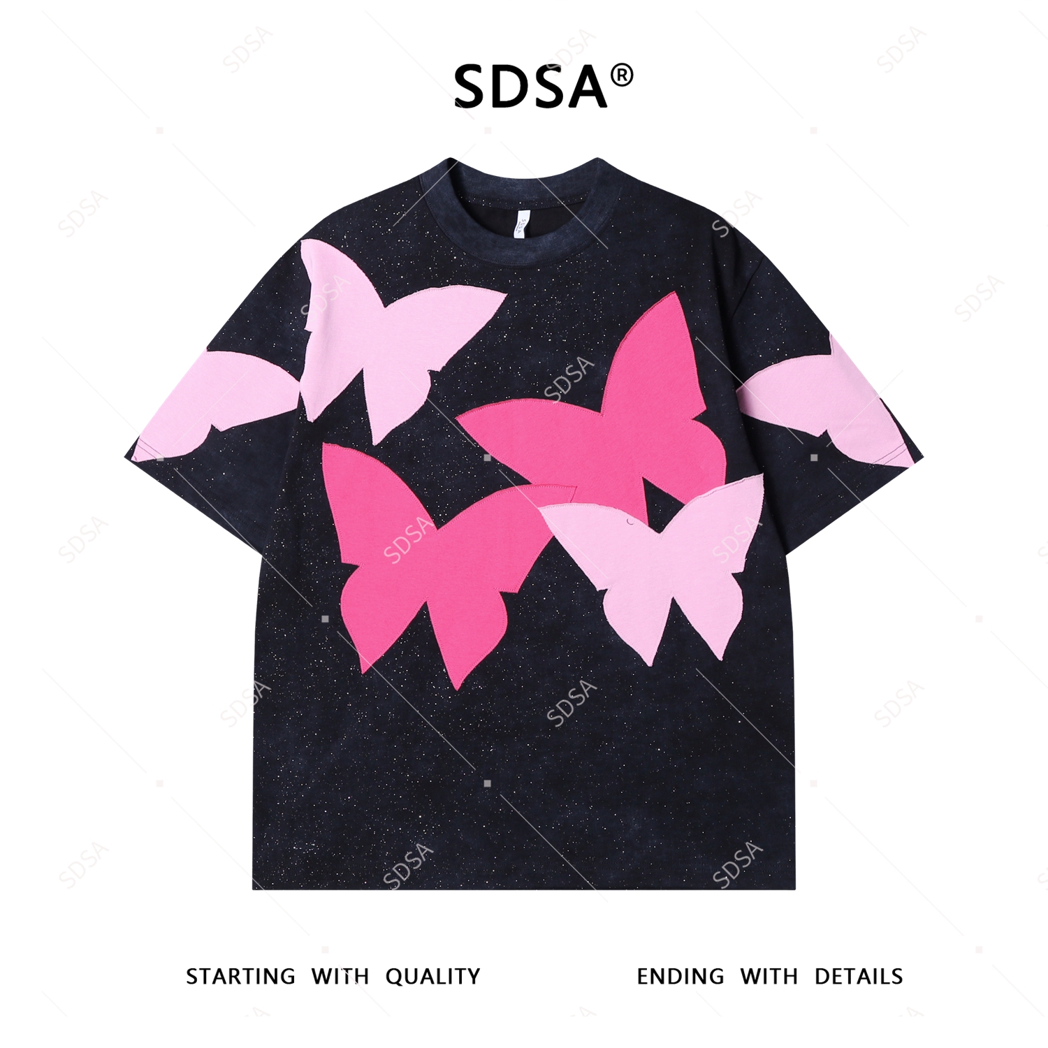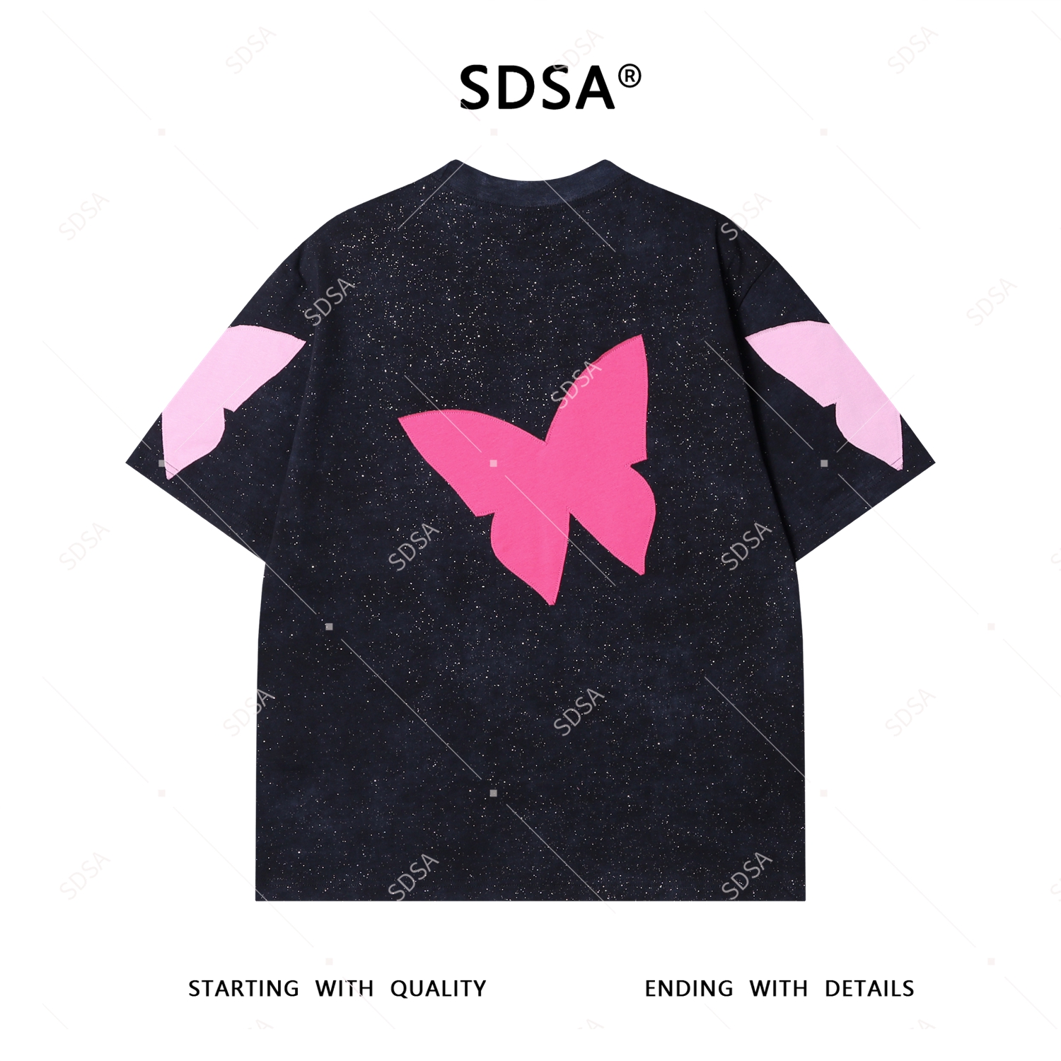 T4044夏季高级感新款男士潮牌撞色贴布蝴蝶设计短袖T恤满天星圆领上衣