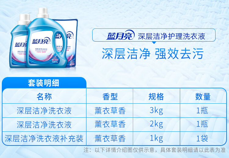 【蓝月亮】深层洁净洗衣液12斤套装:3kg/瓶2kg/瓶1kg/袋 瓶袋12斤组合