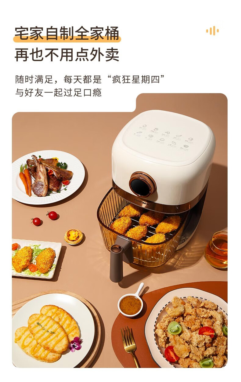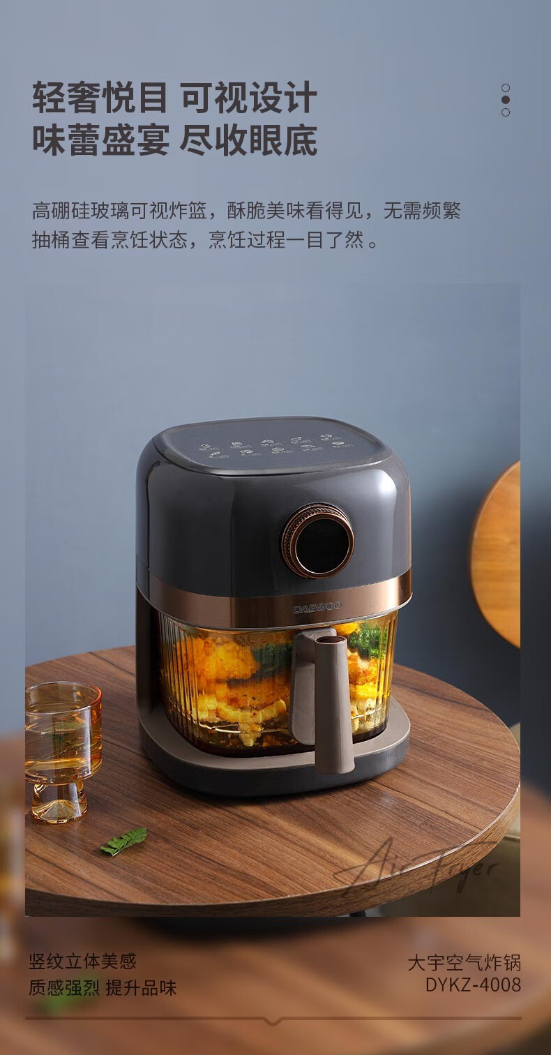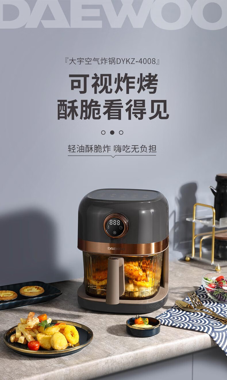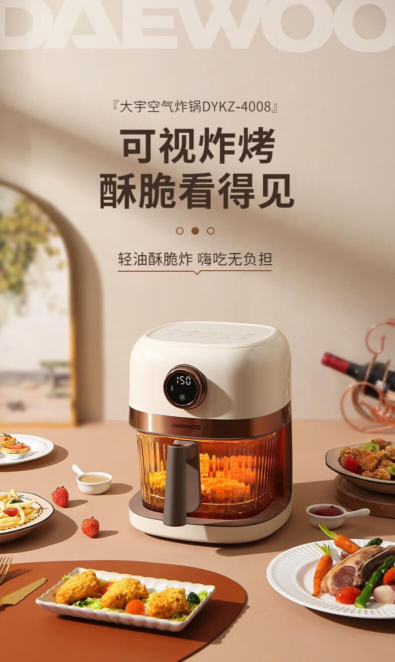 大宇(DAEWOO)家用电炸锅多功能可视窗口4L容量空气炸锅 DYKZ-4008暖阳白