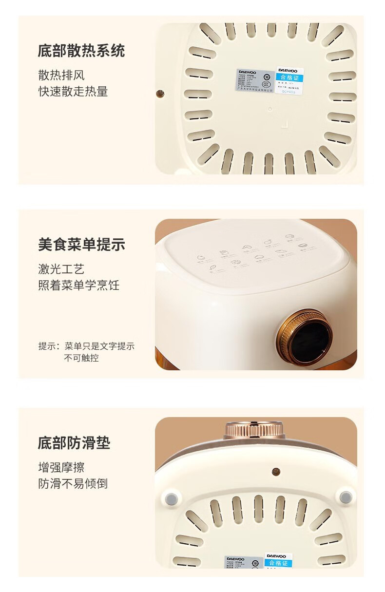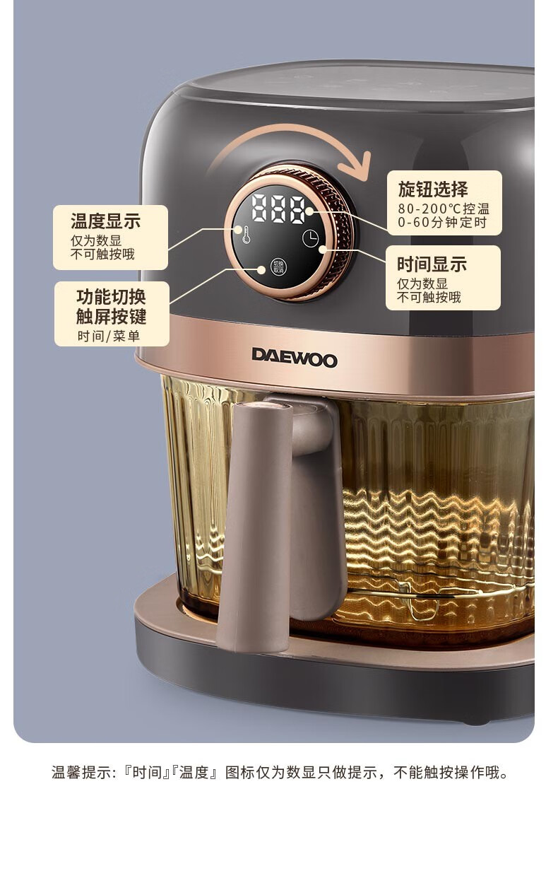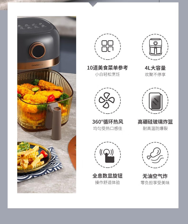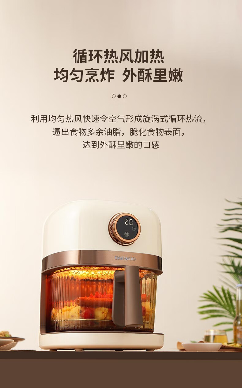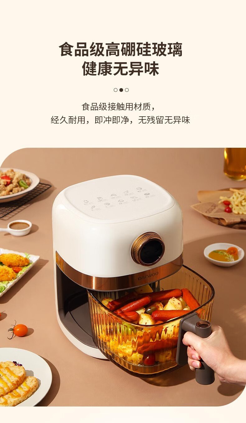 大宇(DAEWOO)家用电炸锅多功能可视窗口4L容量空气炸锅 DYKZ-4008暖阳白
