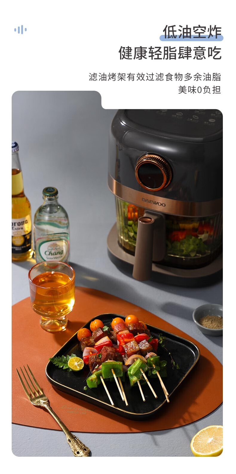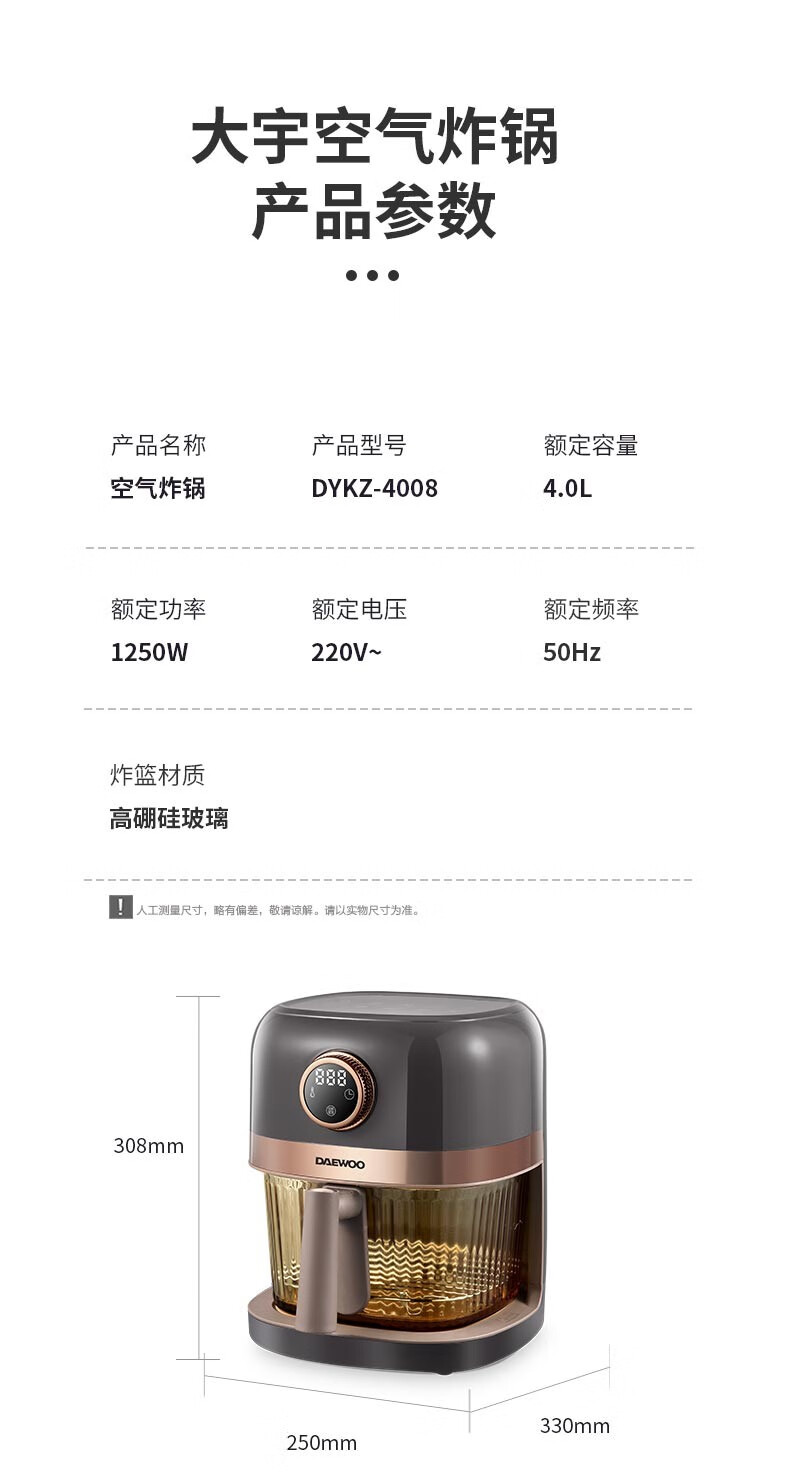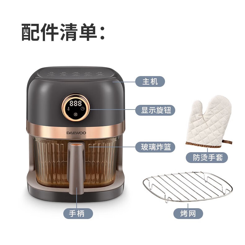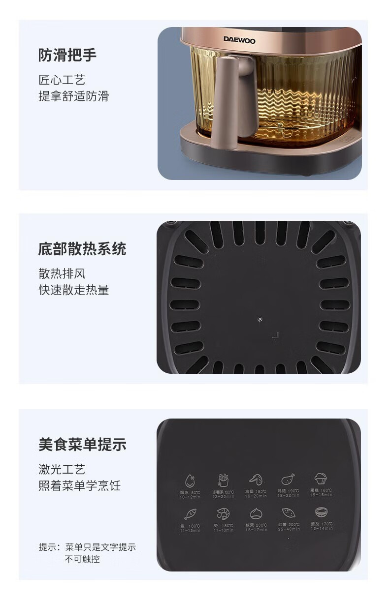 大宇(DAEWOO)家用电炸锅多功能可视窗口4L容量空气炸锅 DYKZ-4008暖阳白