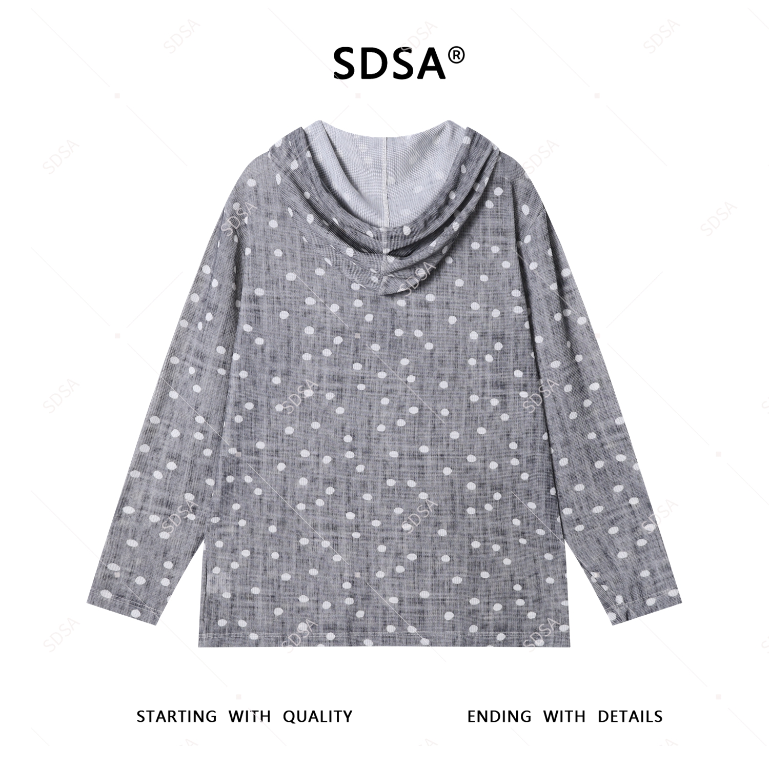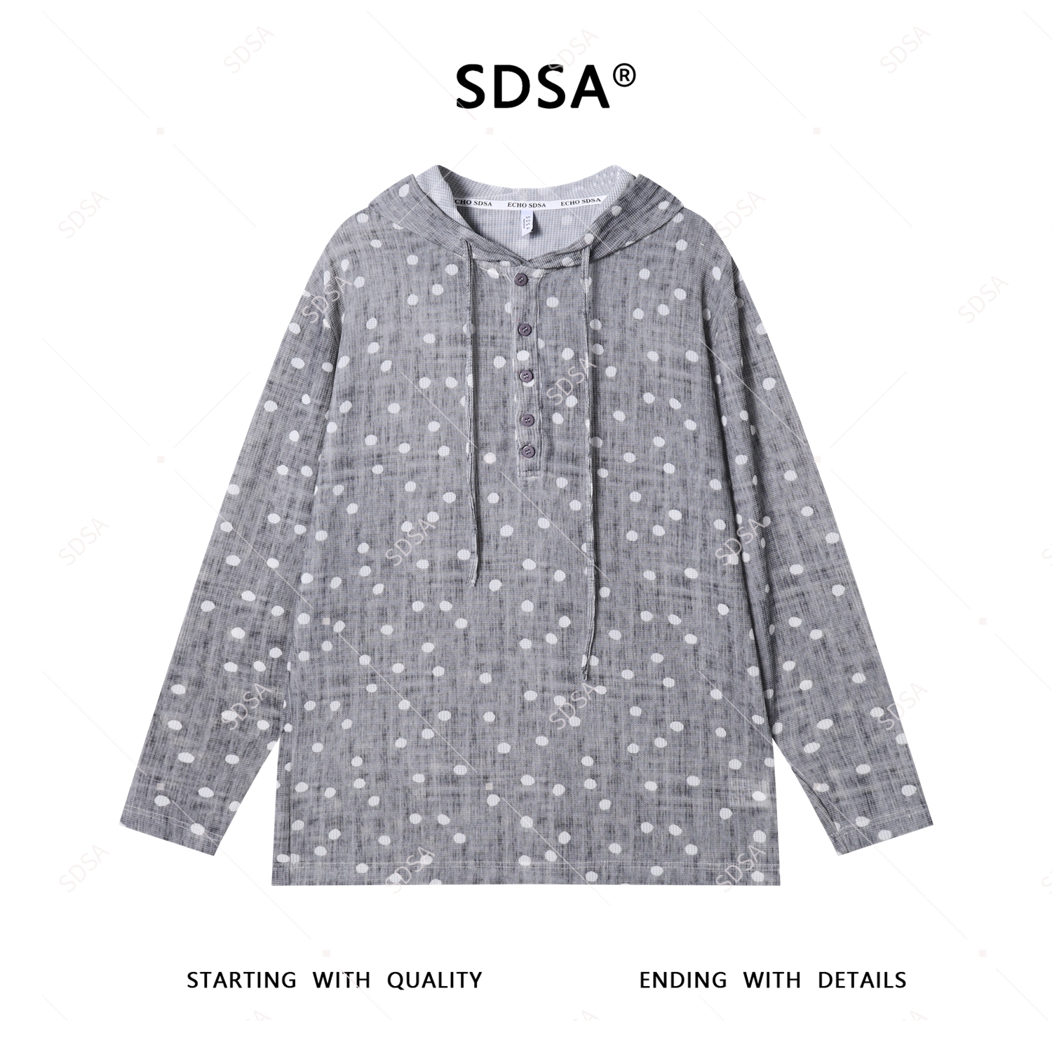T4625SDSA男士秋冬新款轻奢痞帅男装撞色波点印花半纽扣连帽长袖T恤潮