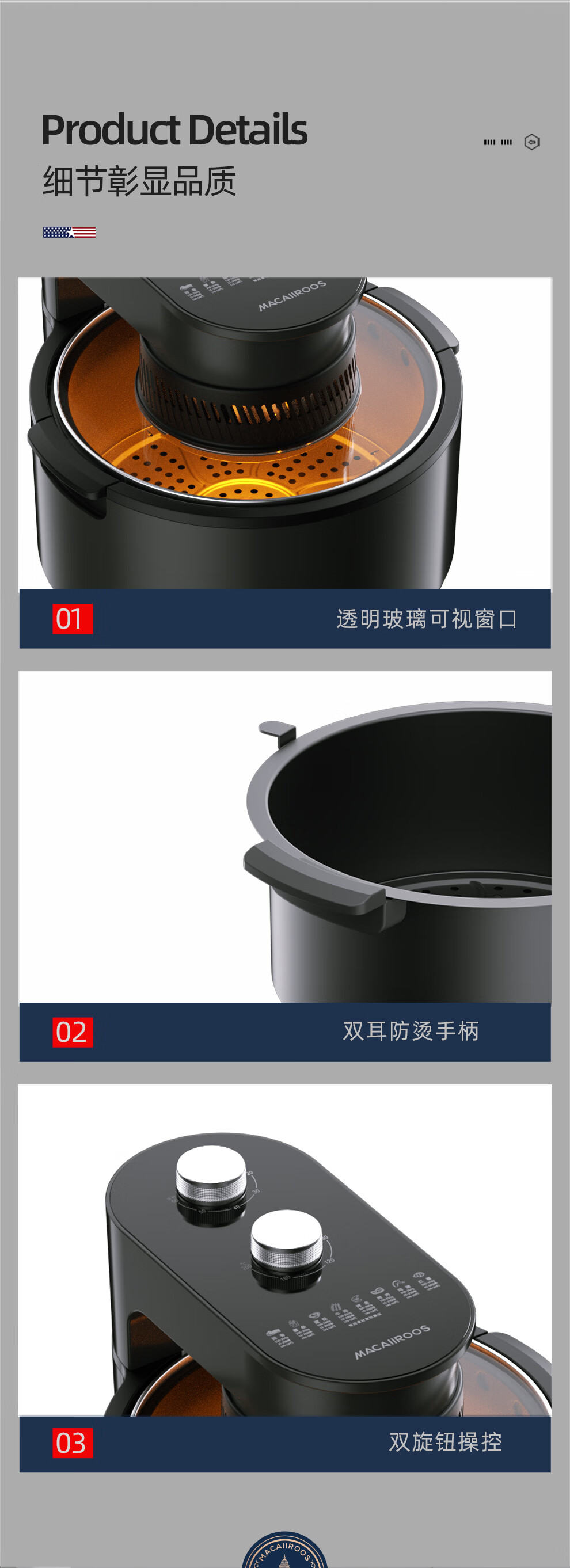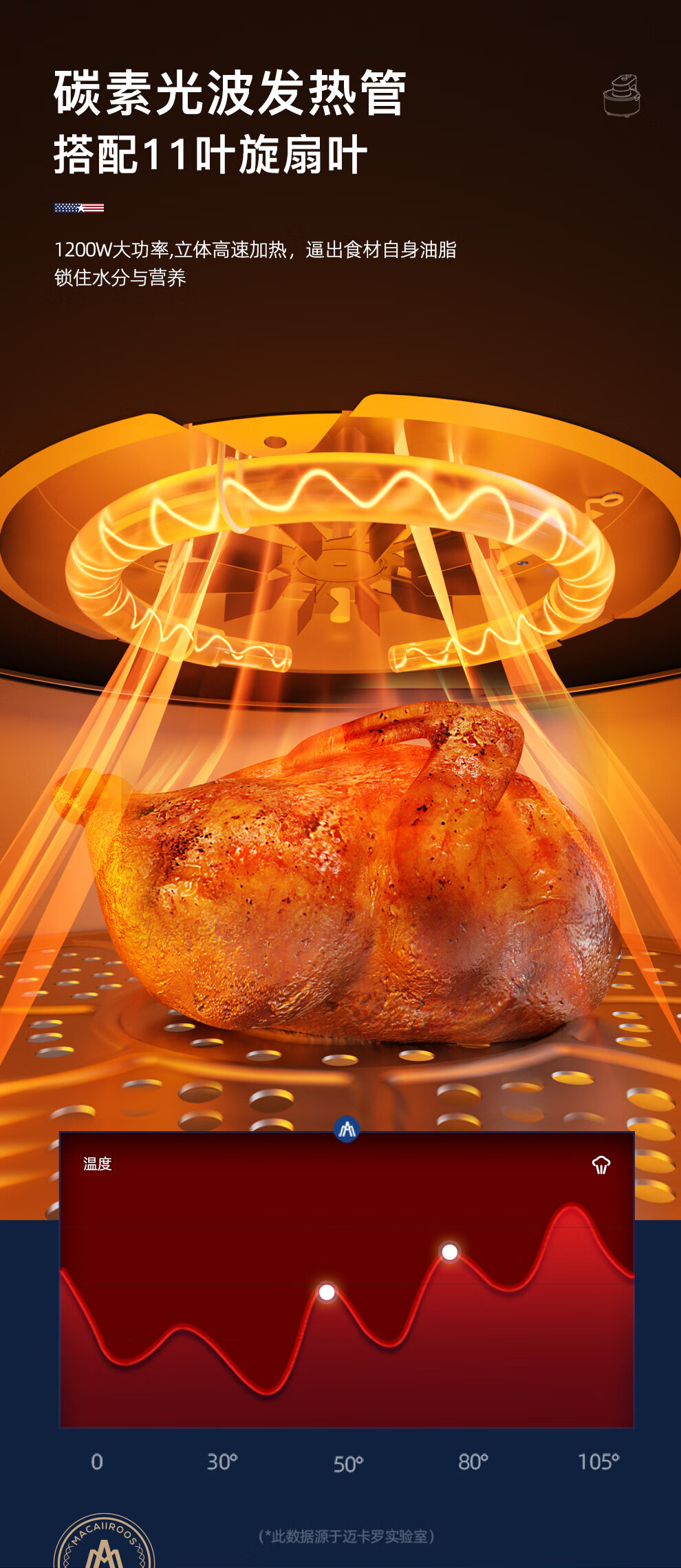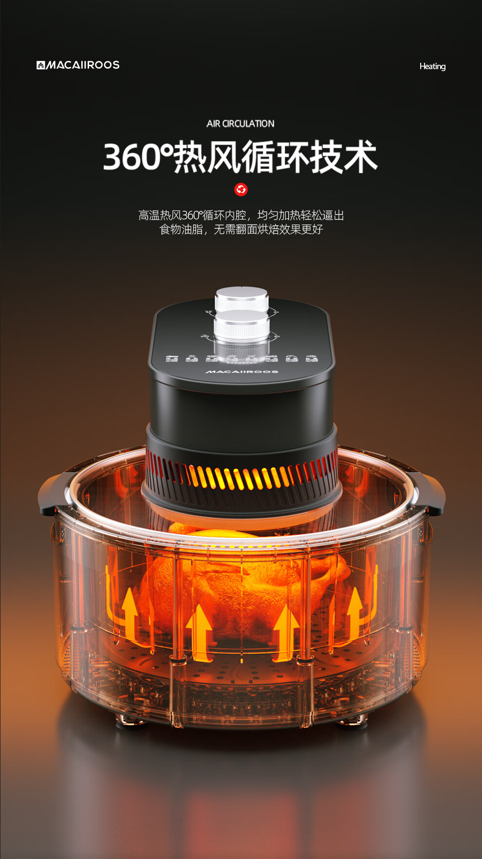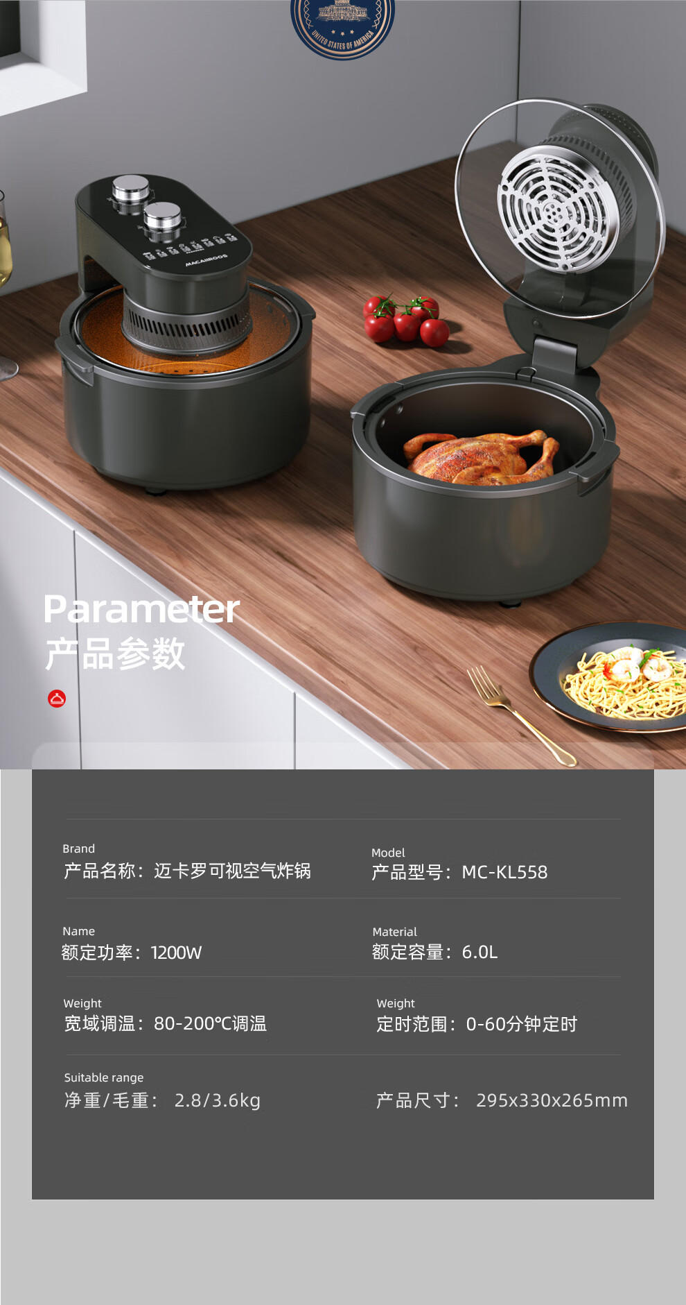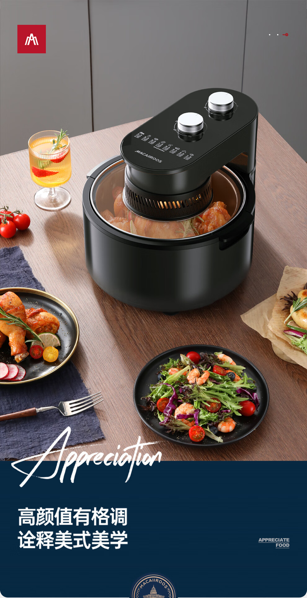 迈卡罗 (MACAIIROOS)空气炸锅家用智能多功能无油烟电炸锅 大功率烤箱薯条机 MC-KL15M/MC-KX12M