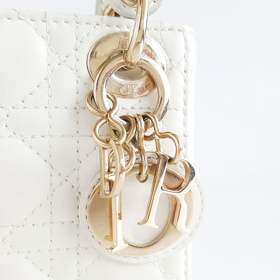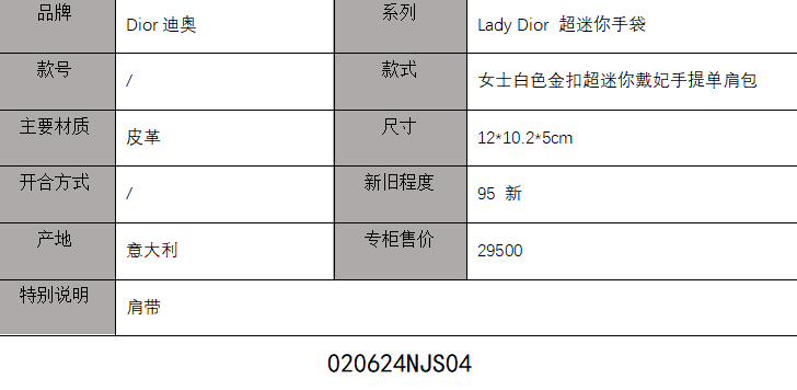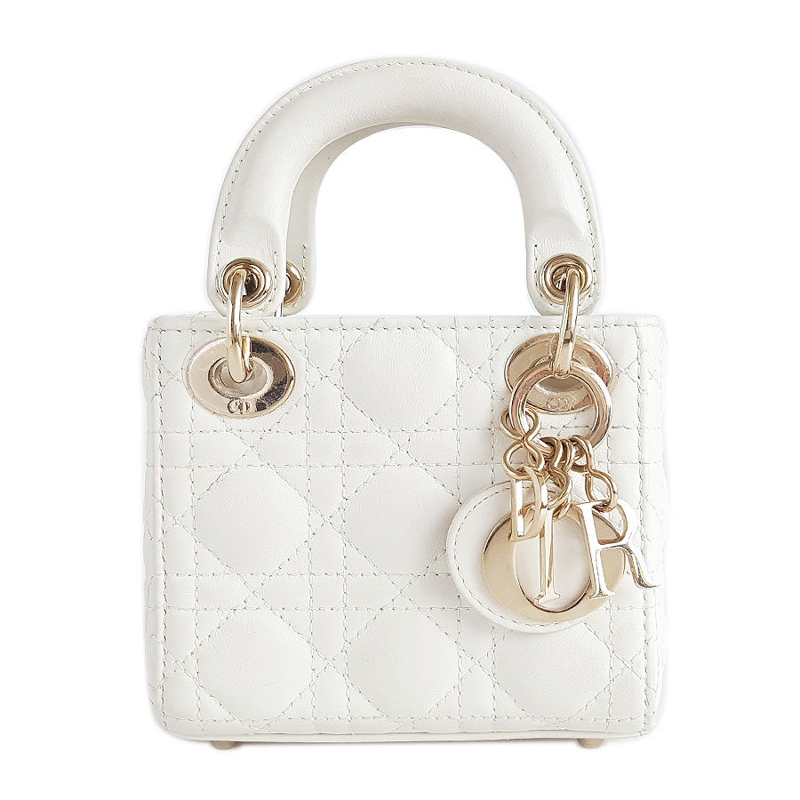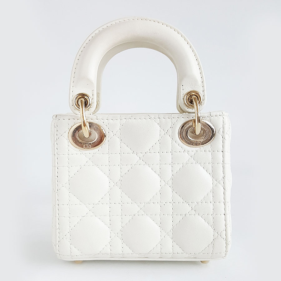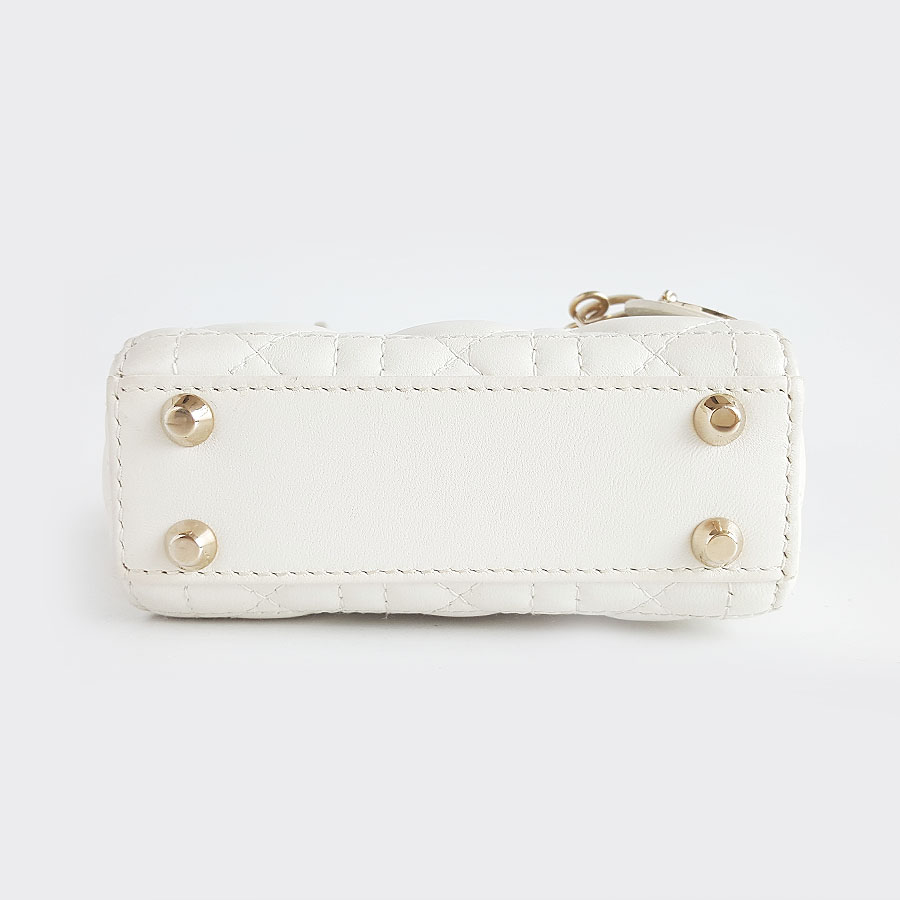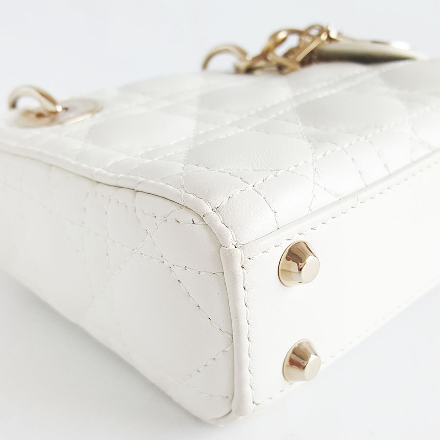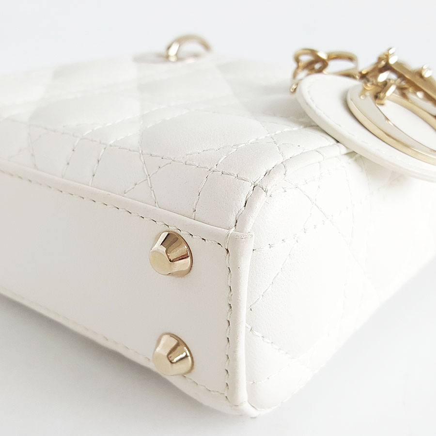 【95新】Dior迪奥 Lady Dior 超迷你手袋 女士白色金扣超迷你戴妃手提单肩包现售价:13000! 020624NJS04