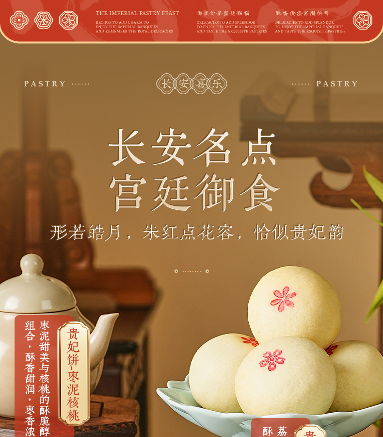 【长安喜乐礼盒】皇家尚食局西安特产点心礼盒中式贵妃水晶饼枣泥糕点送礼长辈食品855g