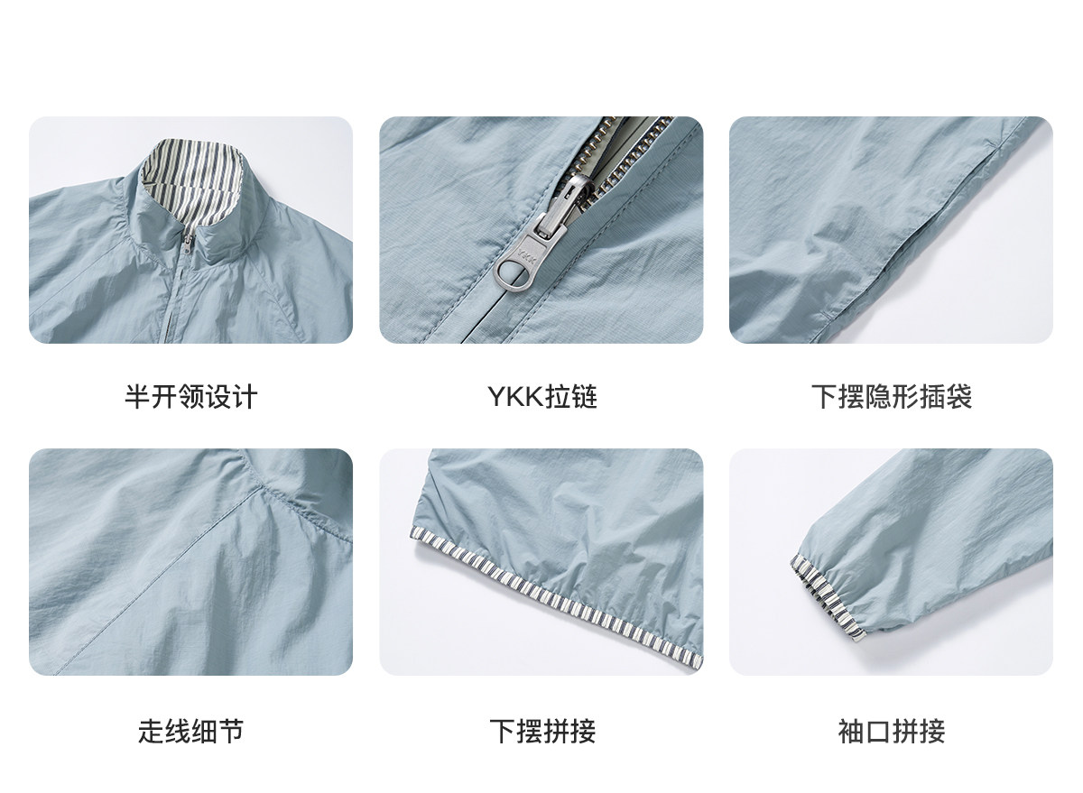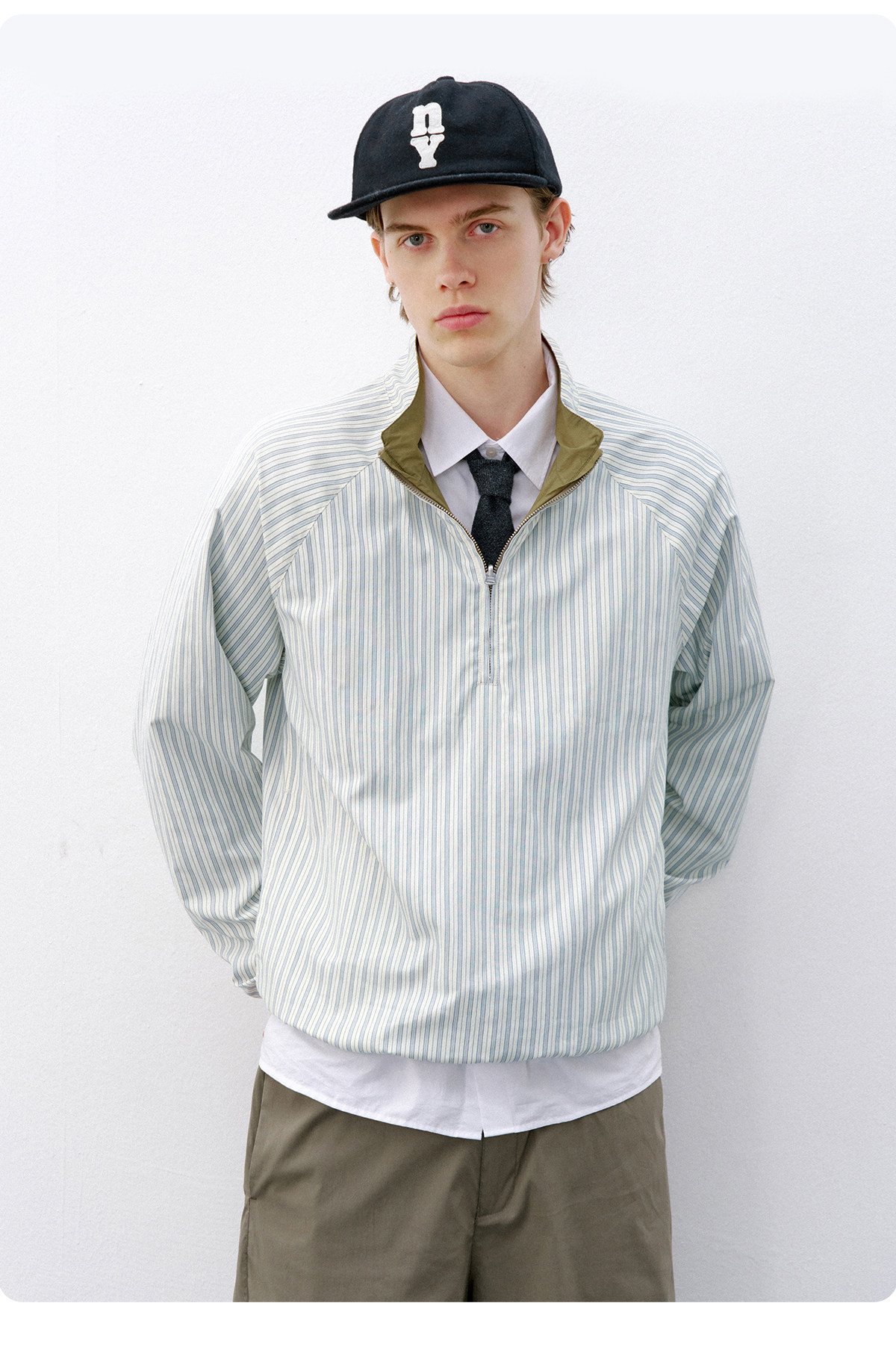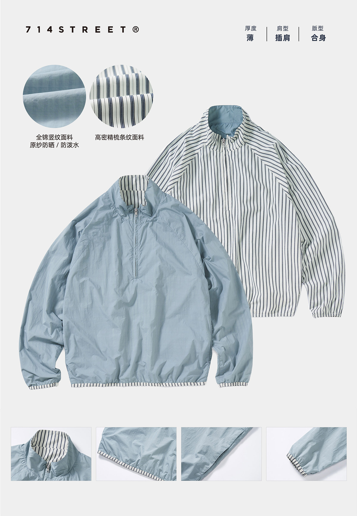 714street轻薄防水防晒半拉链两面穿外套男 2026春季条纹立领夹克
