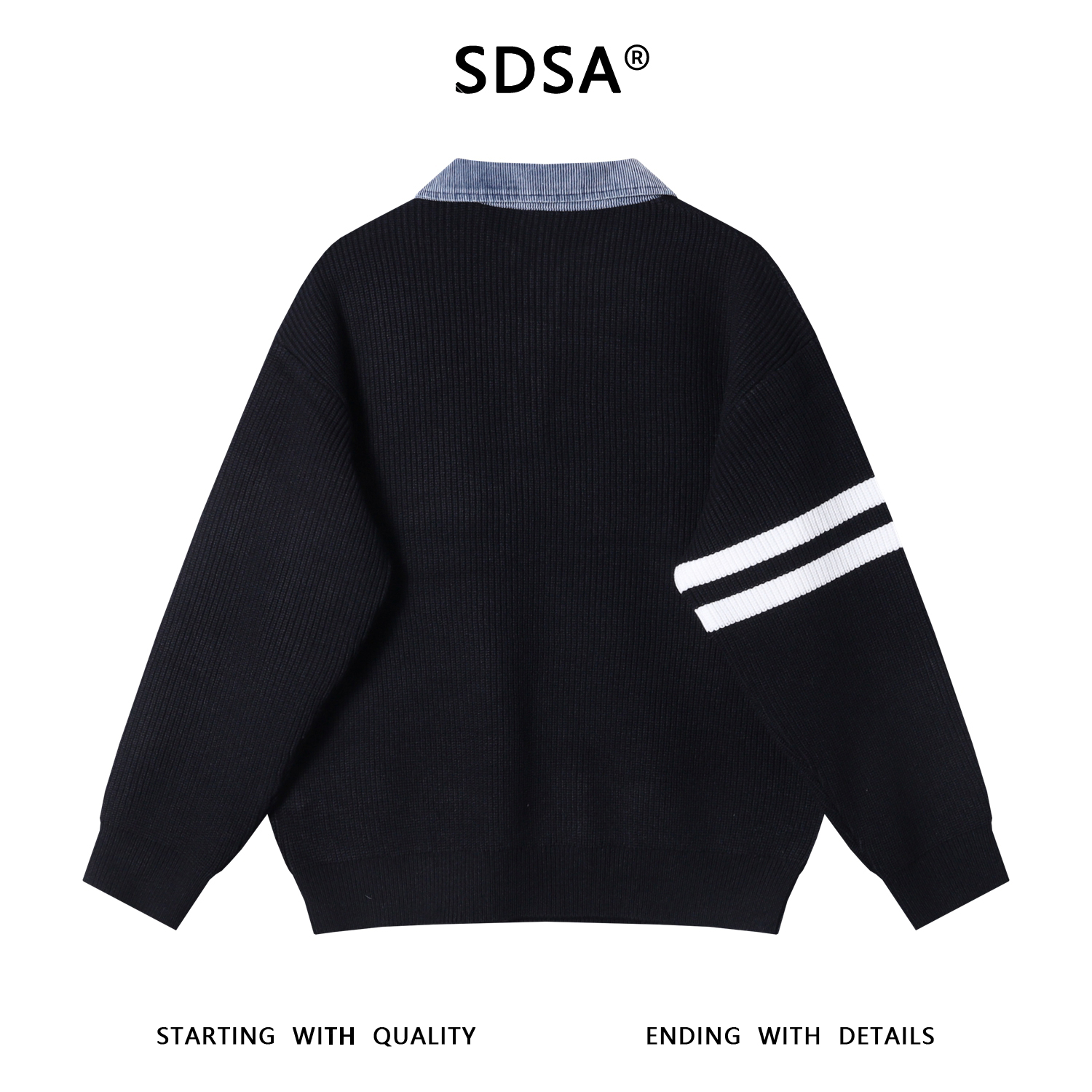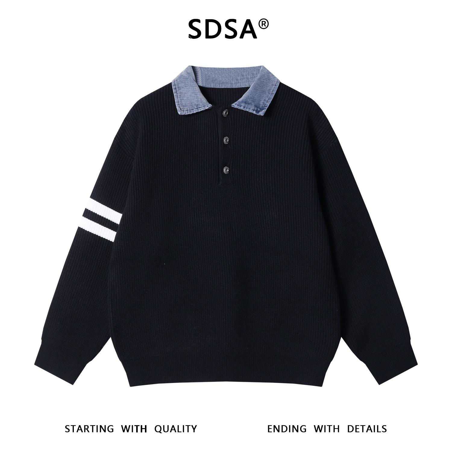 257168SDSA男士秋冬新款痞帅男装韩版撞色竖纹拼接POLO领毛衣百搭时尚