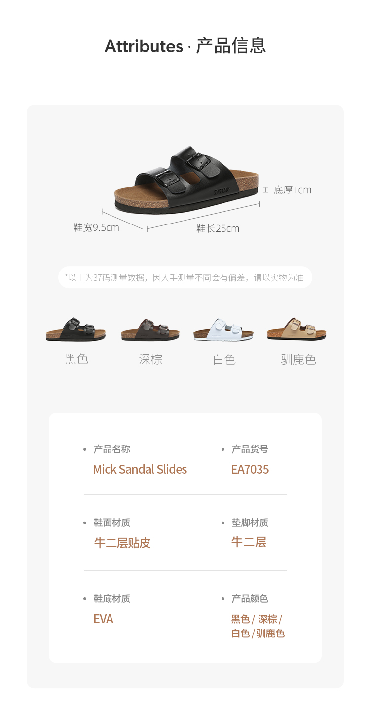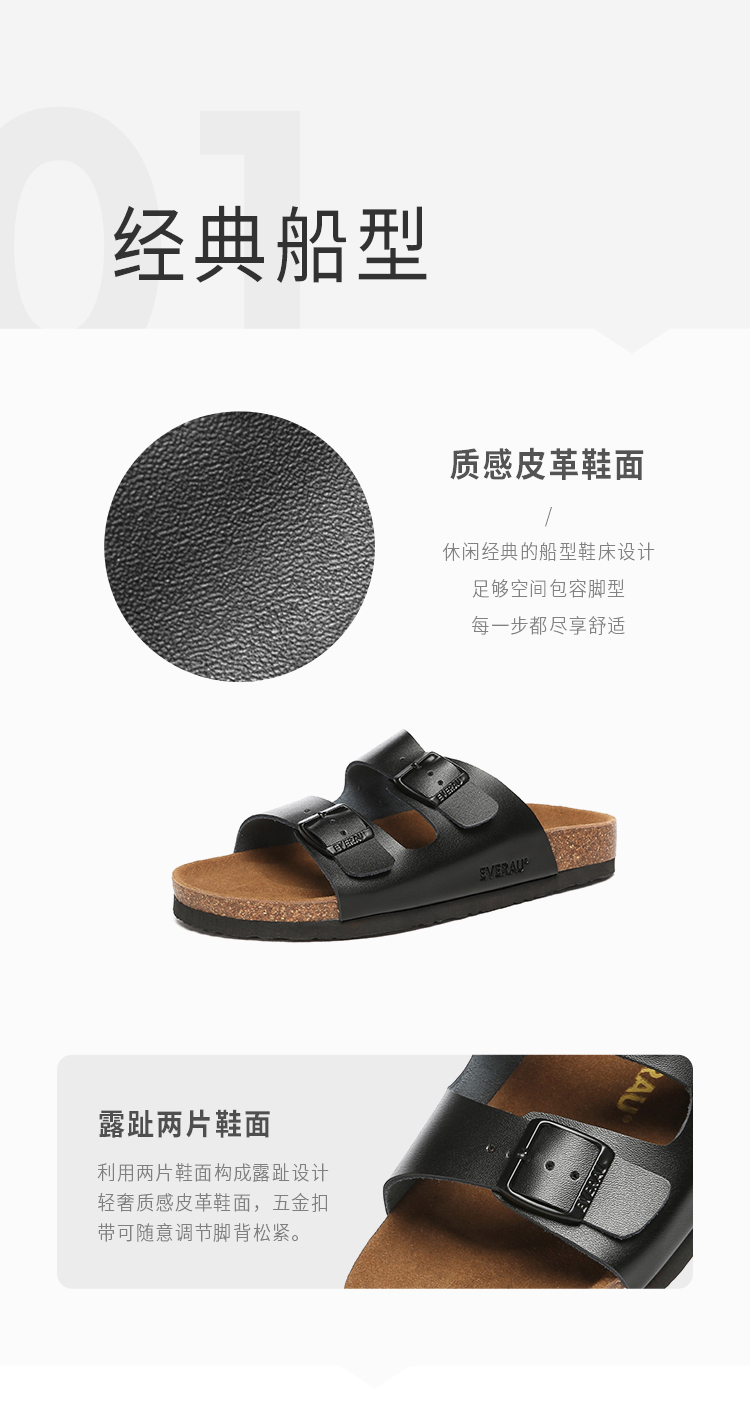 【澳洲品牌】EVERAU时尚新款米克外穿软木拖鞋防滑情侣室外大码沙滩鞋男女EA7035