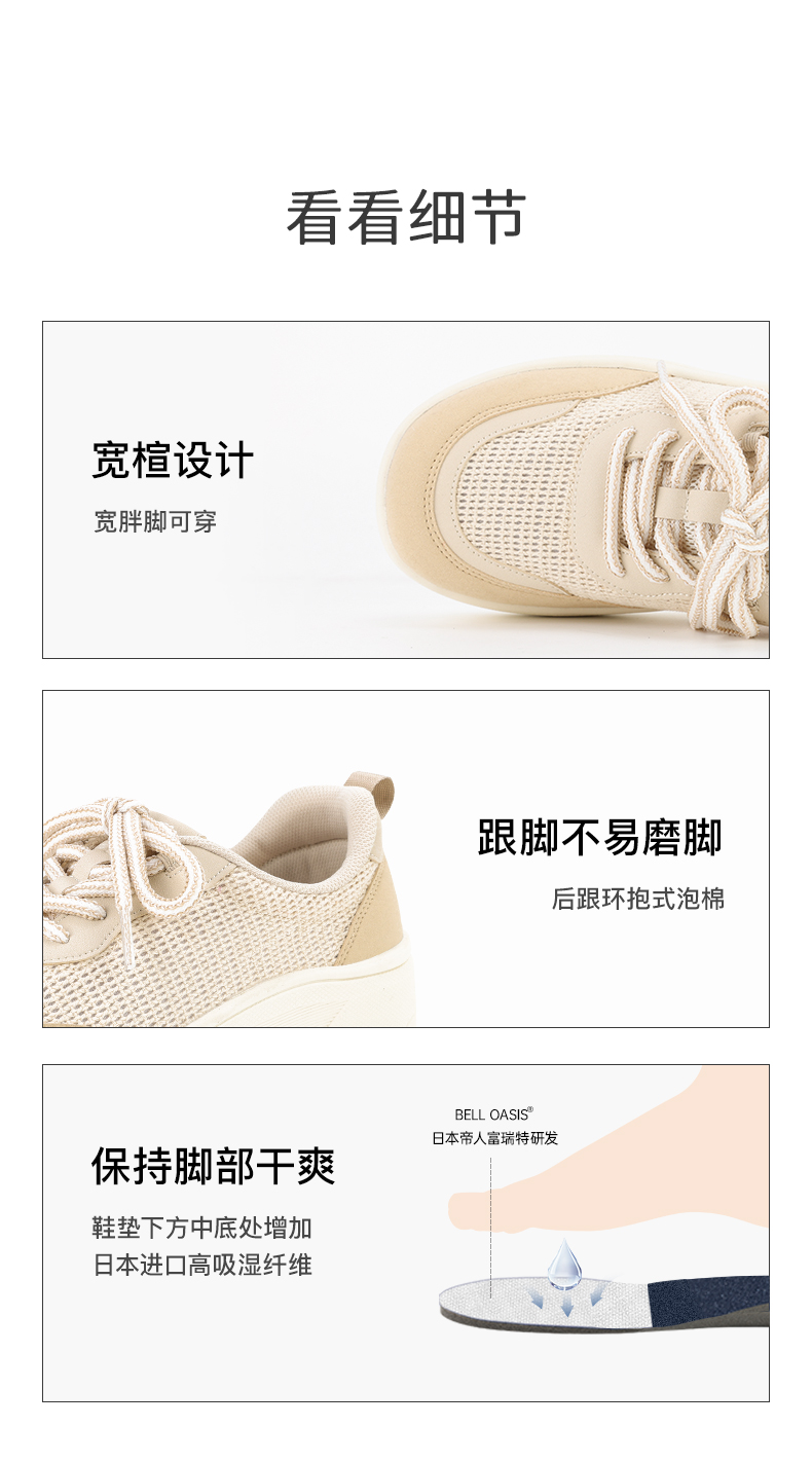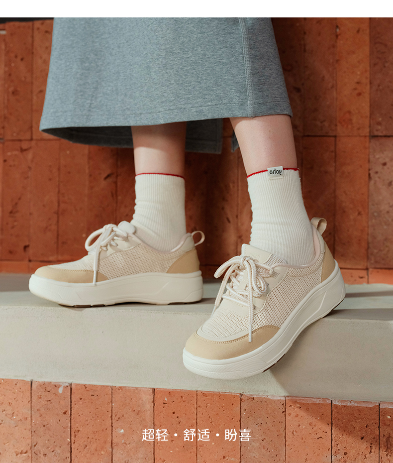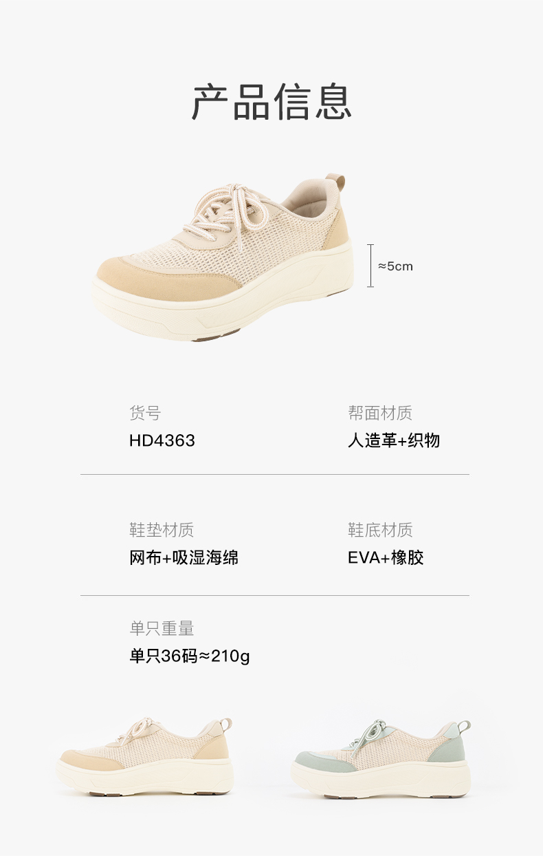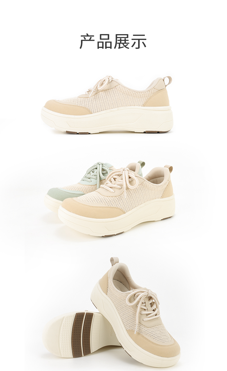 Pansy盼喜女鞋透气网面加宽舒适厚底增高运动休闲鞋2026年春新款HD4363