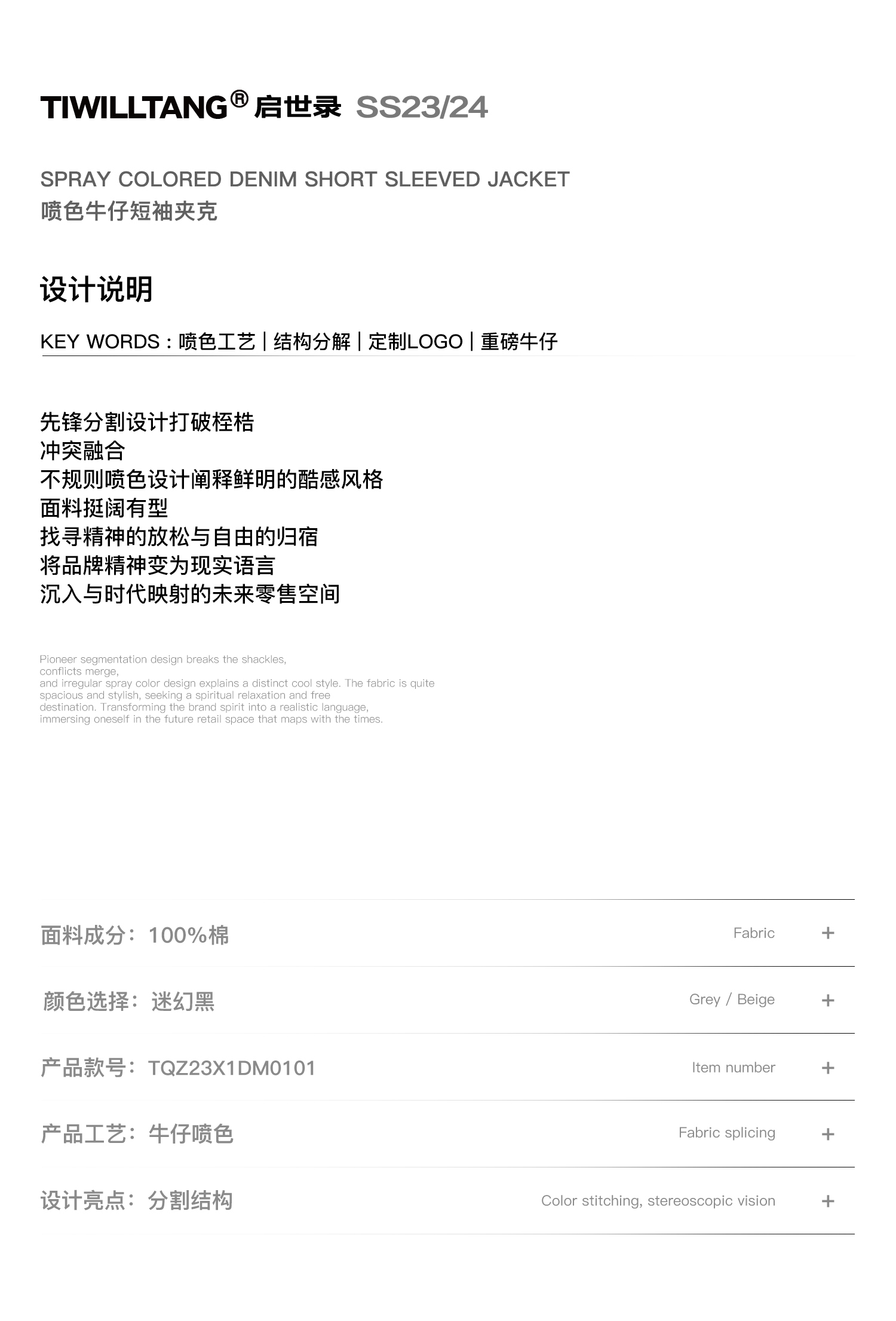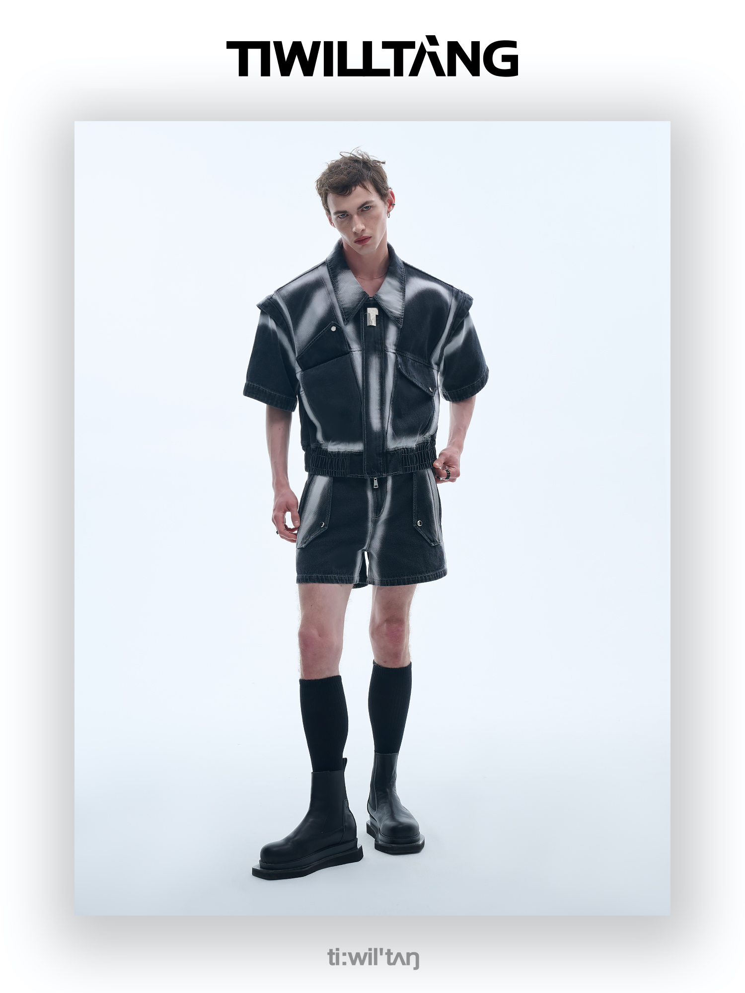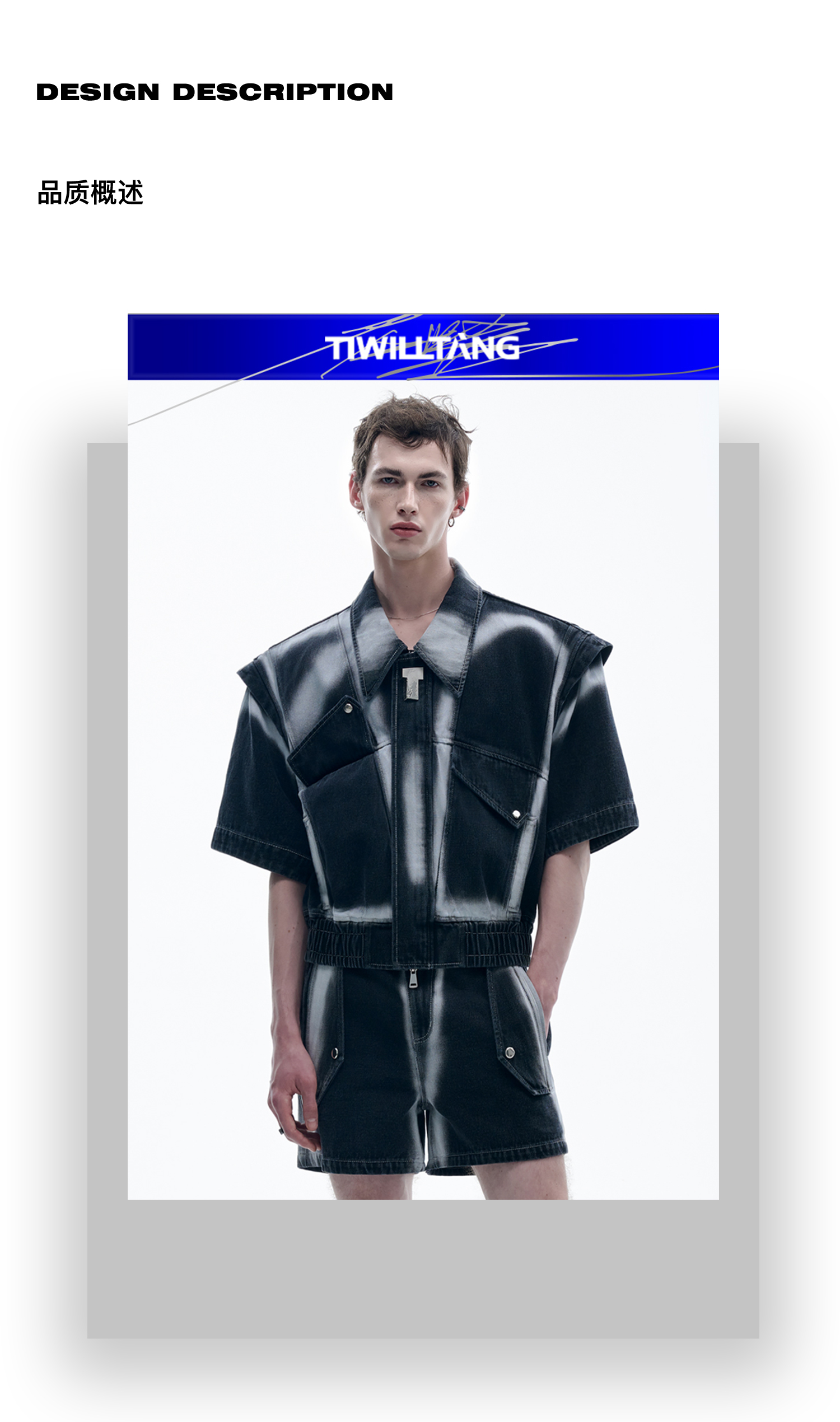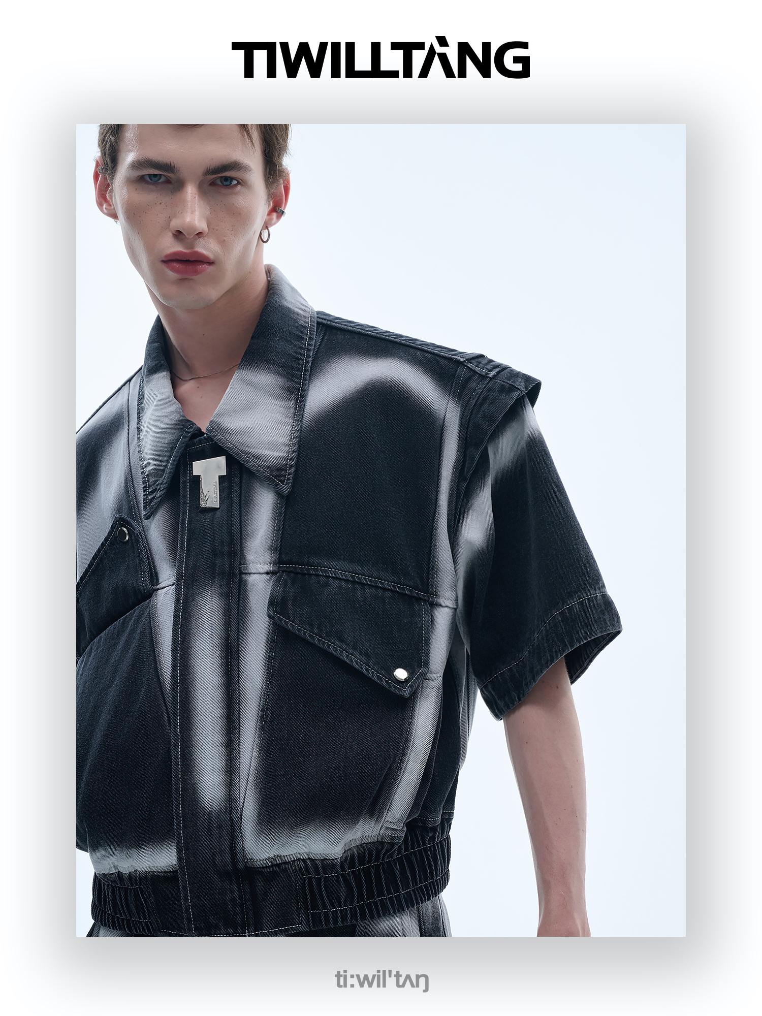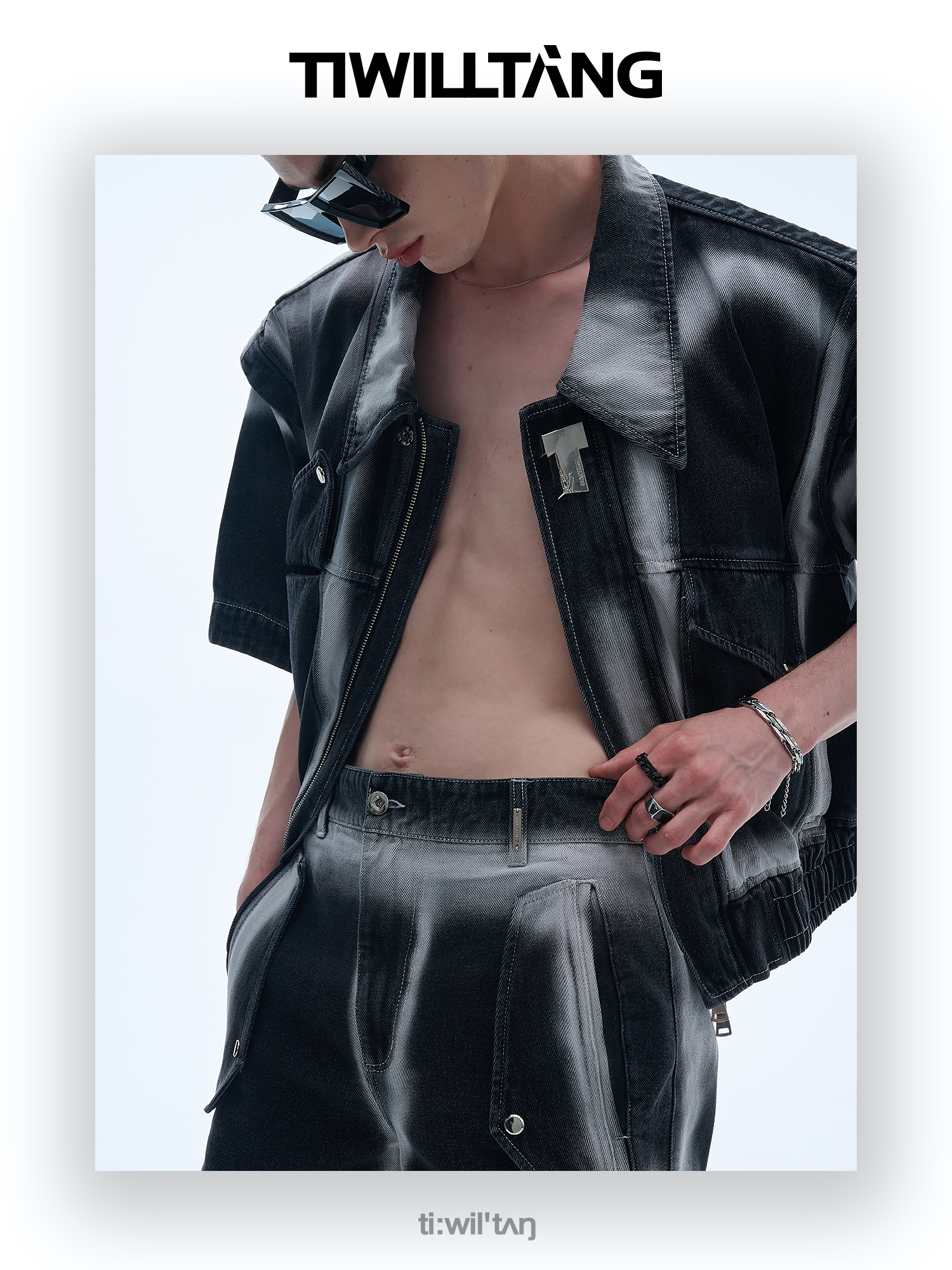 启世录TIWILLTANG明星同款"迷垣璇倪"喷色牛仔短袖夹克纯棉套装