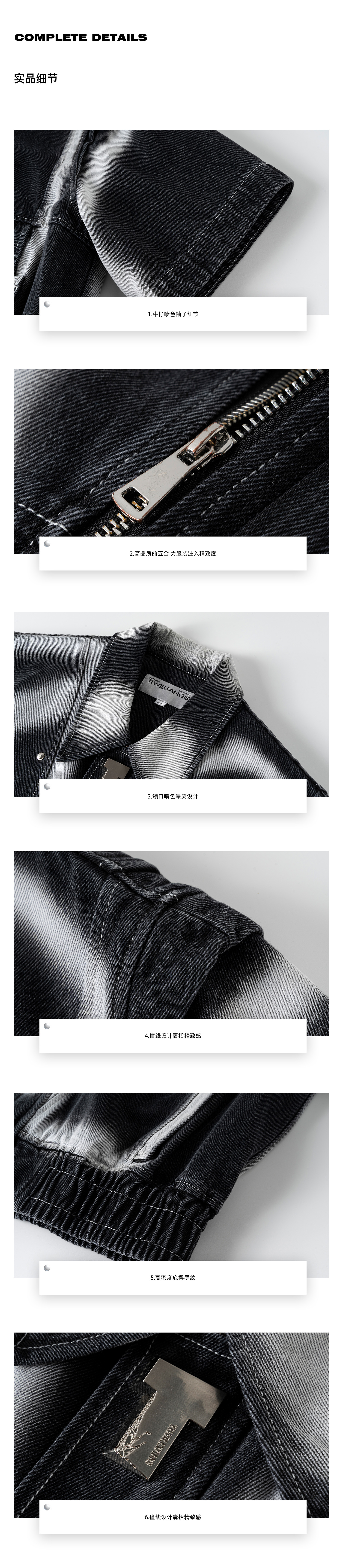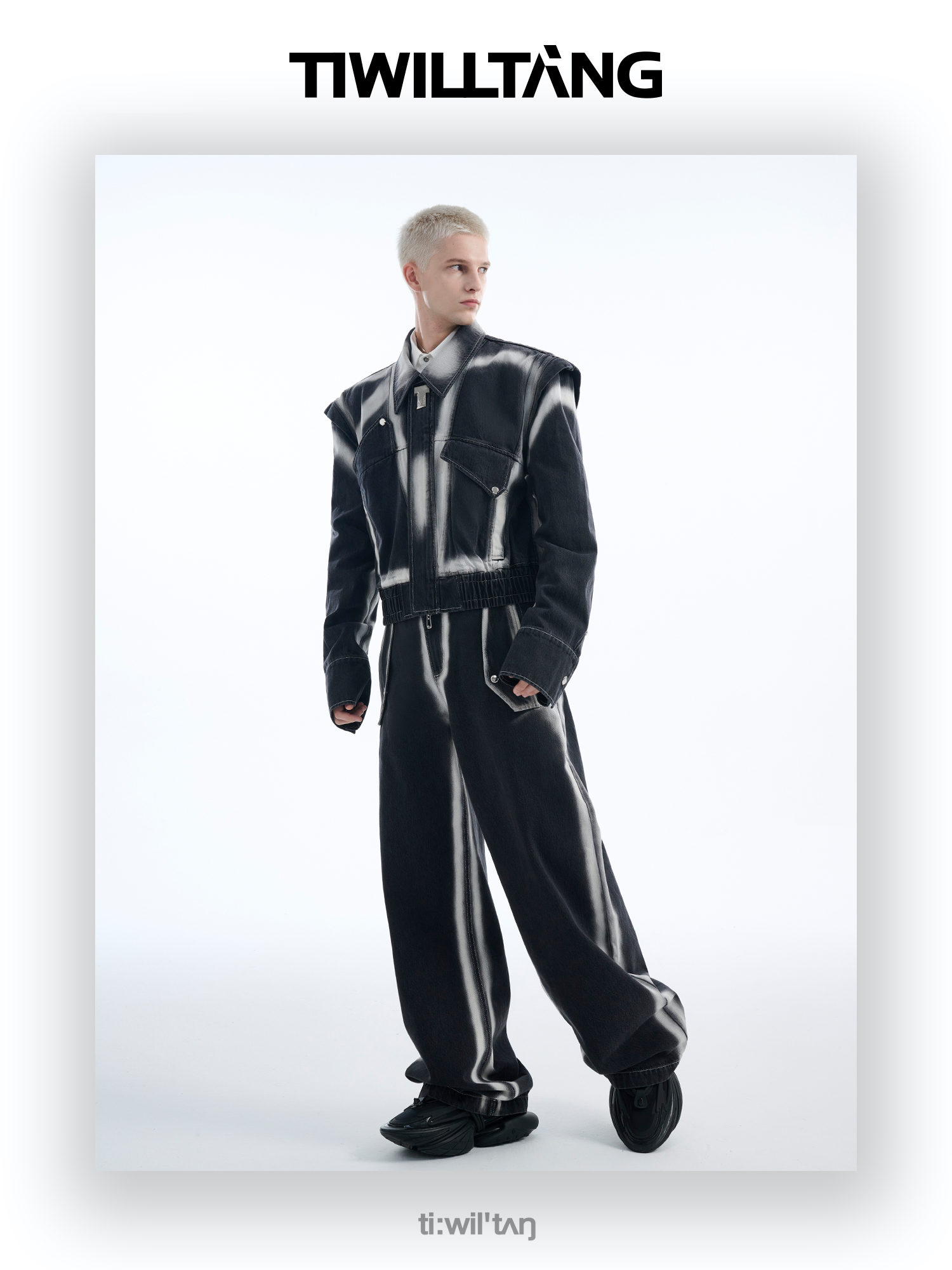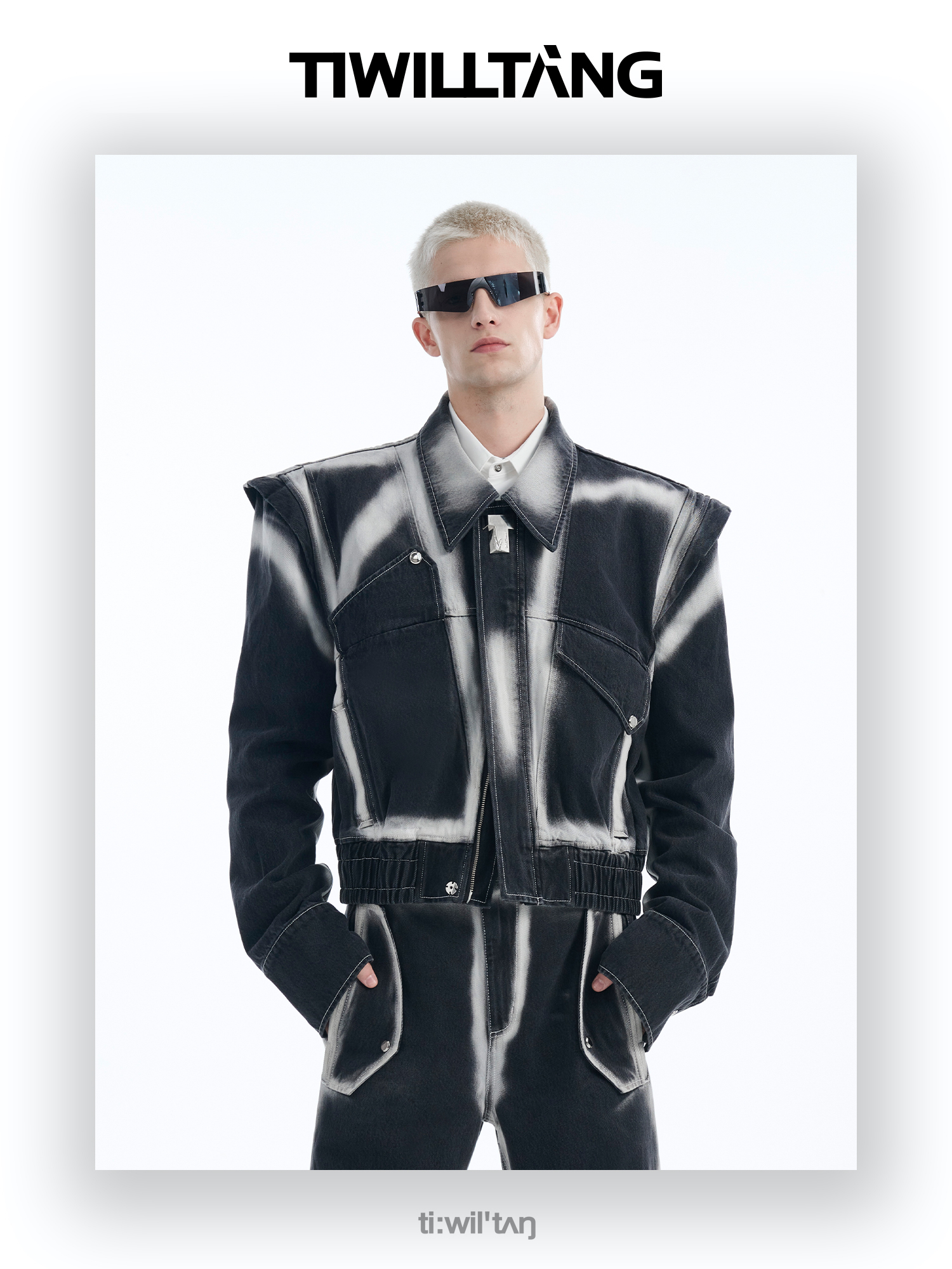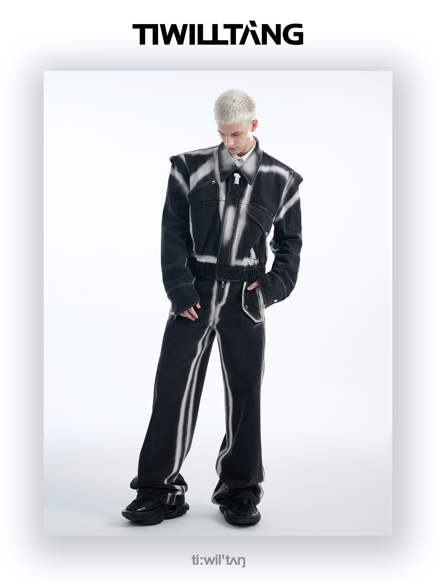 启世录TIWILLTANG明星同款"迷垣璇倪"喷色牛仔短袖夹克纯棉套装