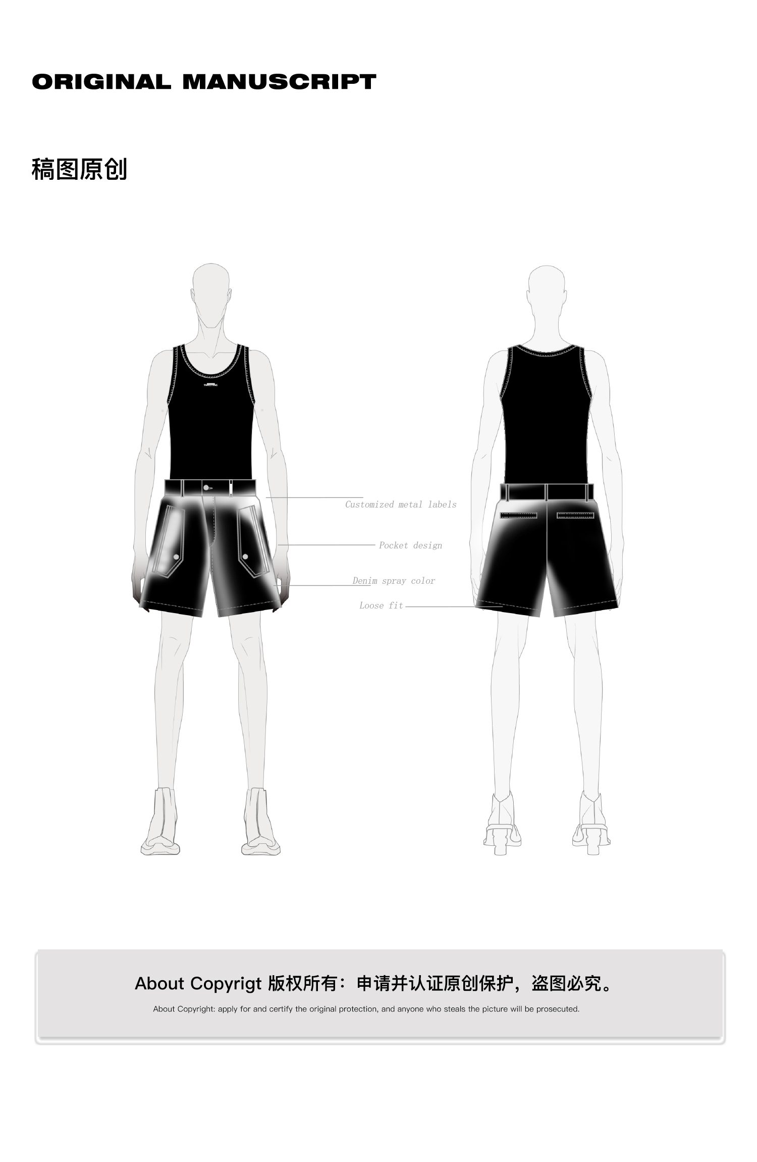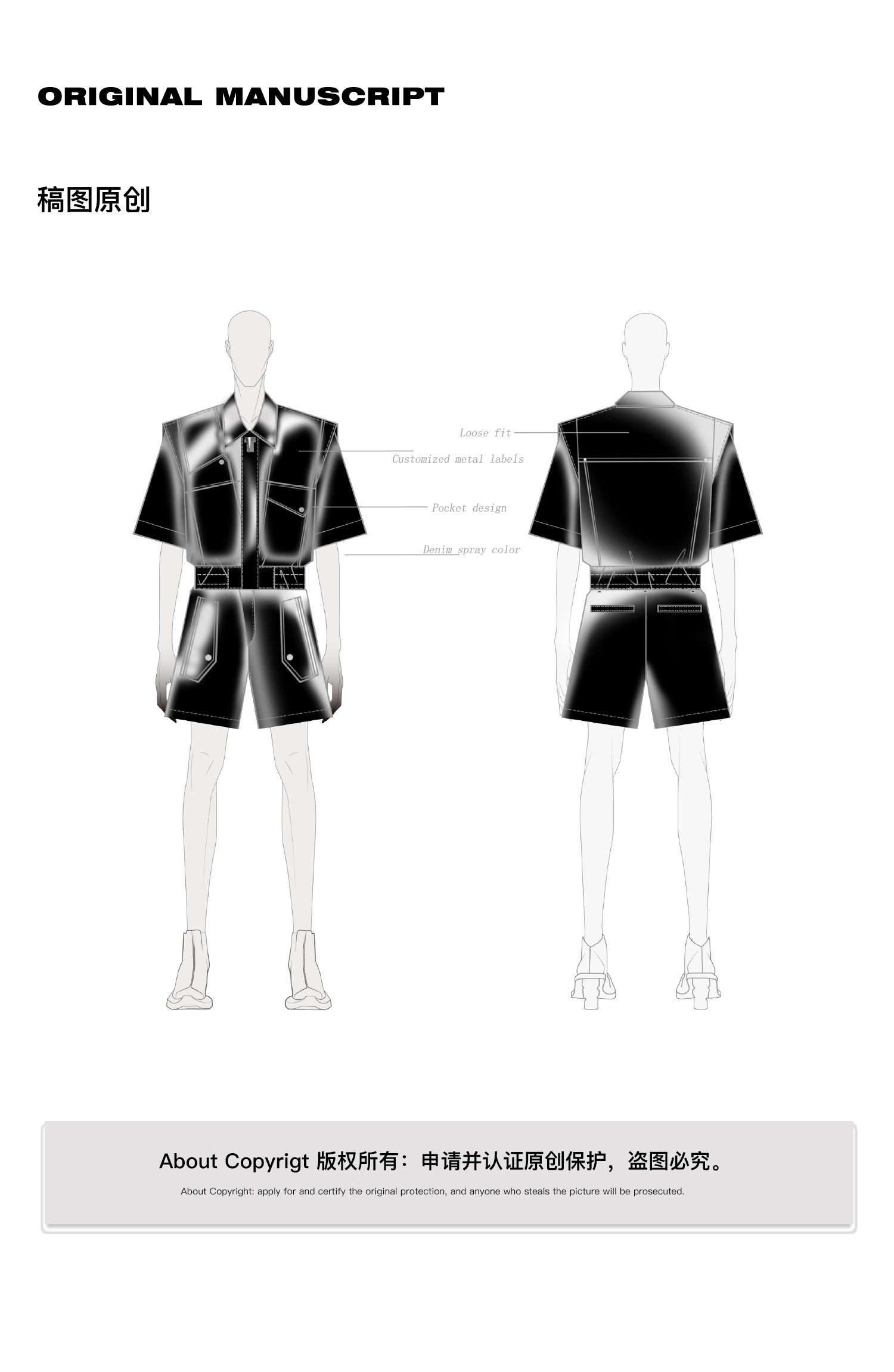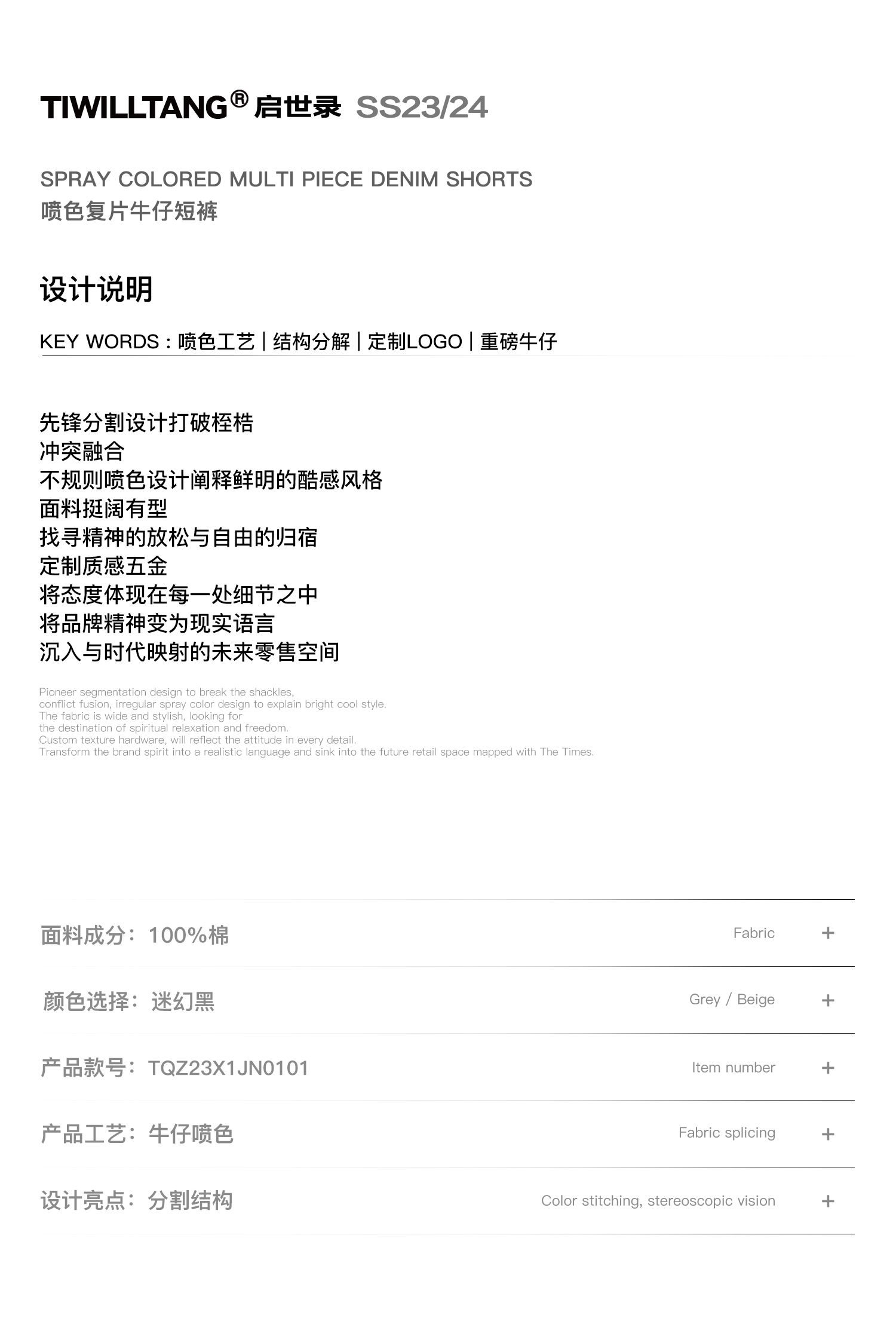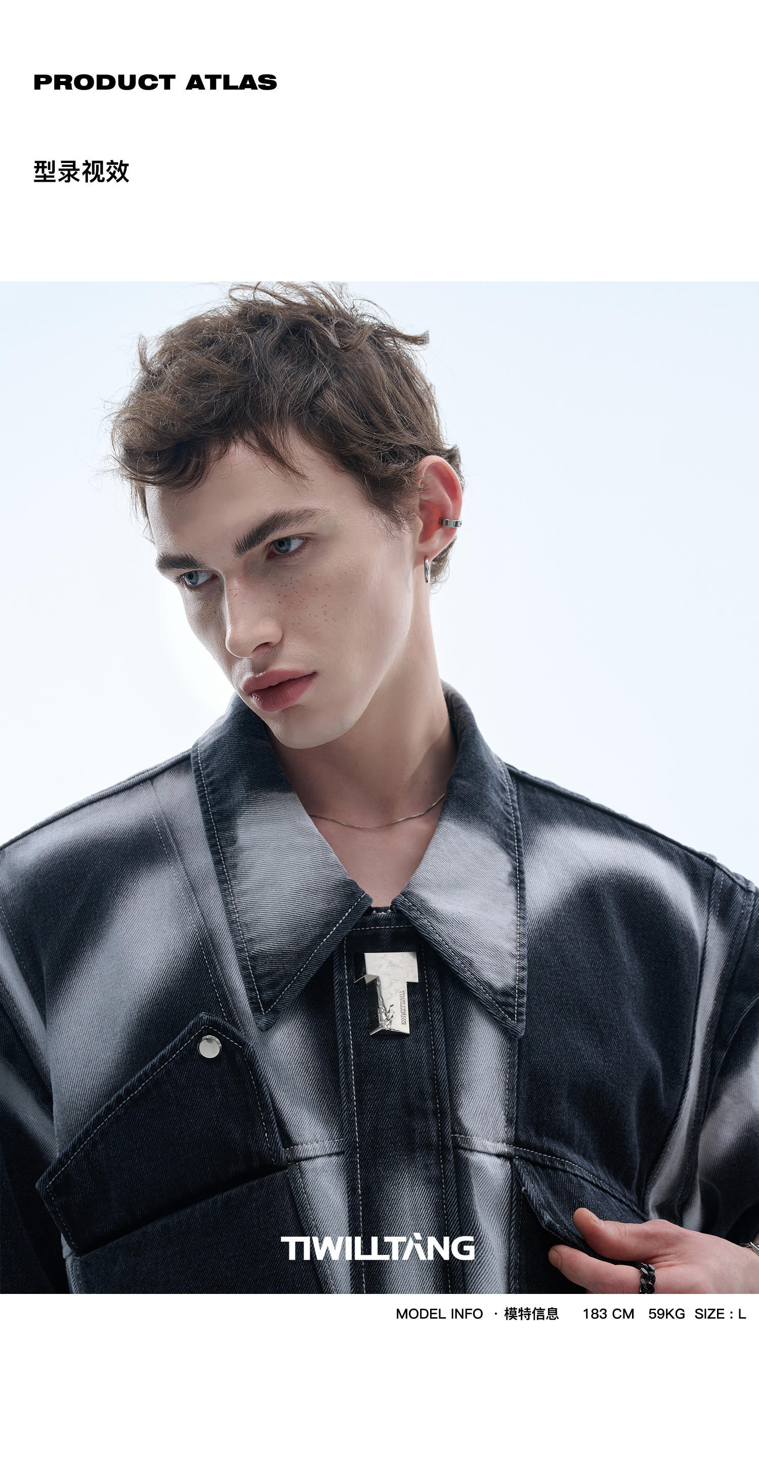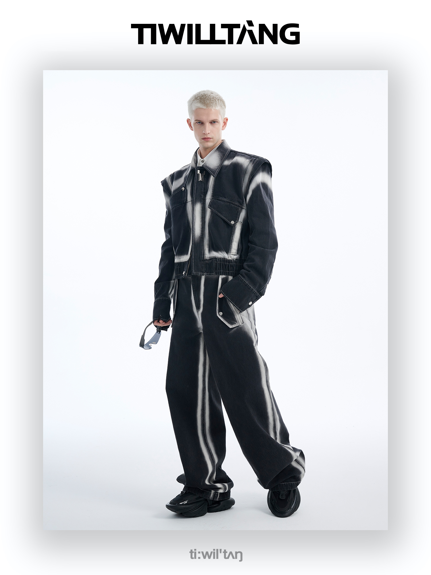 启世录TIWILLTANG明星同款"迷垣璇倪"喷色牛仔短袖夹克纯棉套装