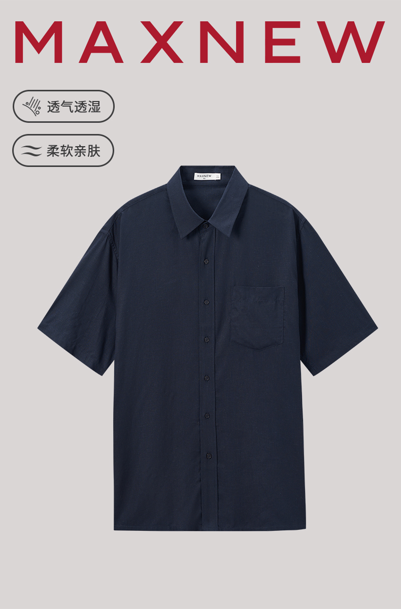 【衬衫】“国麻系列”柔软亲肤透气透湿翻领麻感衬衫 1N2111305