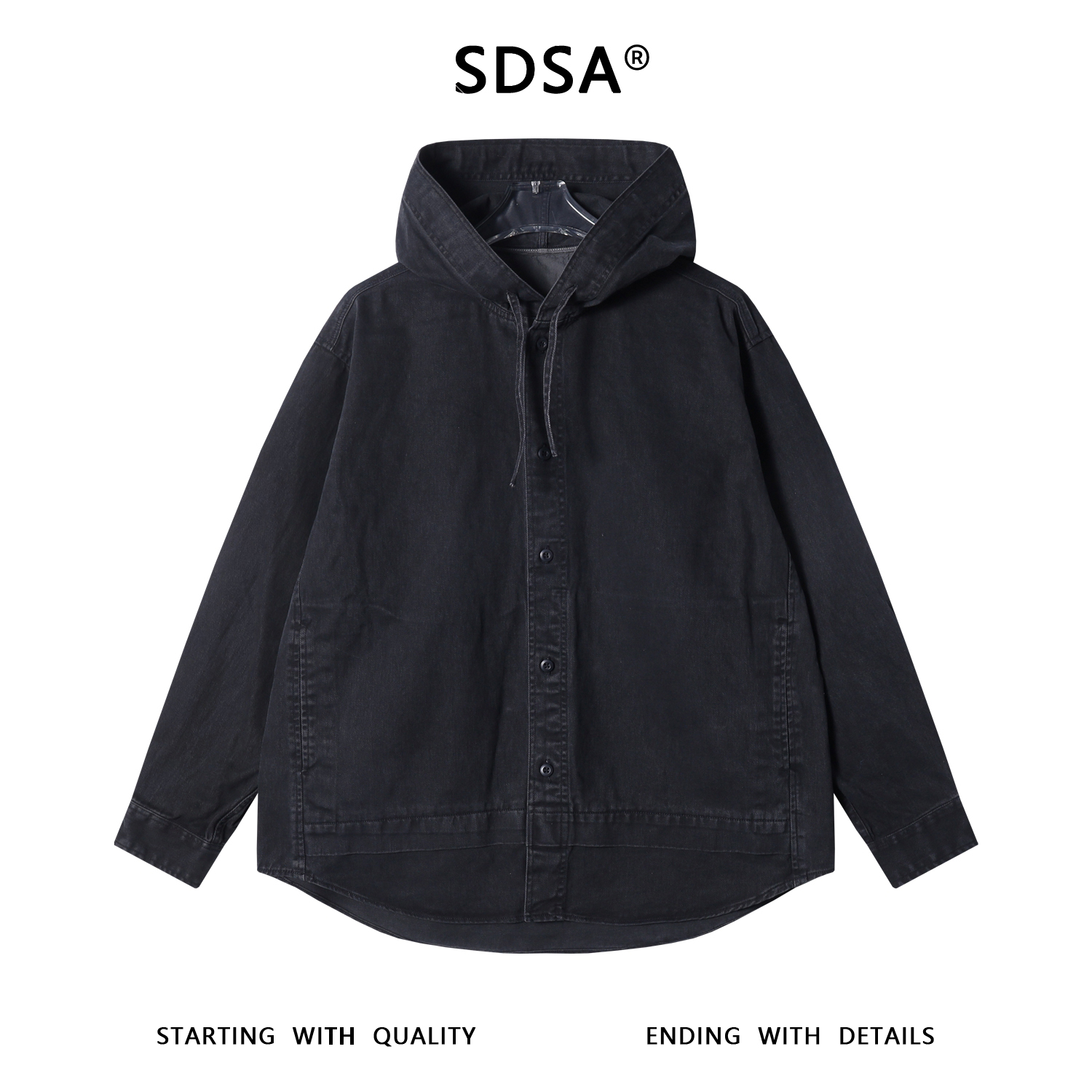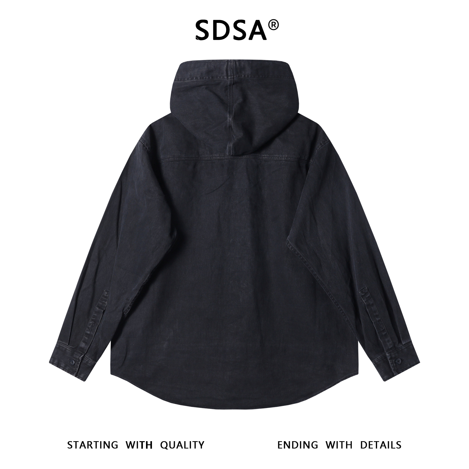 252220SDSA秋冬新款痞帅男装极简风纯色抽绳连帽纽衬衫百搭时尚开衫衬衣
