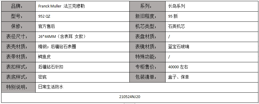 【95新正品】Franck Muller 法兰克穆勒长岛系列精钢后镶钻石表圈26*44MM石英机芯女表952 QZ 210524NJ20