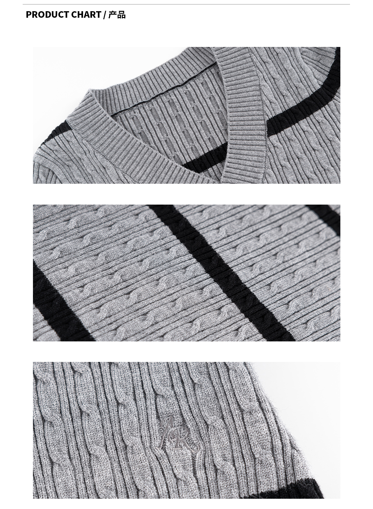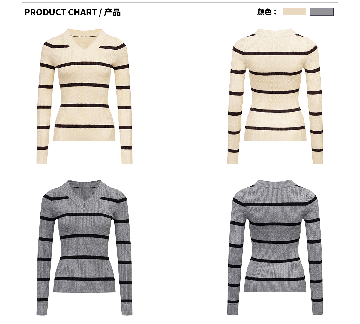 Ariseism 美式复古双色条纹长袖套头毛衣女秋季新款修身上衣