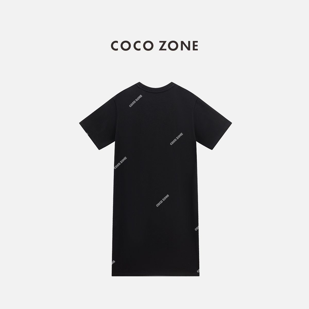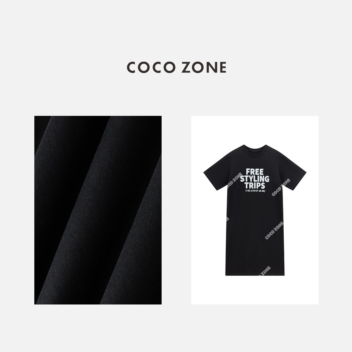 COCO ZONE 100棉设计感连衣裙字母印花气质长裙CC2C1251