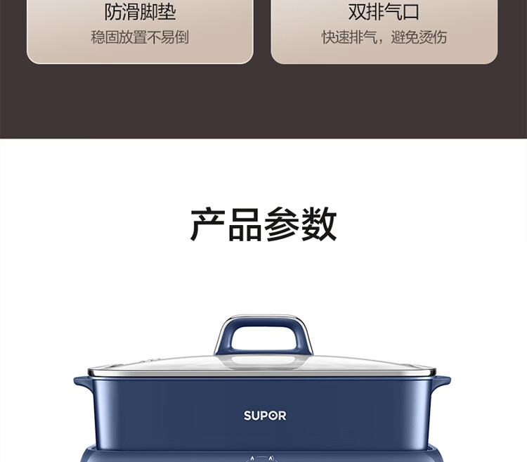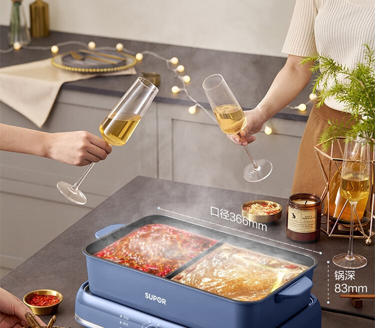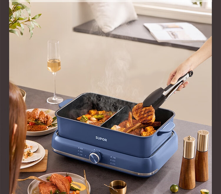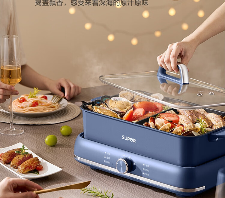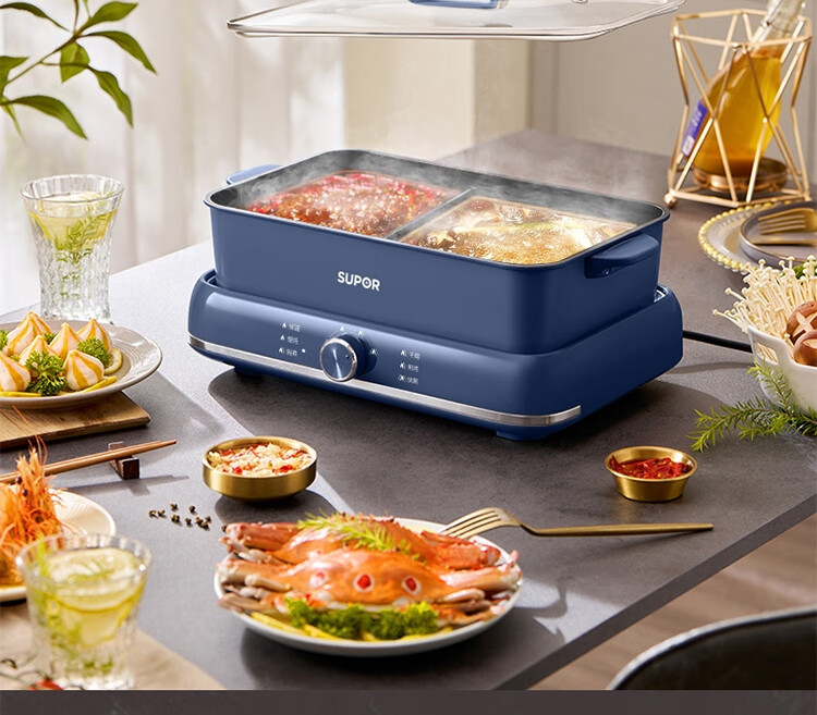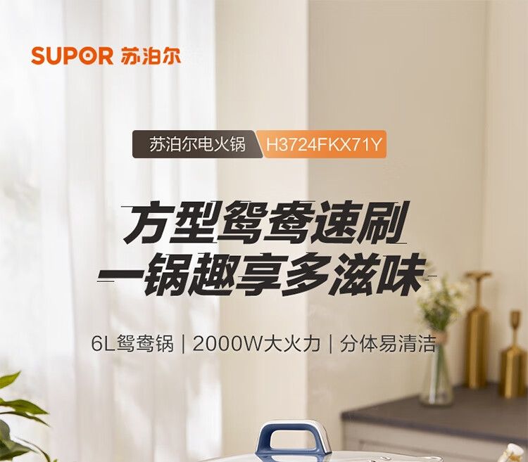 苏泊尔(SUPOR)ZMD安心系列 6L鸳鸯电火锅 炖煮涮焗 2000W大火力 3档调节 可分离锅身 不粘电火锅H3724FKX71Y