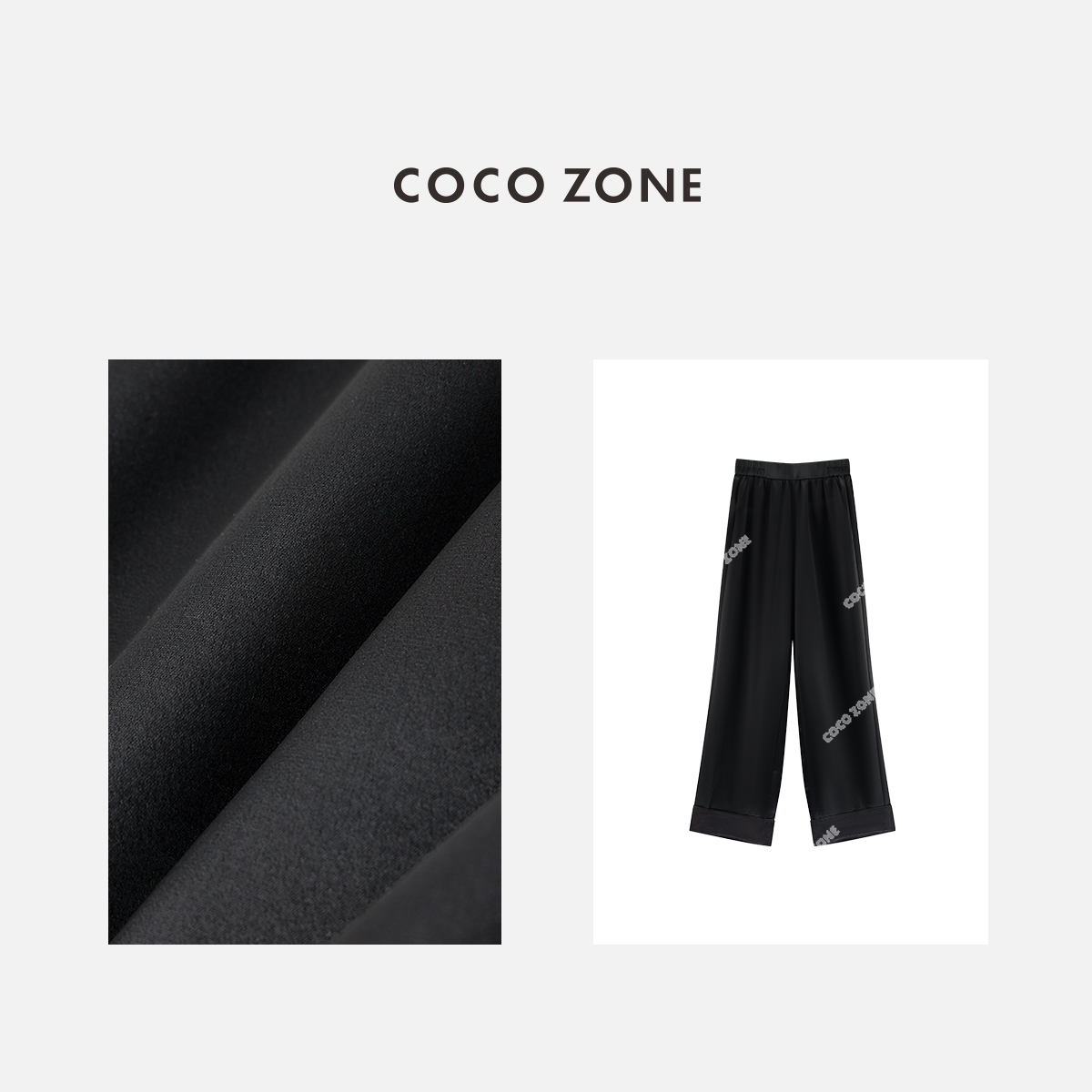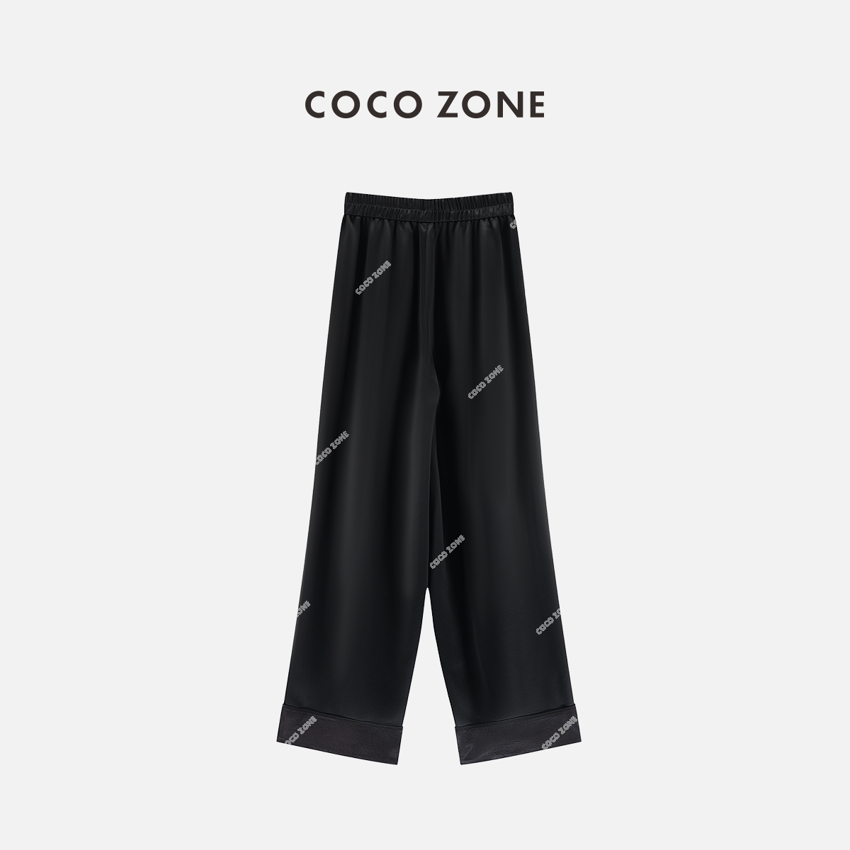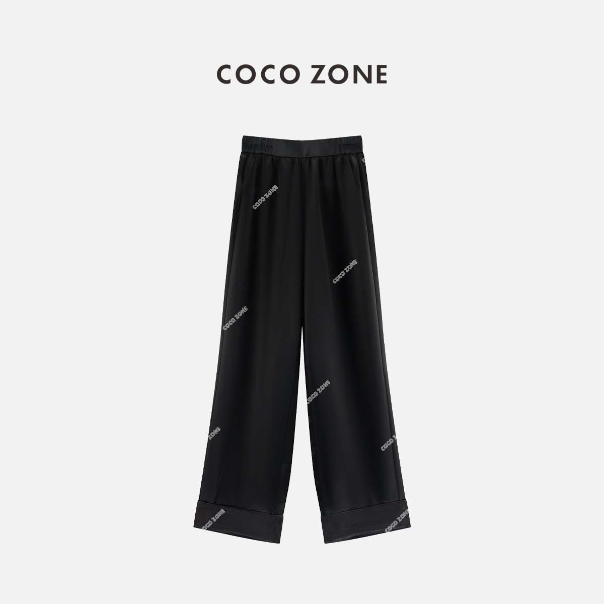 COCO ZONE新中式拼接休闲裤国风松紧腰直筒阔腿裤CC1A0417