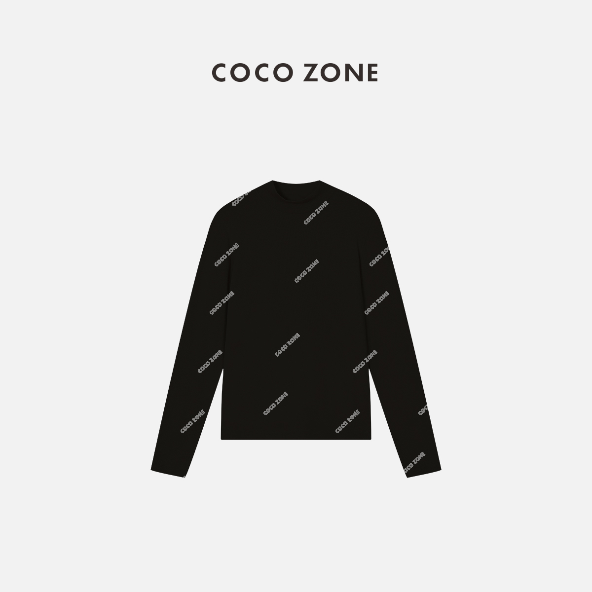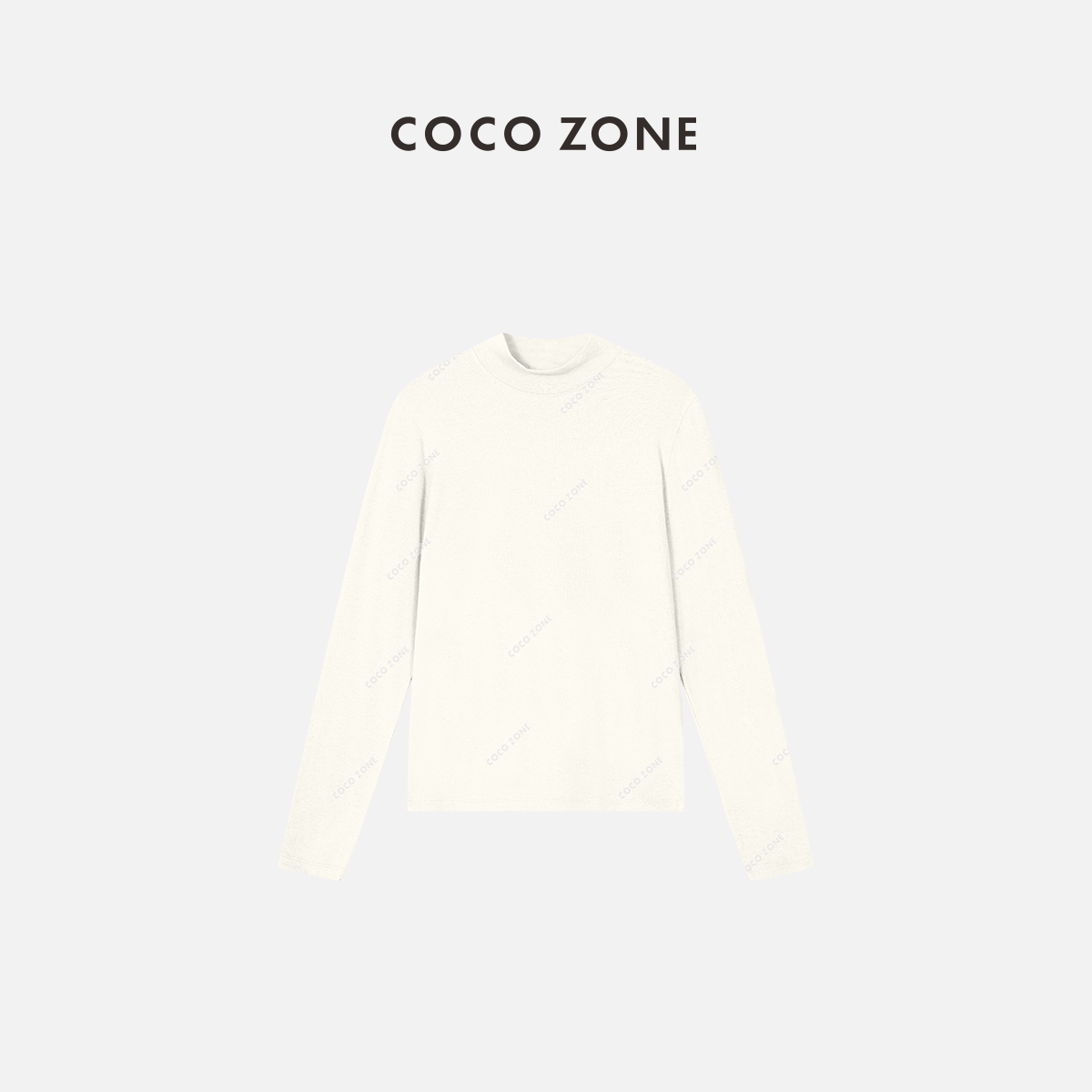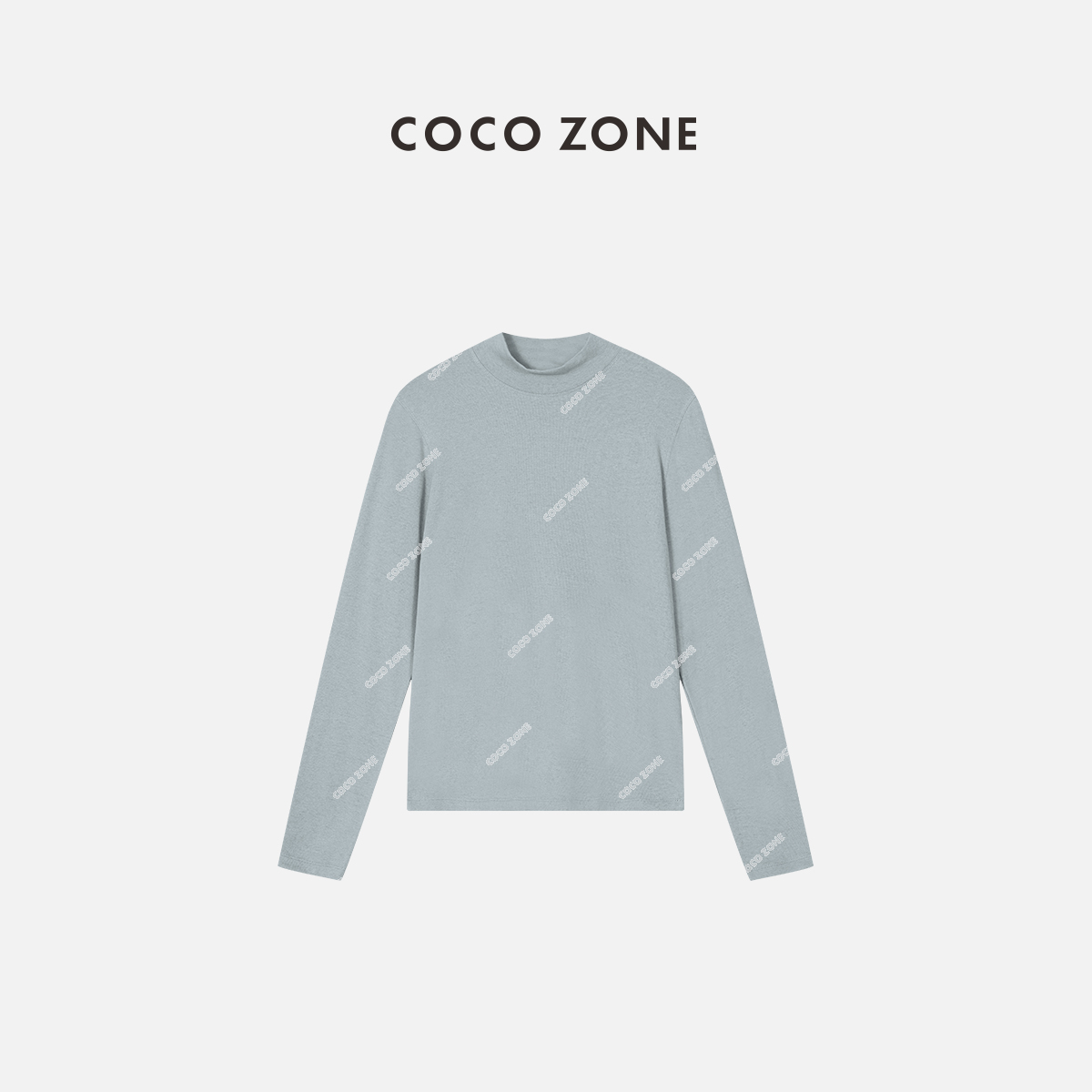 COCO ZONE小立领长袖上衣宽圆领打底衫内搭T恤 23C29943