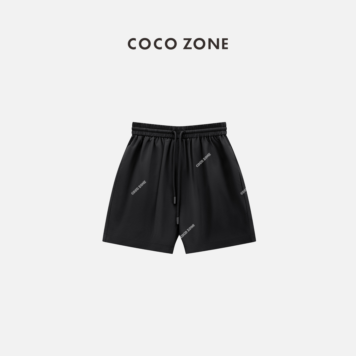 COCO ZONE时尚纯色松紧腰抽绳短裤百搭直筒阔腿运动裤CC1B1056