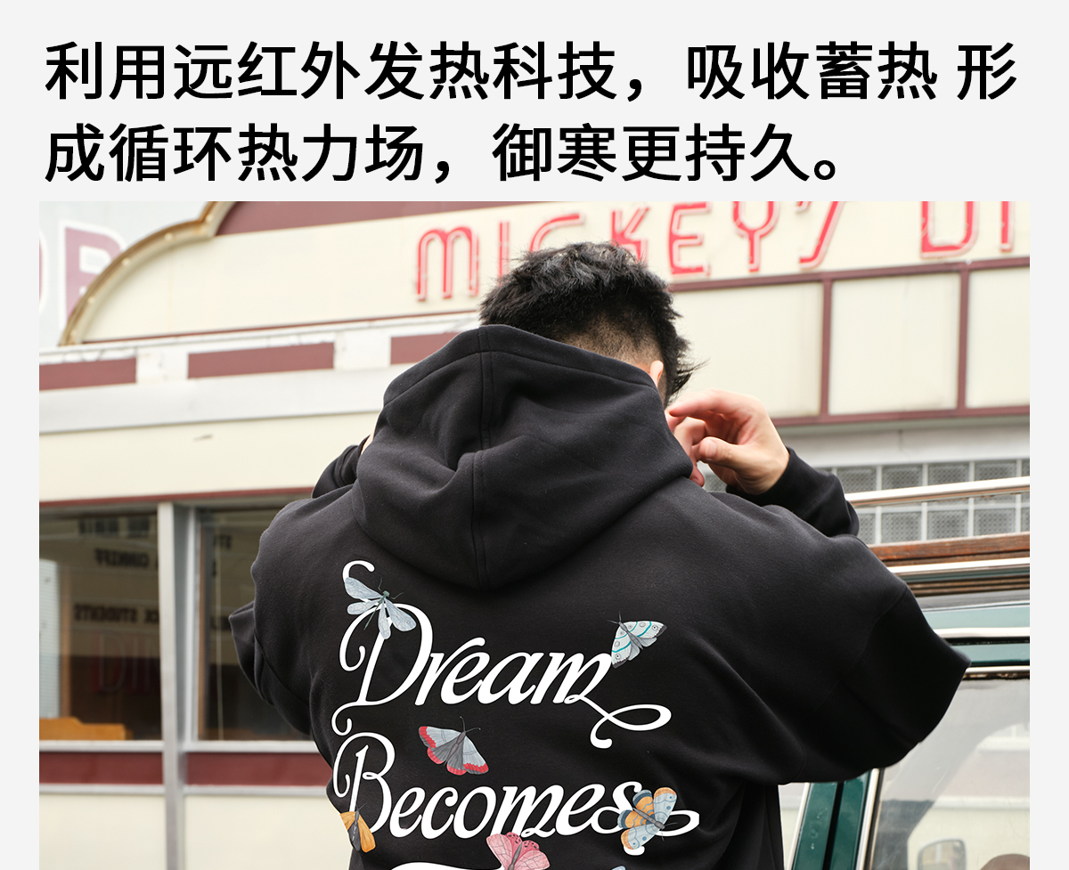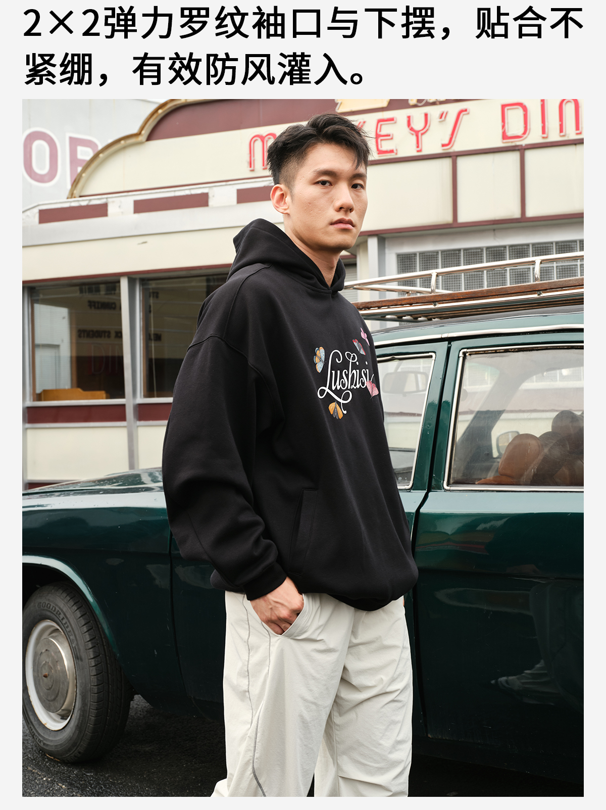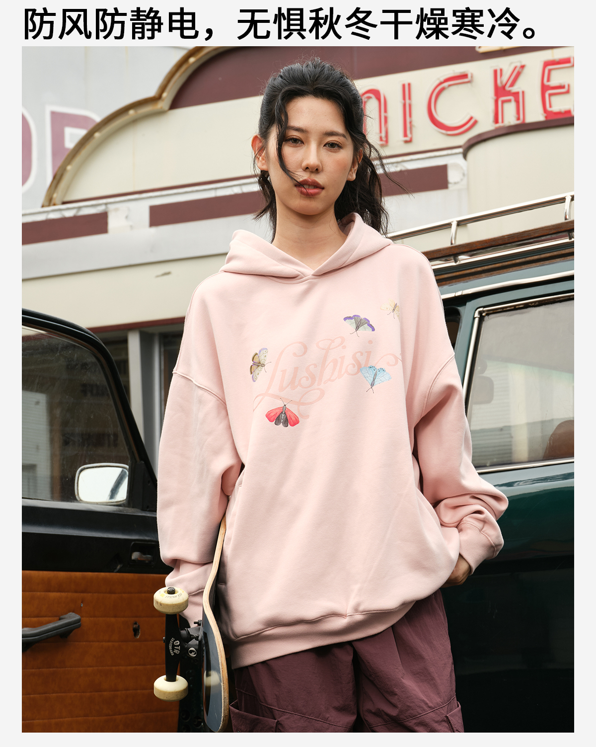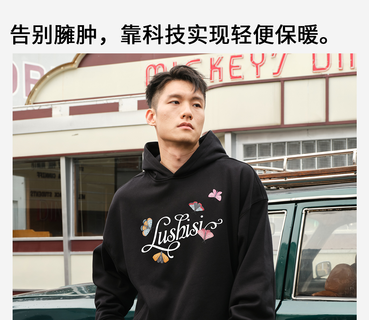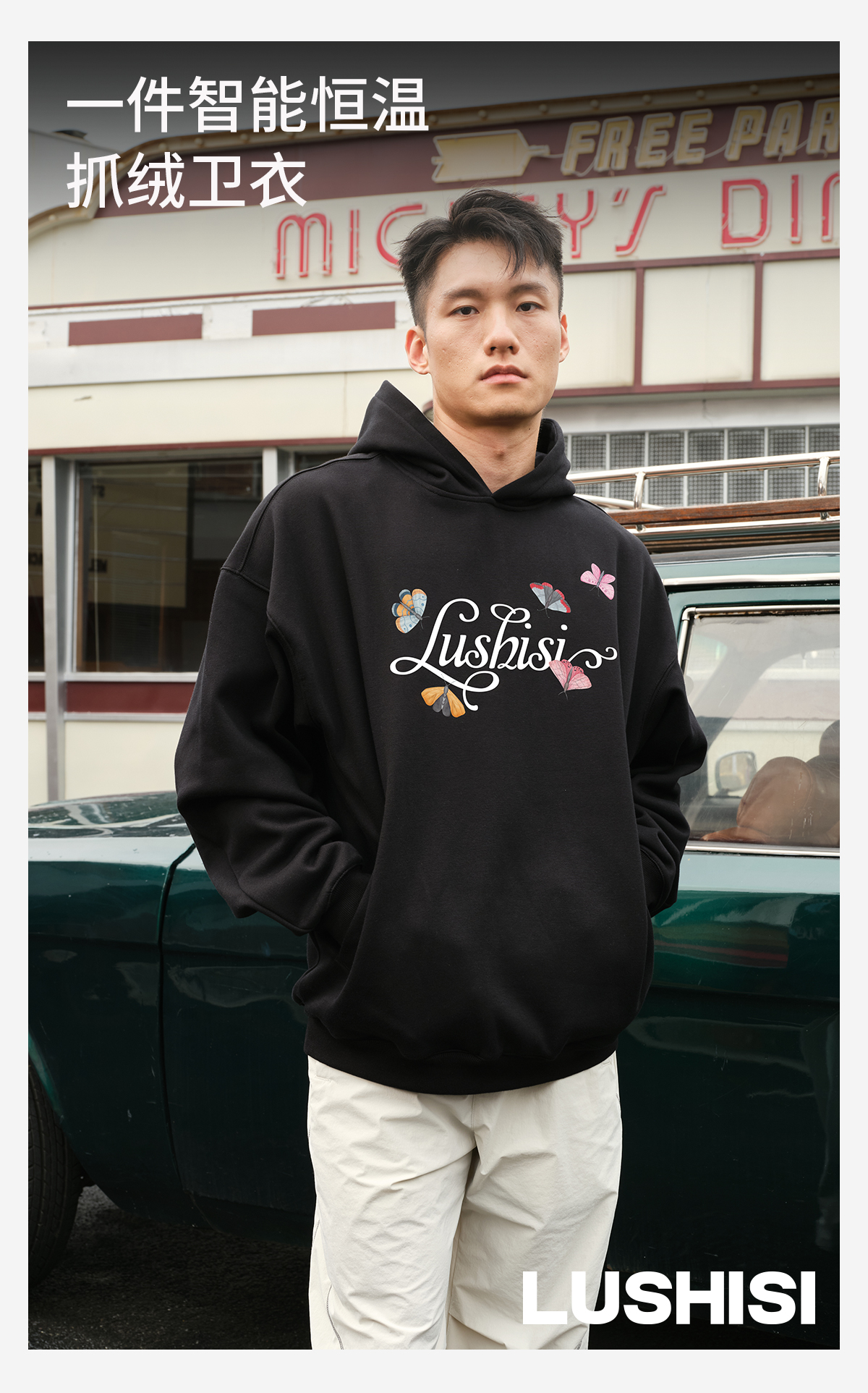 录士LUSHISI自然之翼卫衣抓绒恒温保暖连帽潮流宽松情侣宽松卫衣