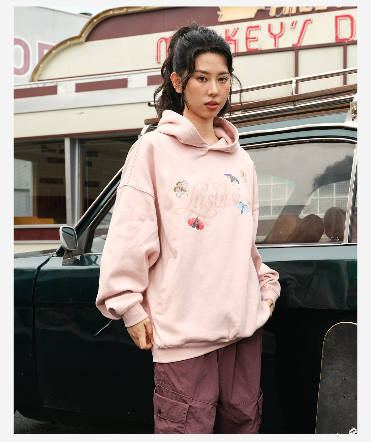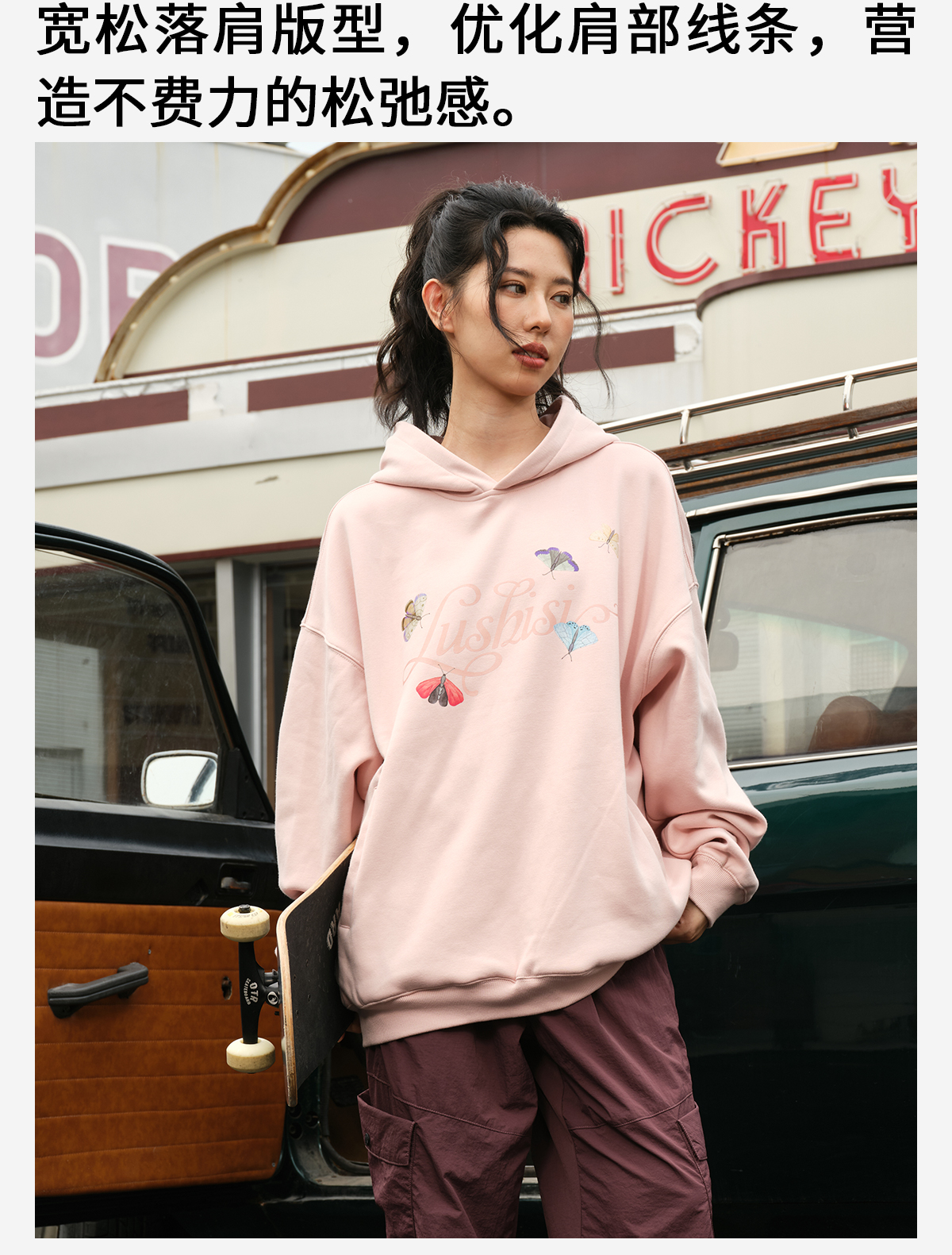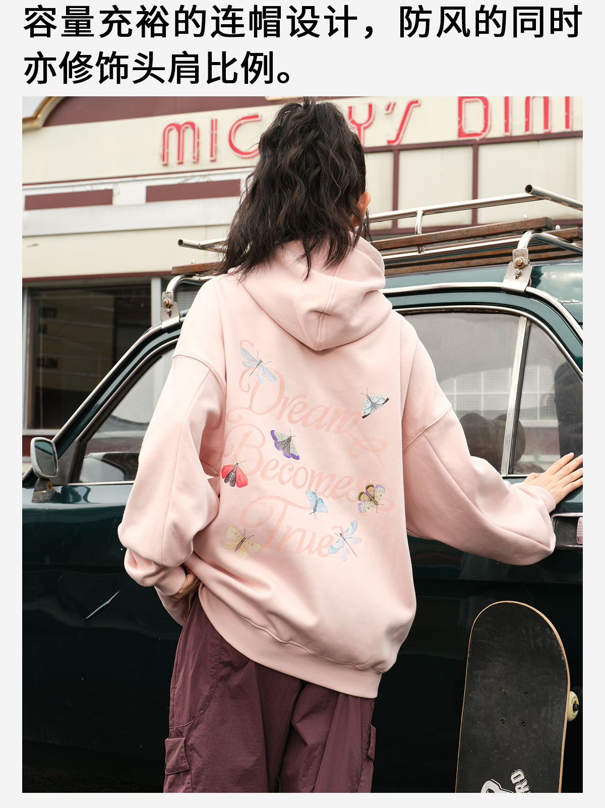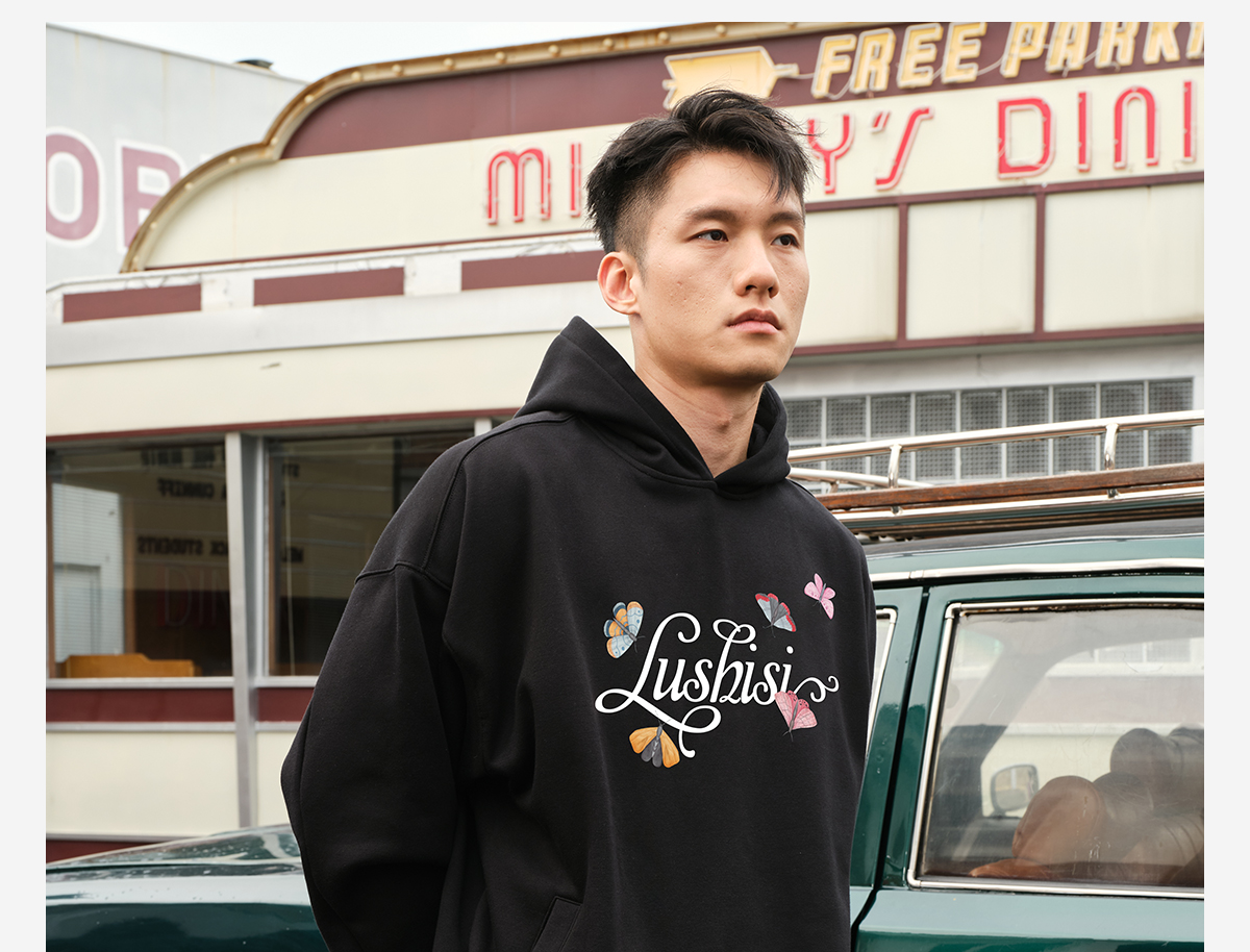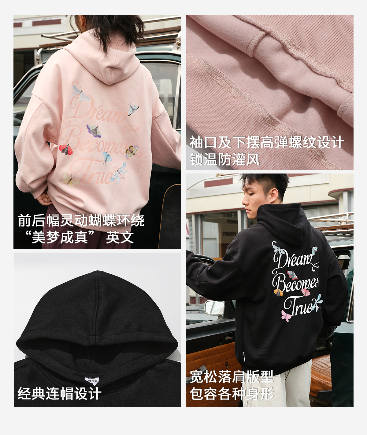 录士LUSHISI自然之翼卫衣抓绒恒温保暖连帽潮流宽松情侣宽松卫衣