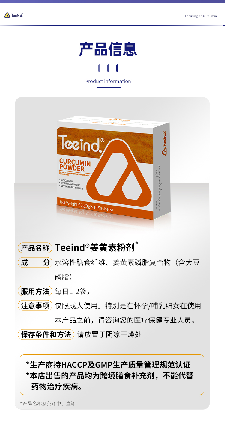 【三件更优惠】TEEIND姜之宝姜黄素30g/盒(10条装)