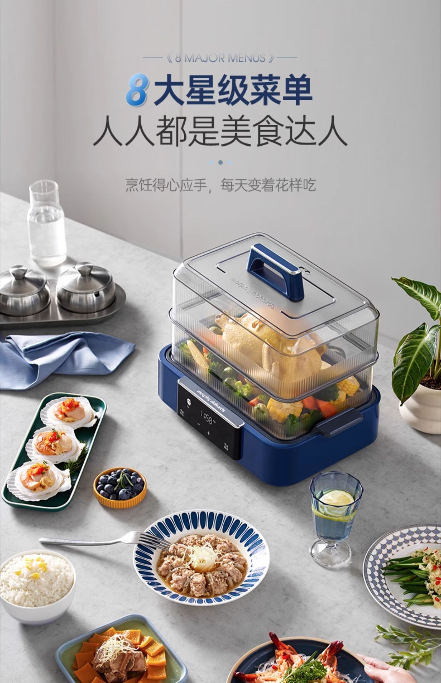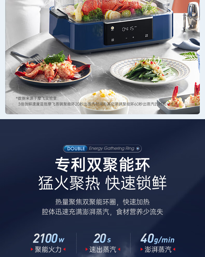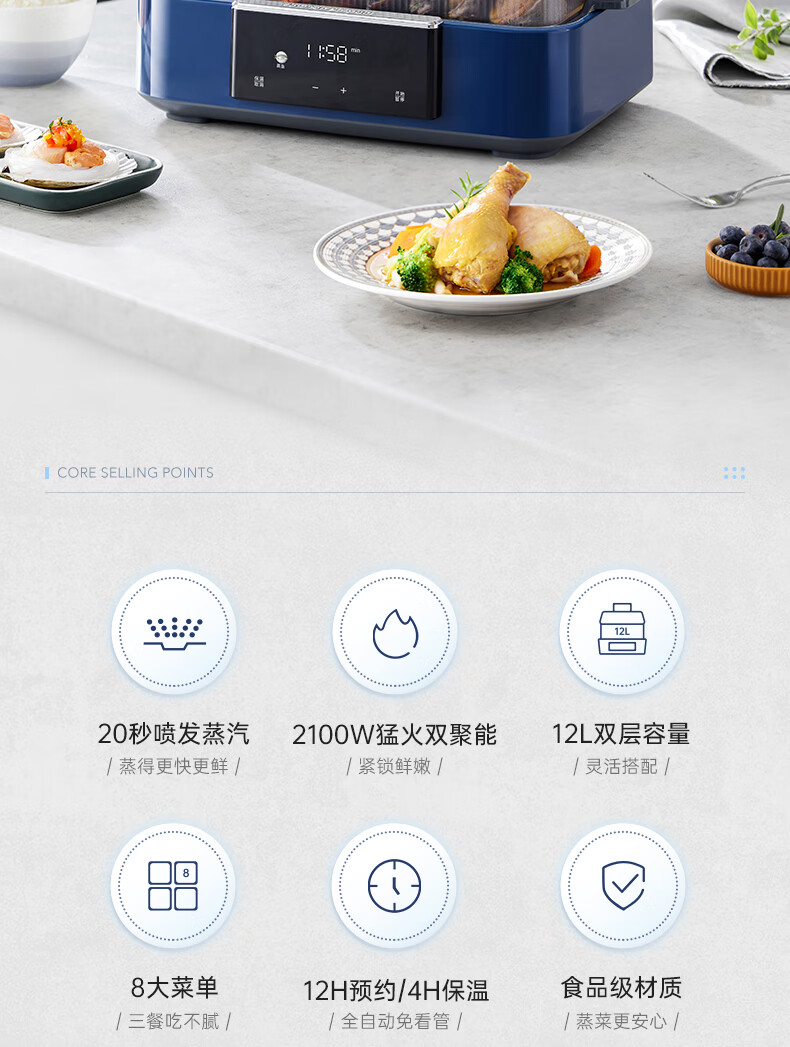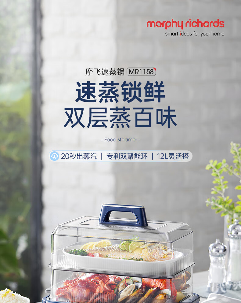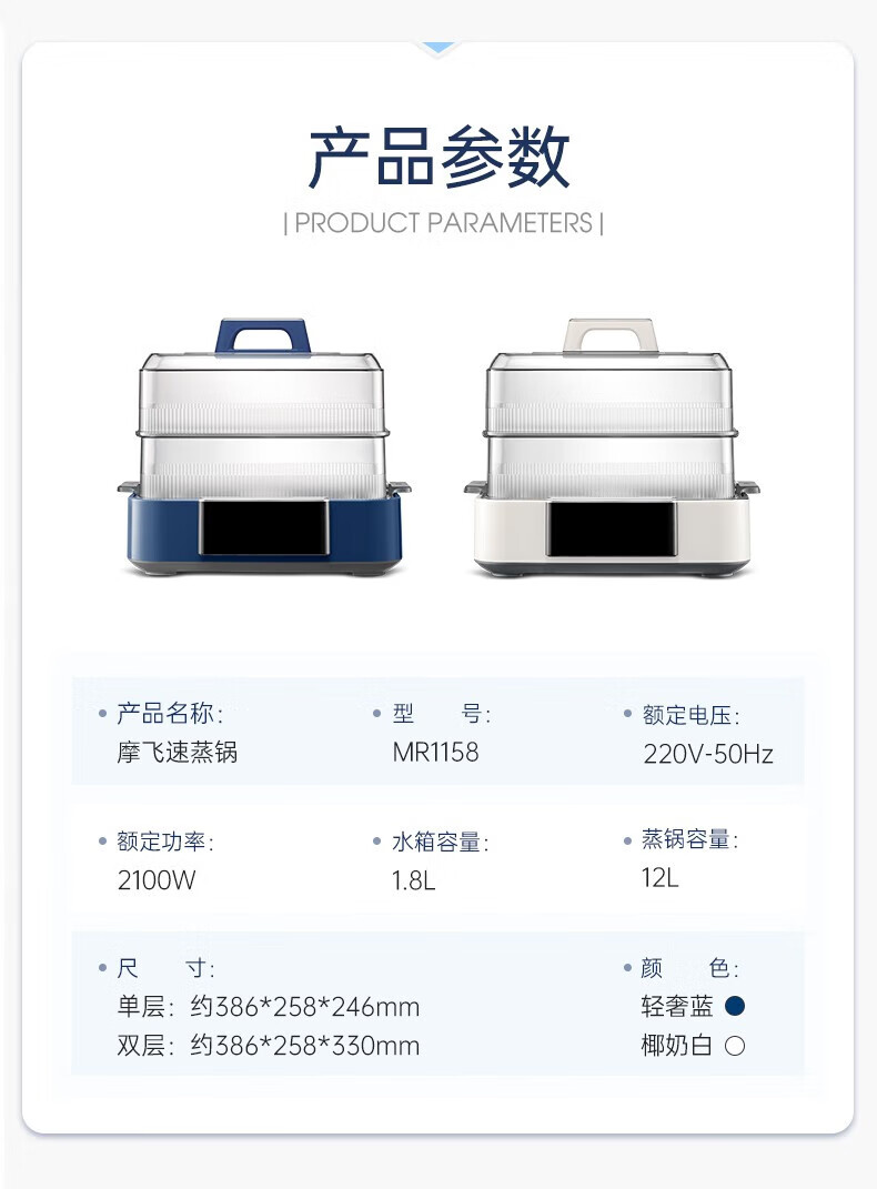 摩飞 预约保温12L极速蒸锅MR1158 蓝色