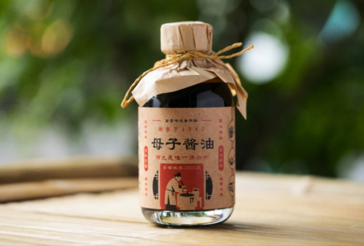 母子酱油酱香浓郁,味鲜美、醇厚,鲜、甜、咸适口,体态浓稠却不粘,红褐色且有光泽,乃调味之上品。