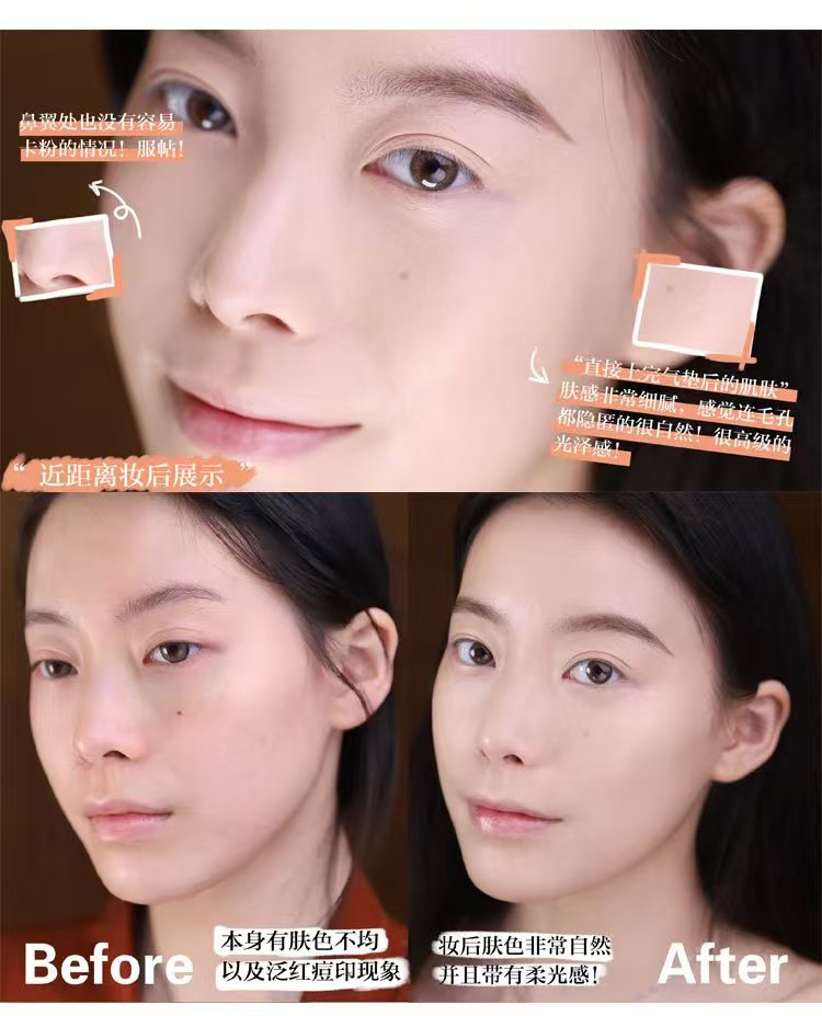 在画底妆的同时能深层滋养你的肌肤,是干皮爱的奶油水光肌。走轻薄妆效但是遮瑕力又超赞,粉质细腻滋润不油腻,肌肤贴合度很高,不搓泥不卡纹,简直干皮救星!