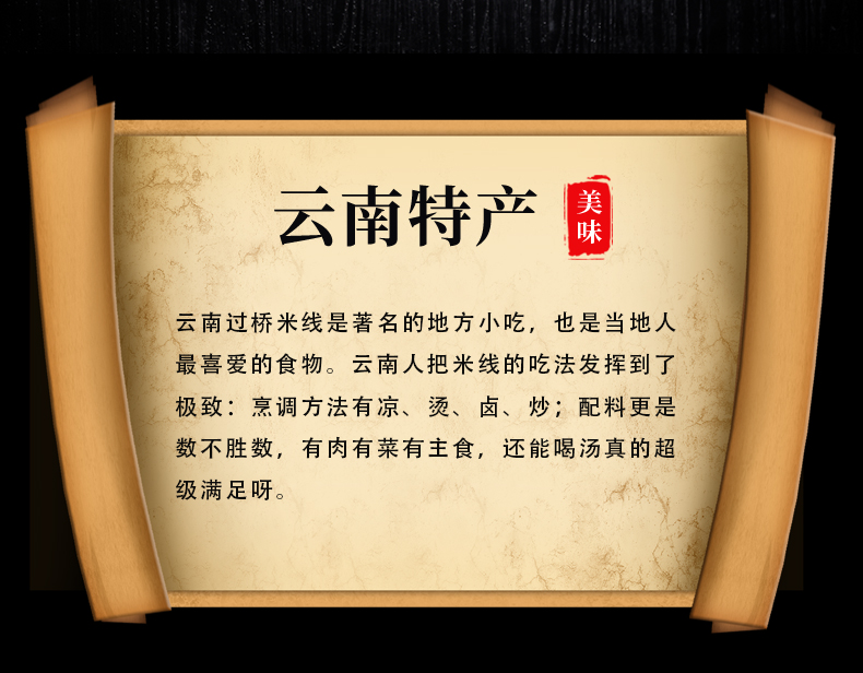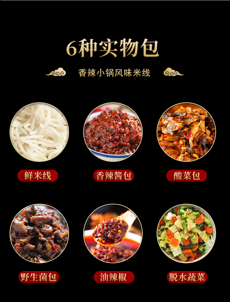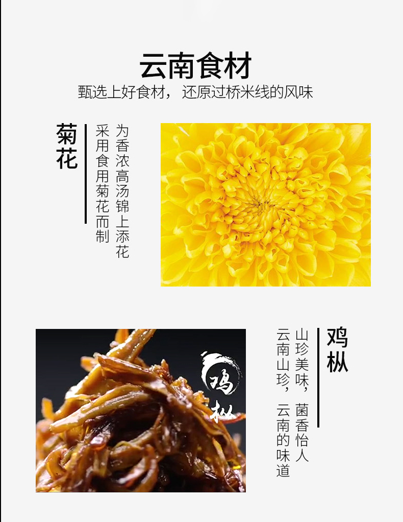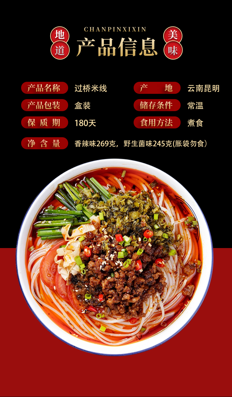 品名:云南过桥米线规格1:野生菌土鸡风味4盒装(245克/盒) 规格2:香辣小锅风味4盒装(245克/盒) 规格3:野生菌土鸡/香辣小锅各2盒 包装方式:盒装 快递:中通/韵达 运费模板:新疆、西藏、港澳台不发,北京、上海+1, 内蒙+5元 发货时效:48-72h 发货地/产地:云南昆明 保质期:180天 生产日期:9月,随批次更新 销售售卖期:长期 周六周天、节假日除外,早上十点之前的订单是48小时发货 ,到货时间约为2-5天,请您耐心等待 |