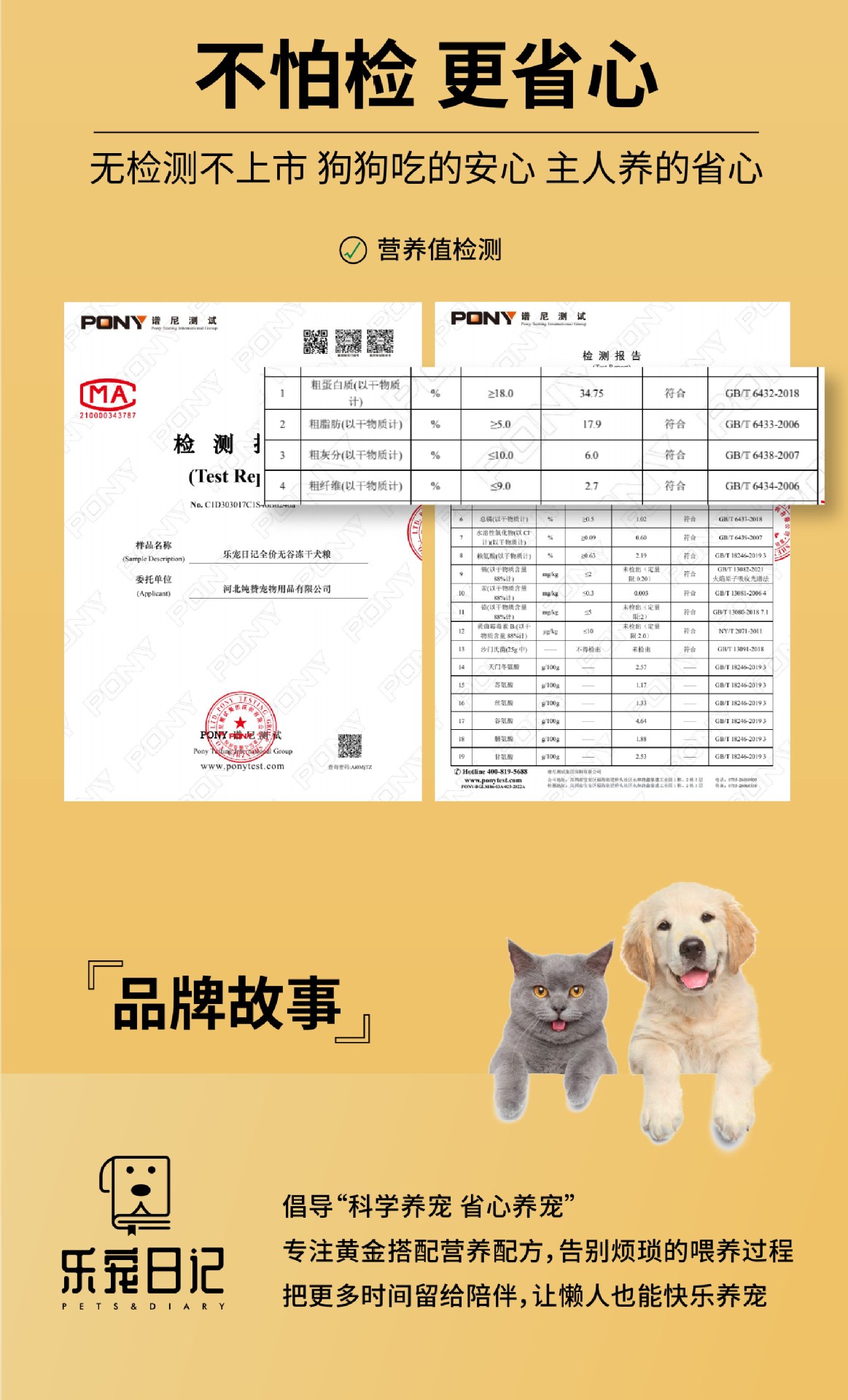 乐宠日记全价无谷冻干犬粮金毛泰迪哈士奇通用鲜肉狗粮高肉高蛋白 2.5kg(送火腿肠10支)