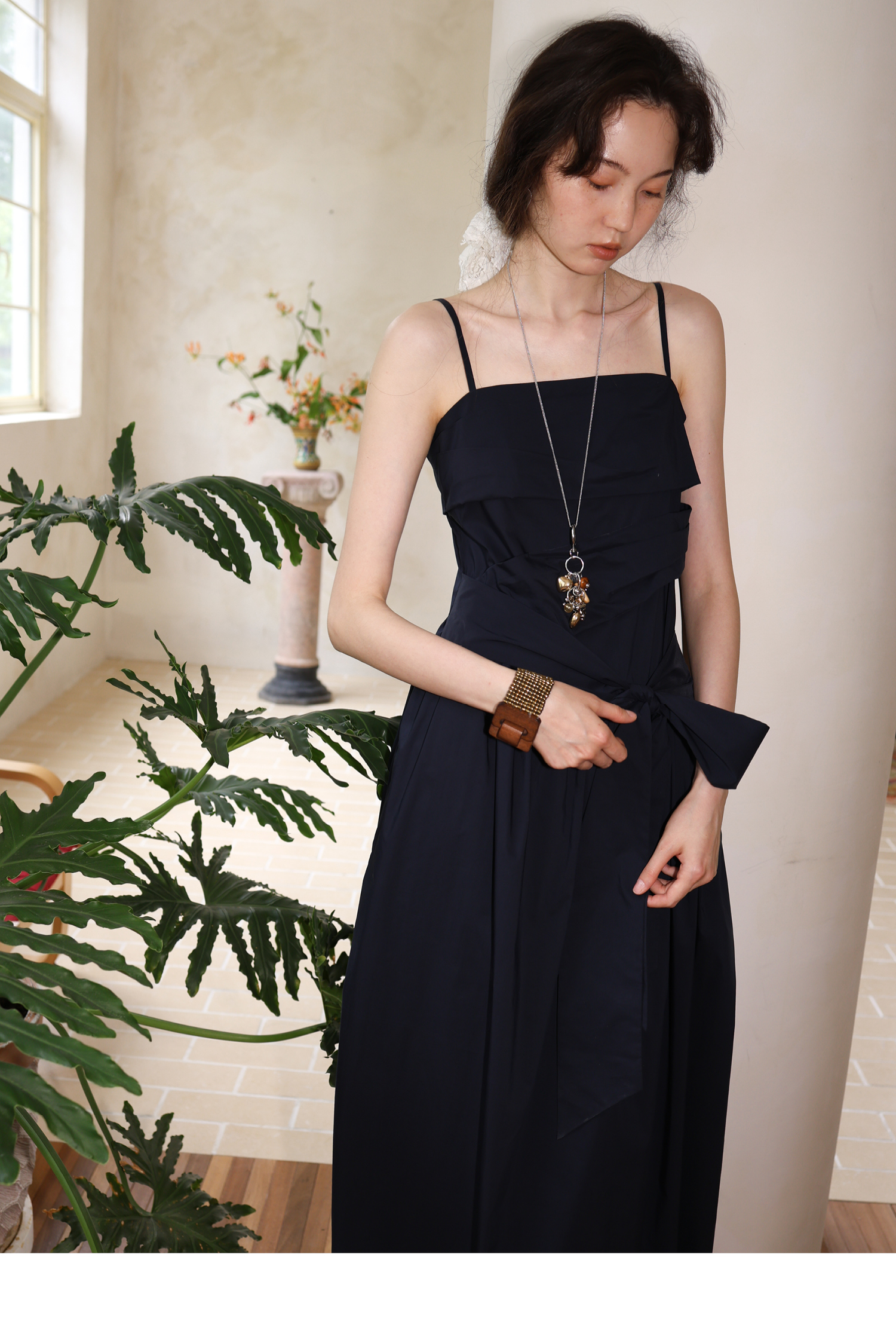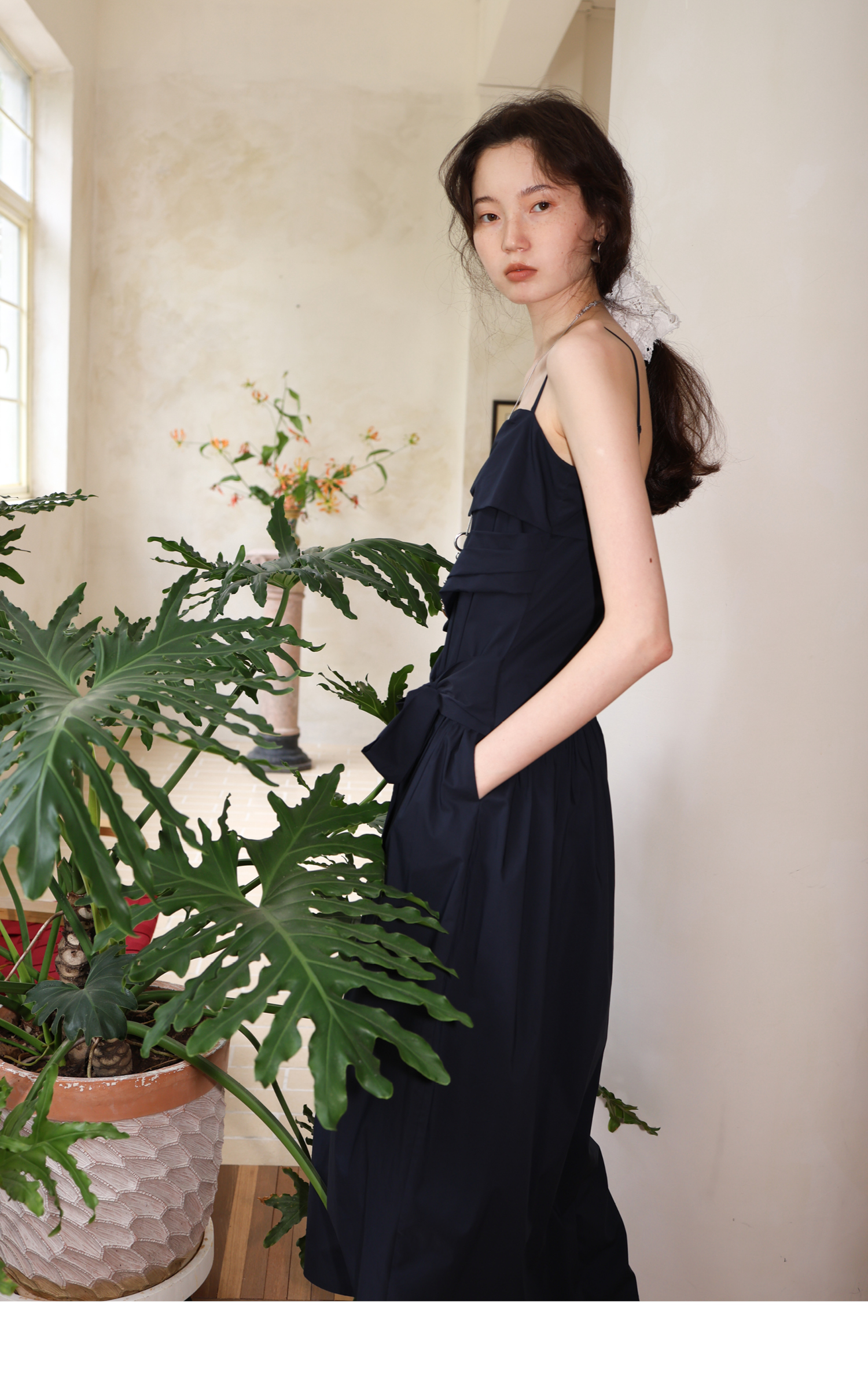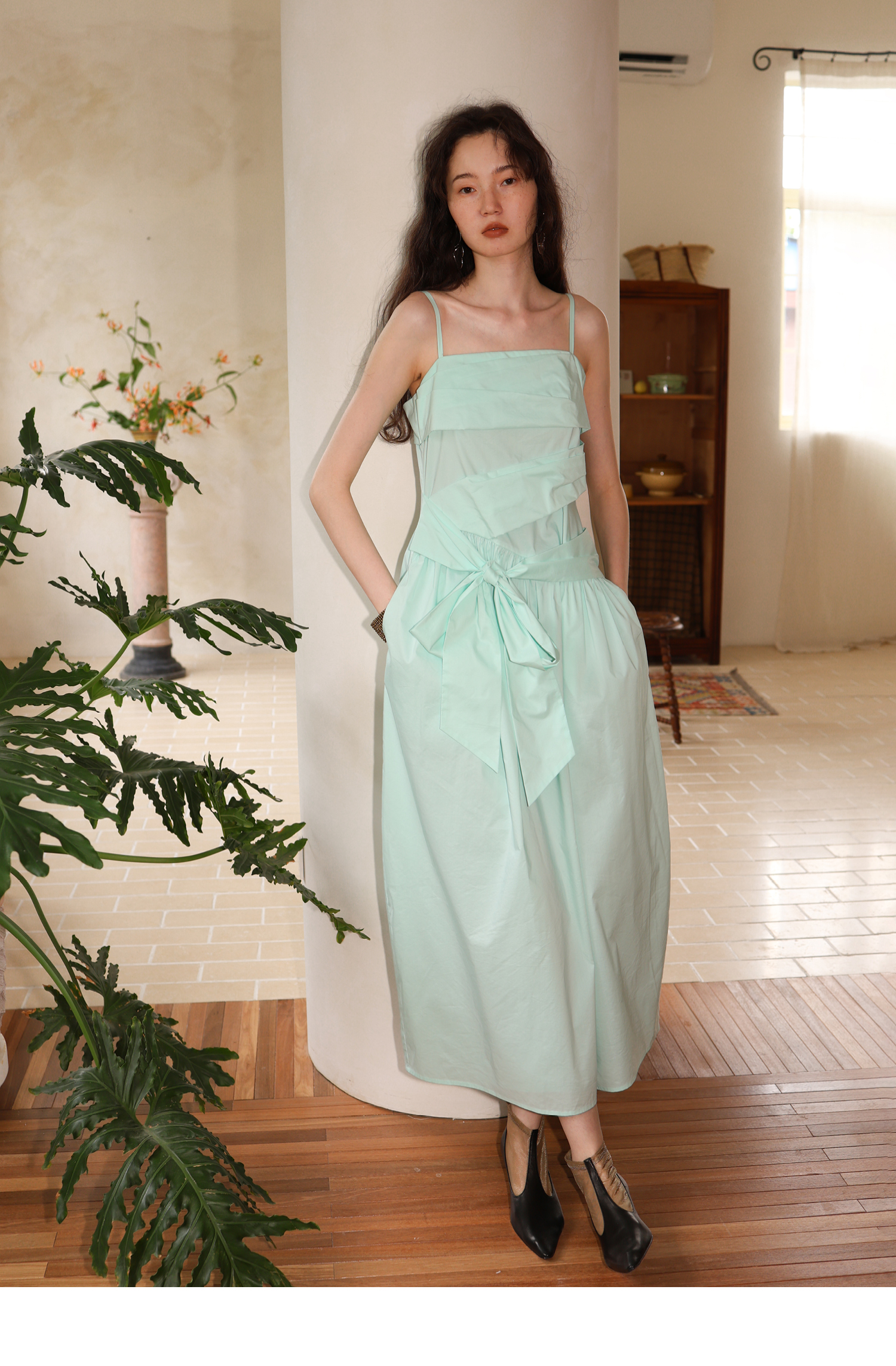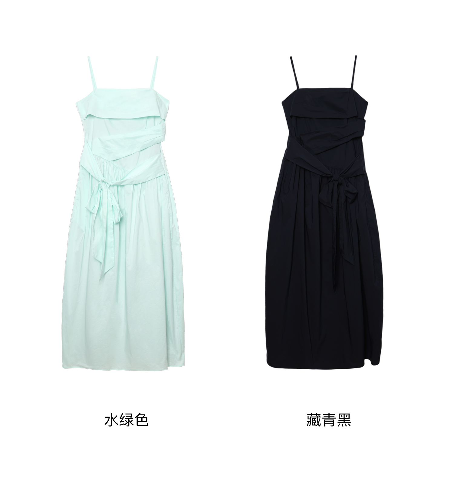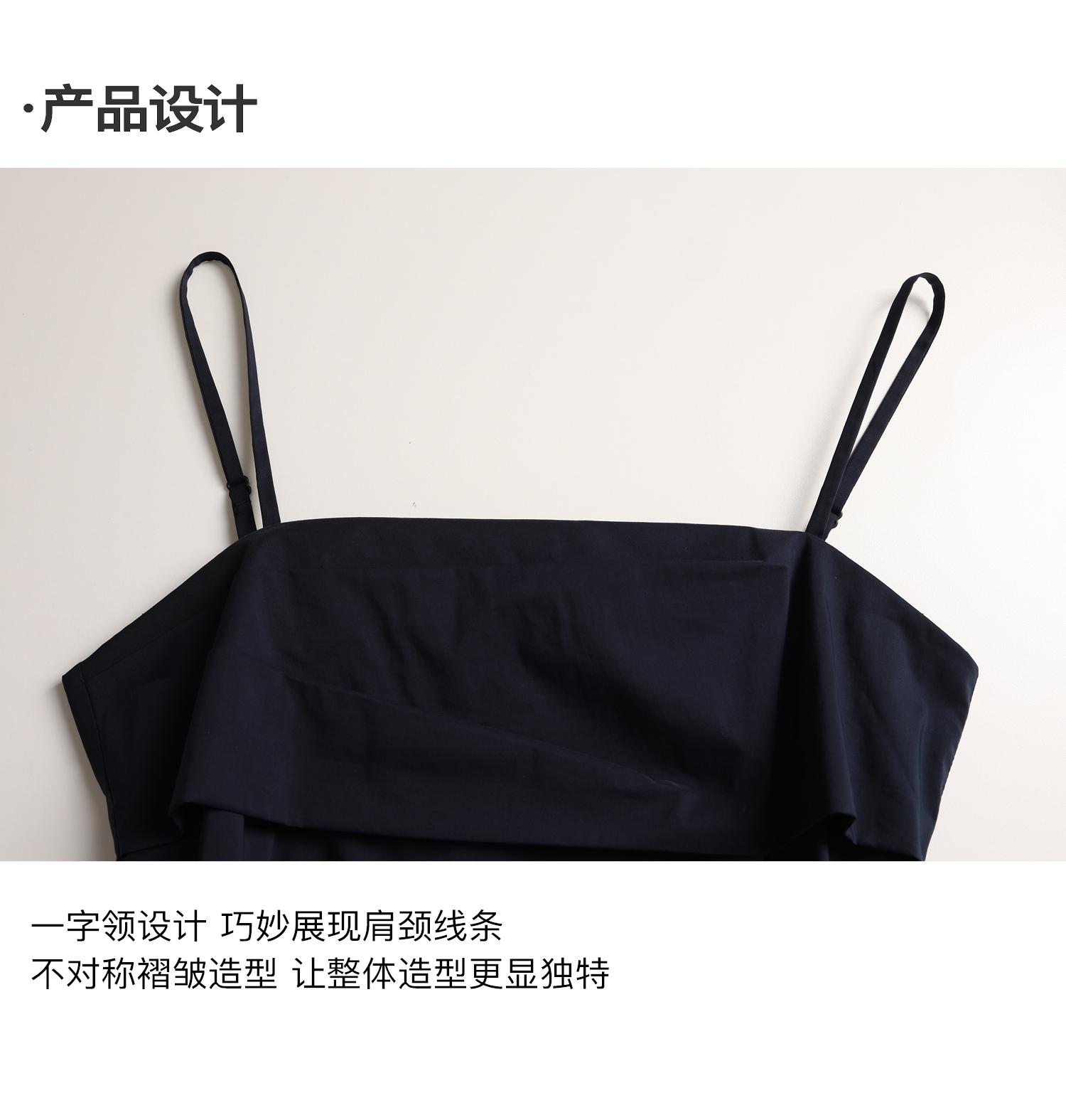 【6折不退换 买六免一】素舶 高支高密棉感不对称褶皱收腰花苞吊带连衣裙