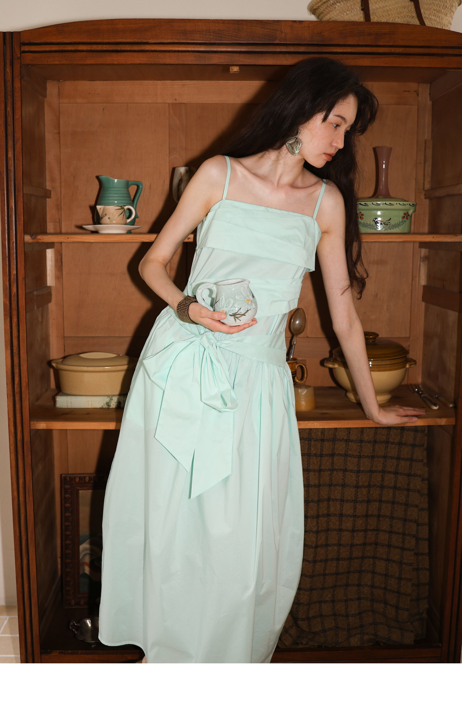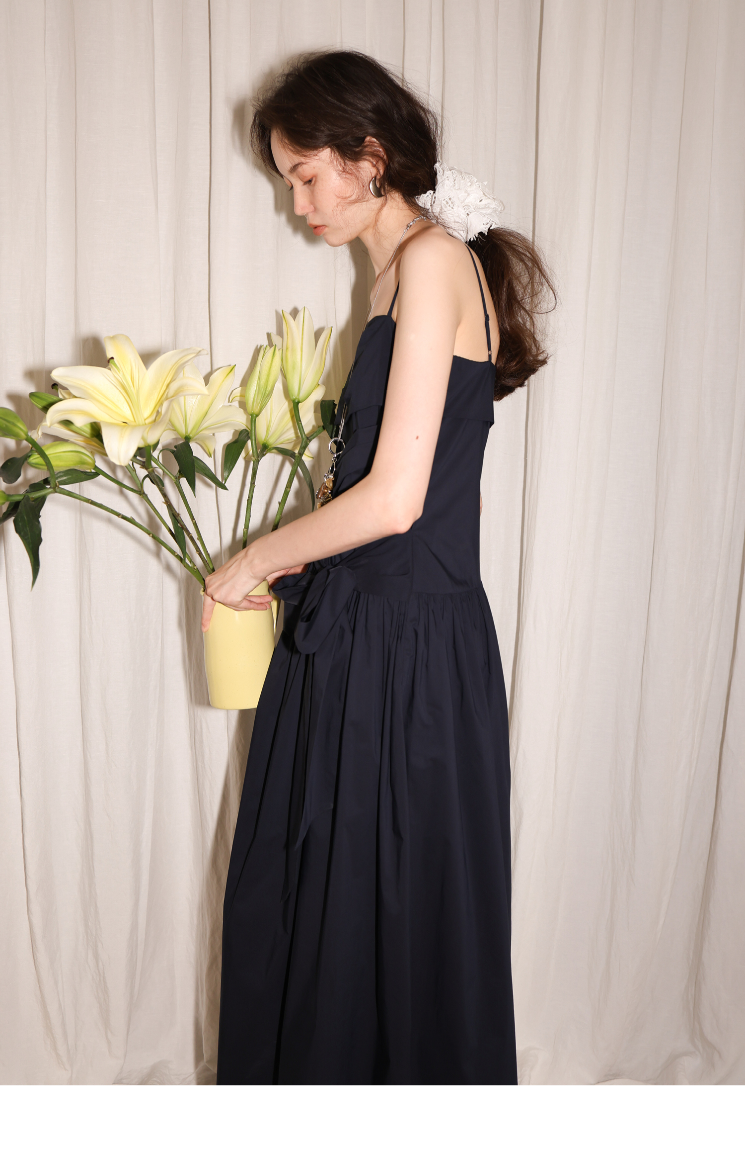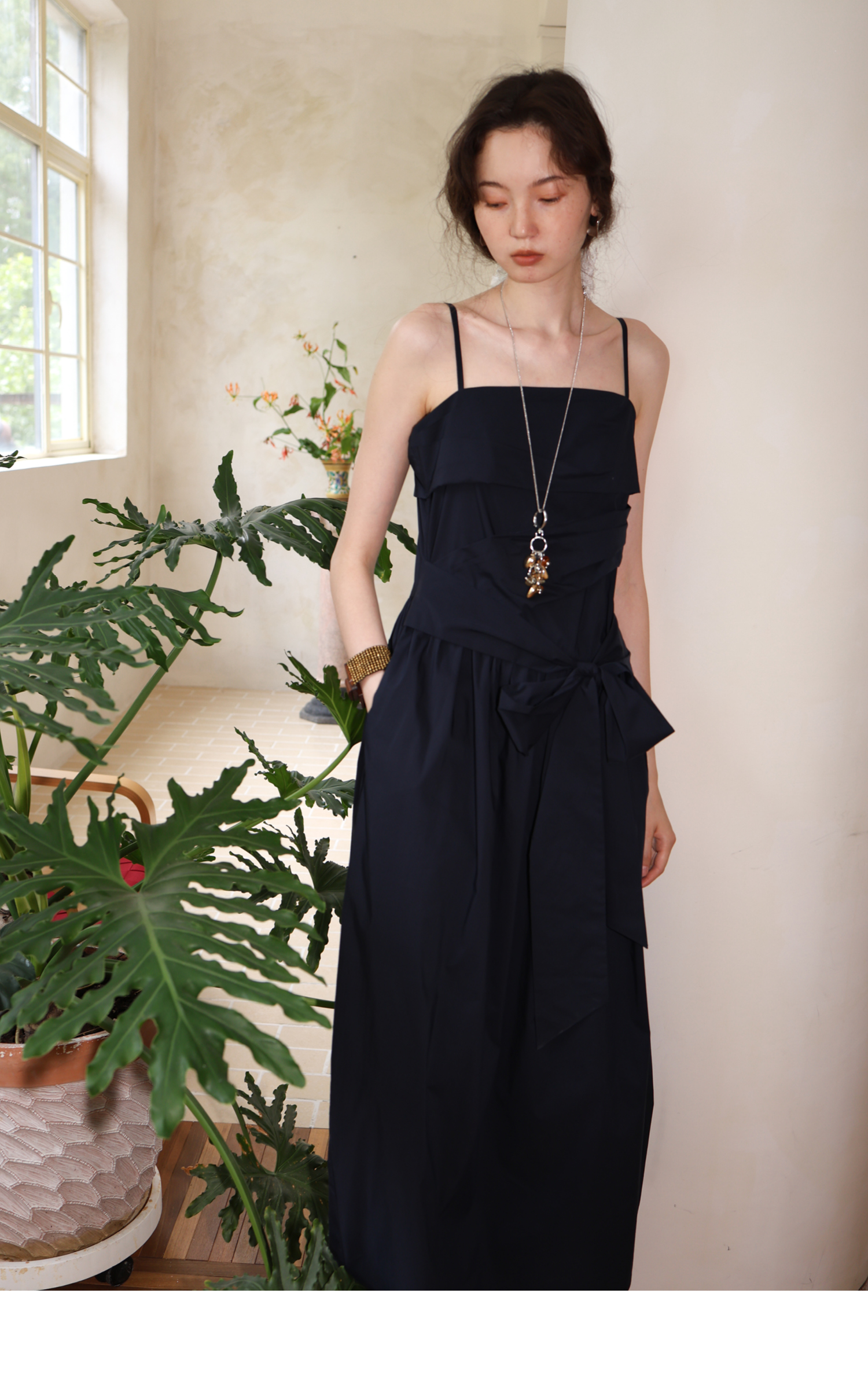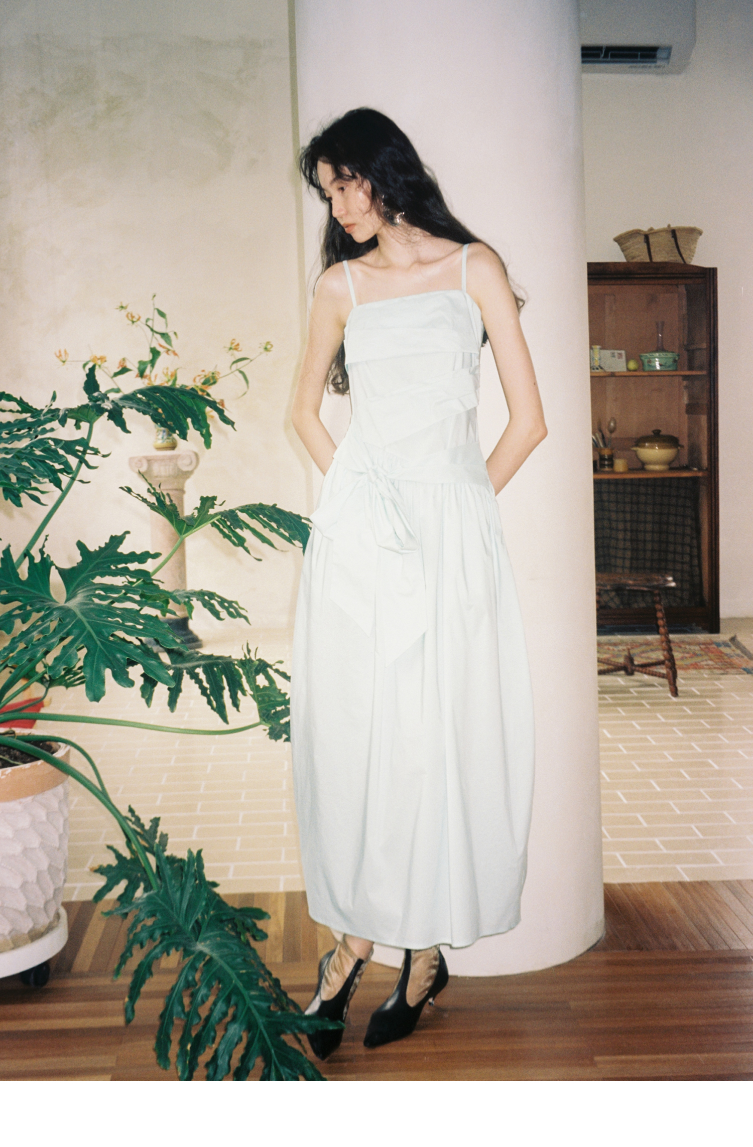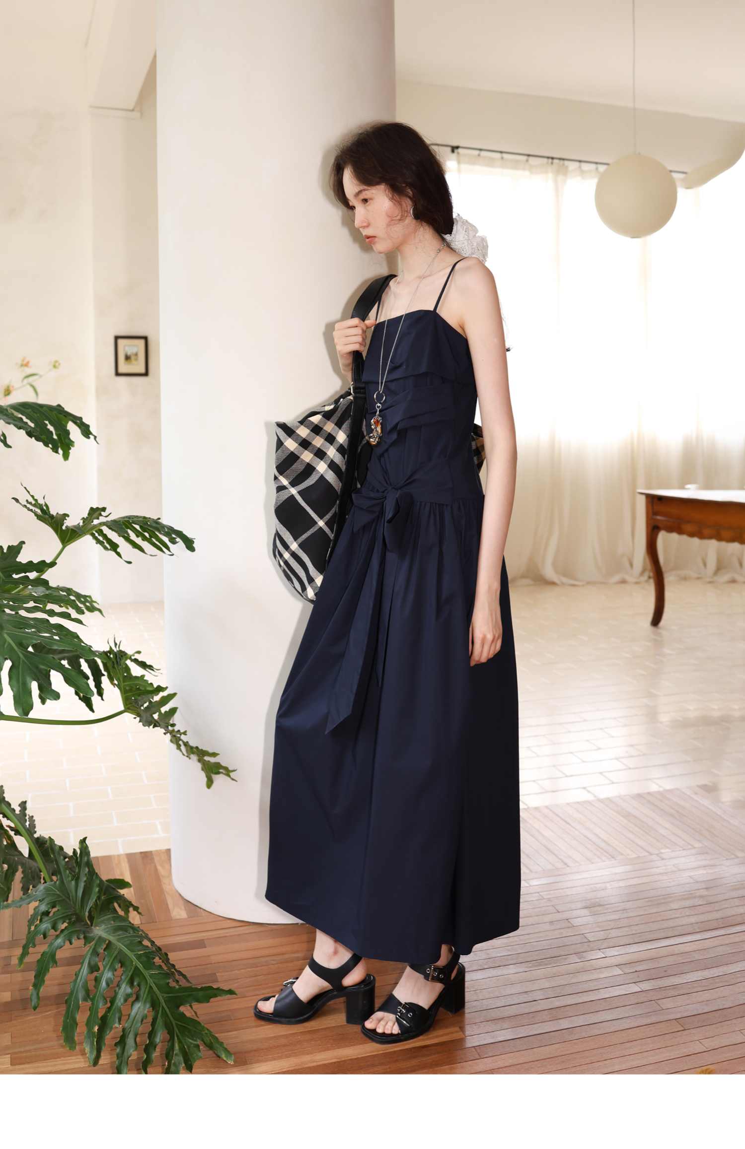 【6折不退换 买六免一】素舶 高支高密棉感不对称褶皱收腰花苞吊带连衣裙
